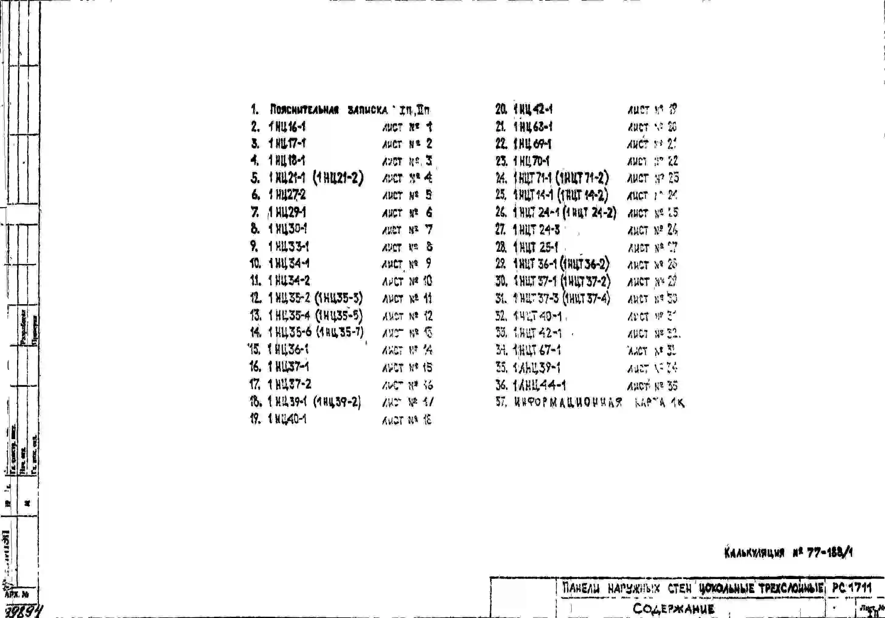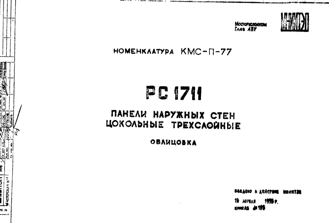 Шифр РС 1711 Панели наружных стен цокольные трехслойные (1978 г.)