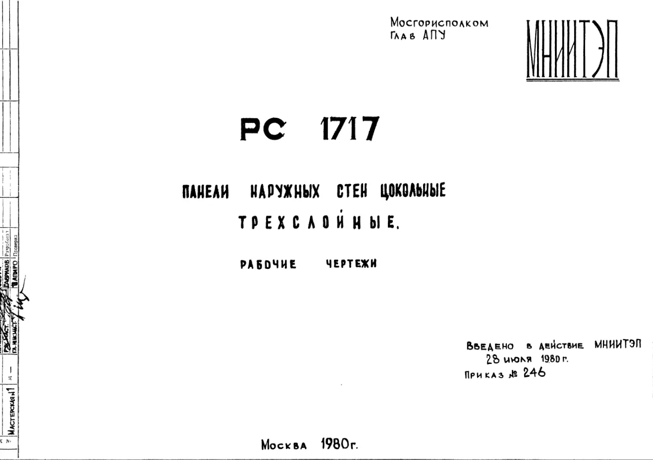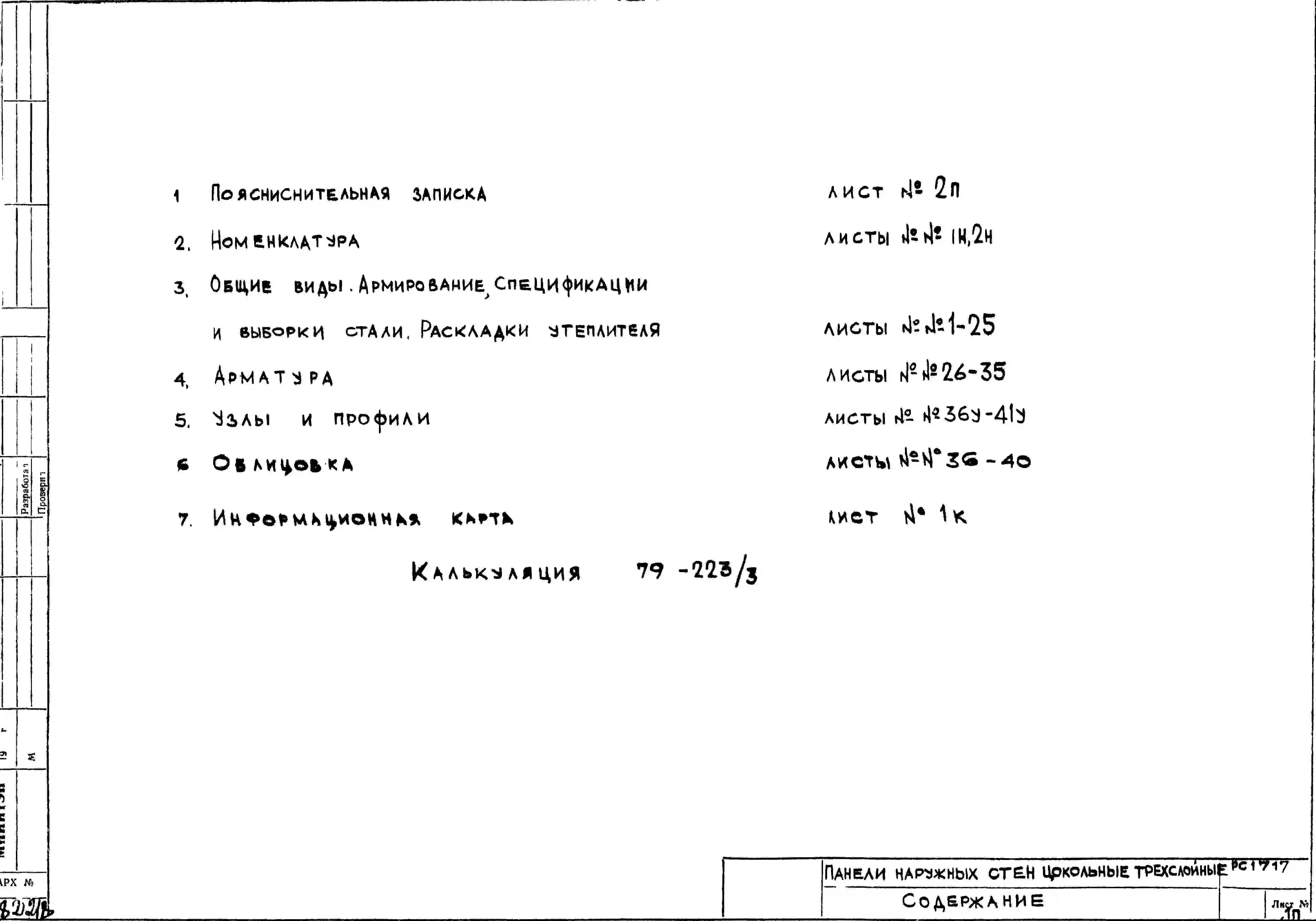 Шифр РС 1717 Панели наружных стен цокольные трехслойные (1980 г.)