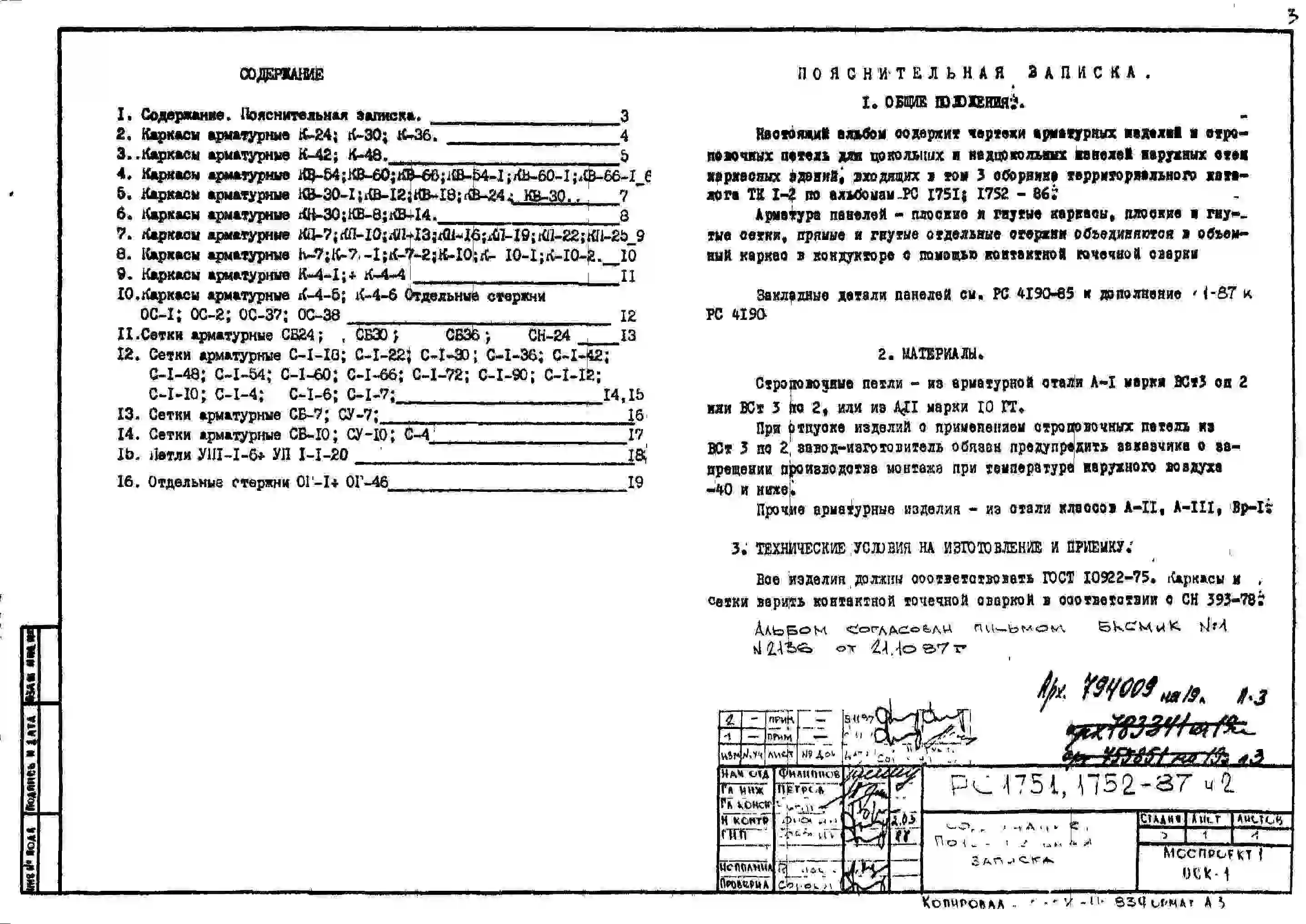 Шифр РС 1752-87 Наружные керамзитобетонные панели надцокольные (1987 г.)