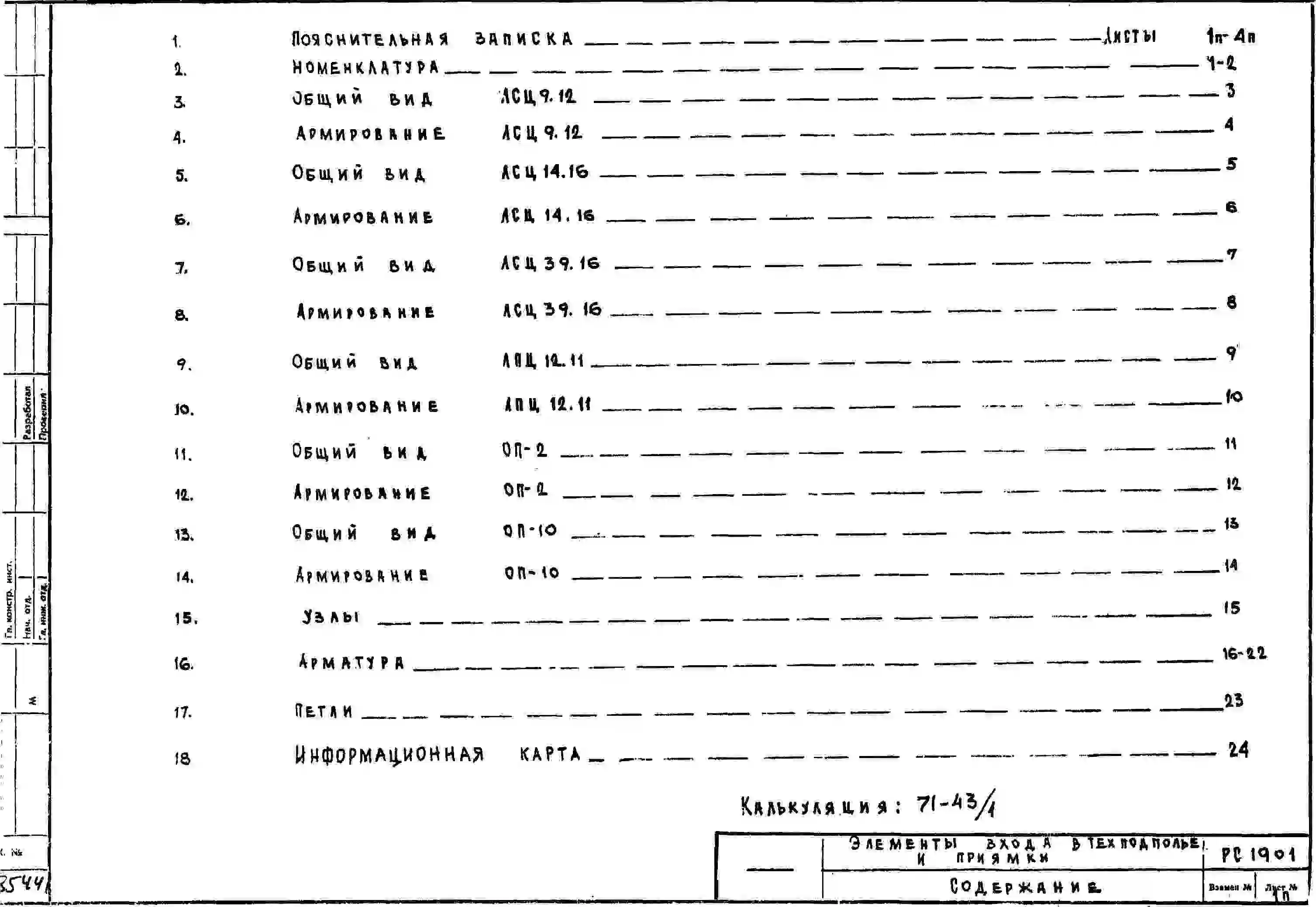 Шифр РС 1901 Элементы входа в техподполье и приямки (1971 г.)