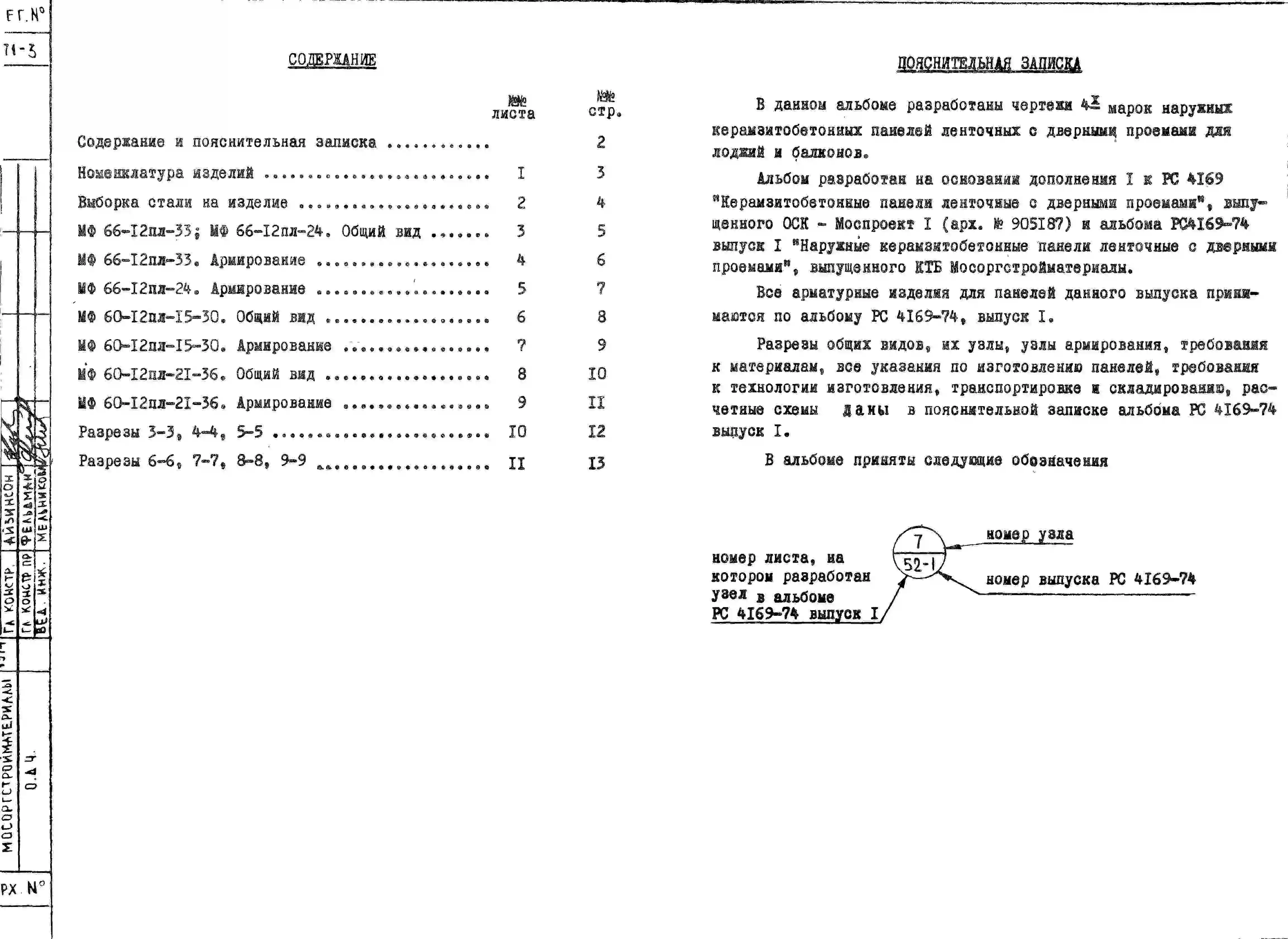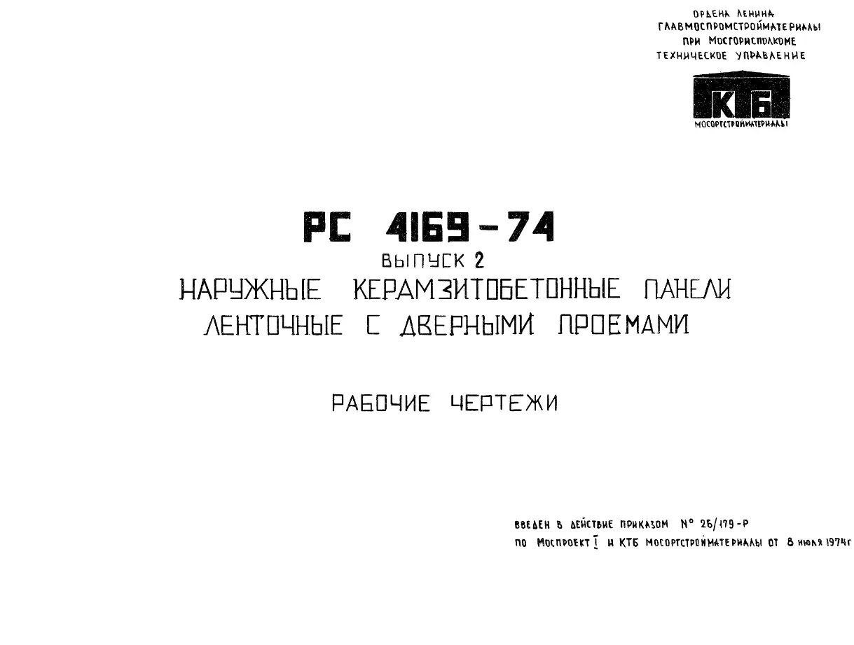 Шифр РС 4169-74 Наружные керамзитобетонные панели ленточные с дверными проемами (1974 г.)
