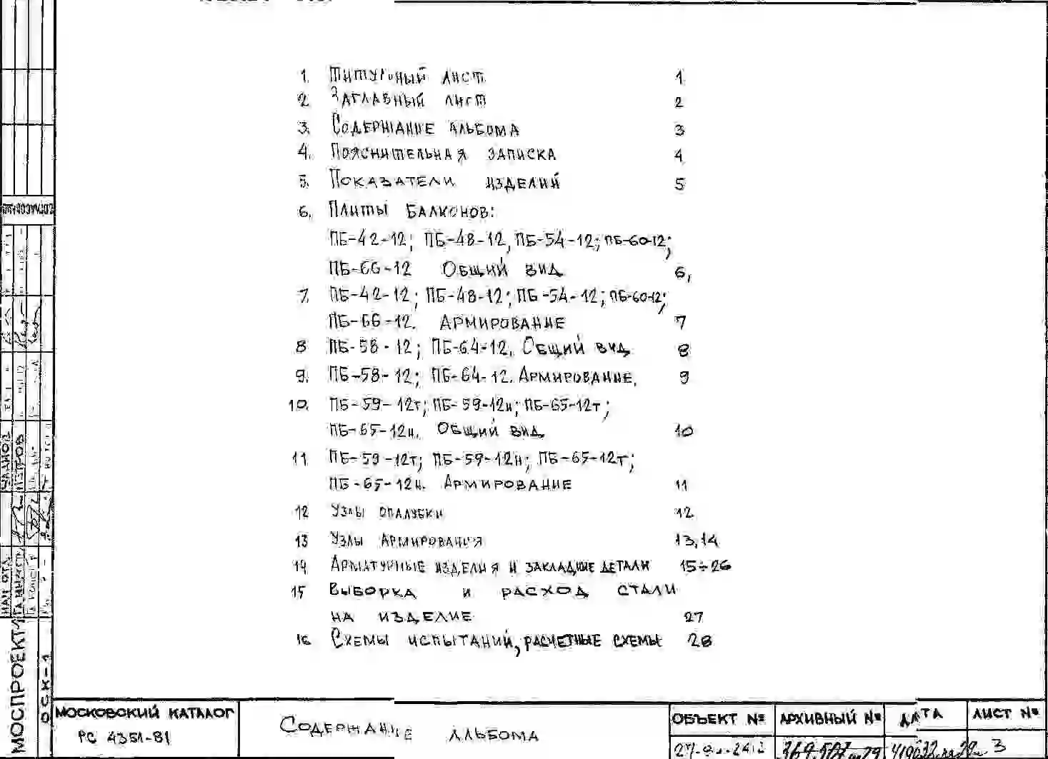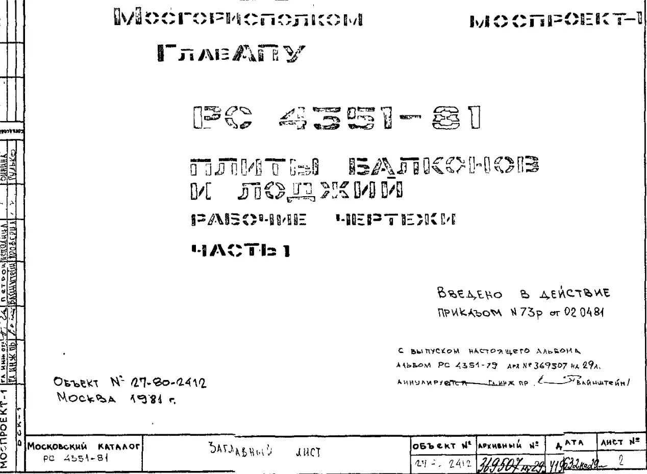 Шифр РС 4351-81 Плиты балконов и лоджий (1981 г.)