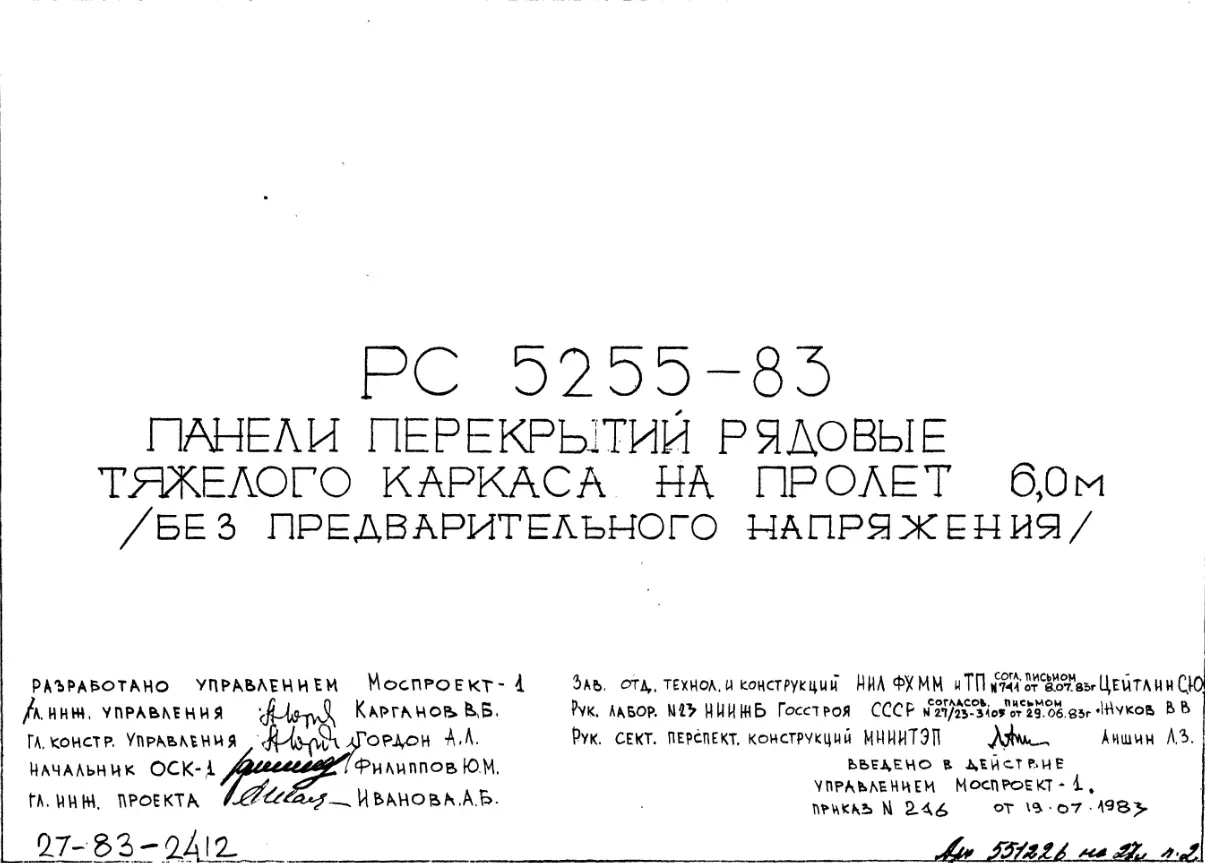 Шифр РС 5255-83 Панели перекрытий рядовые тяжелого каркаса на пролет 6,0 м (без предварительного напряжения) (1983 г.)