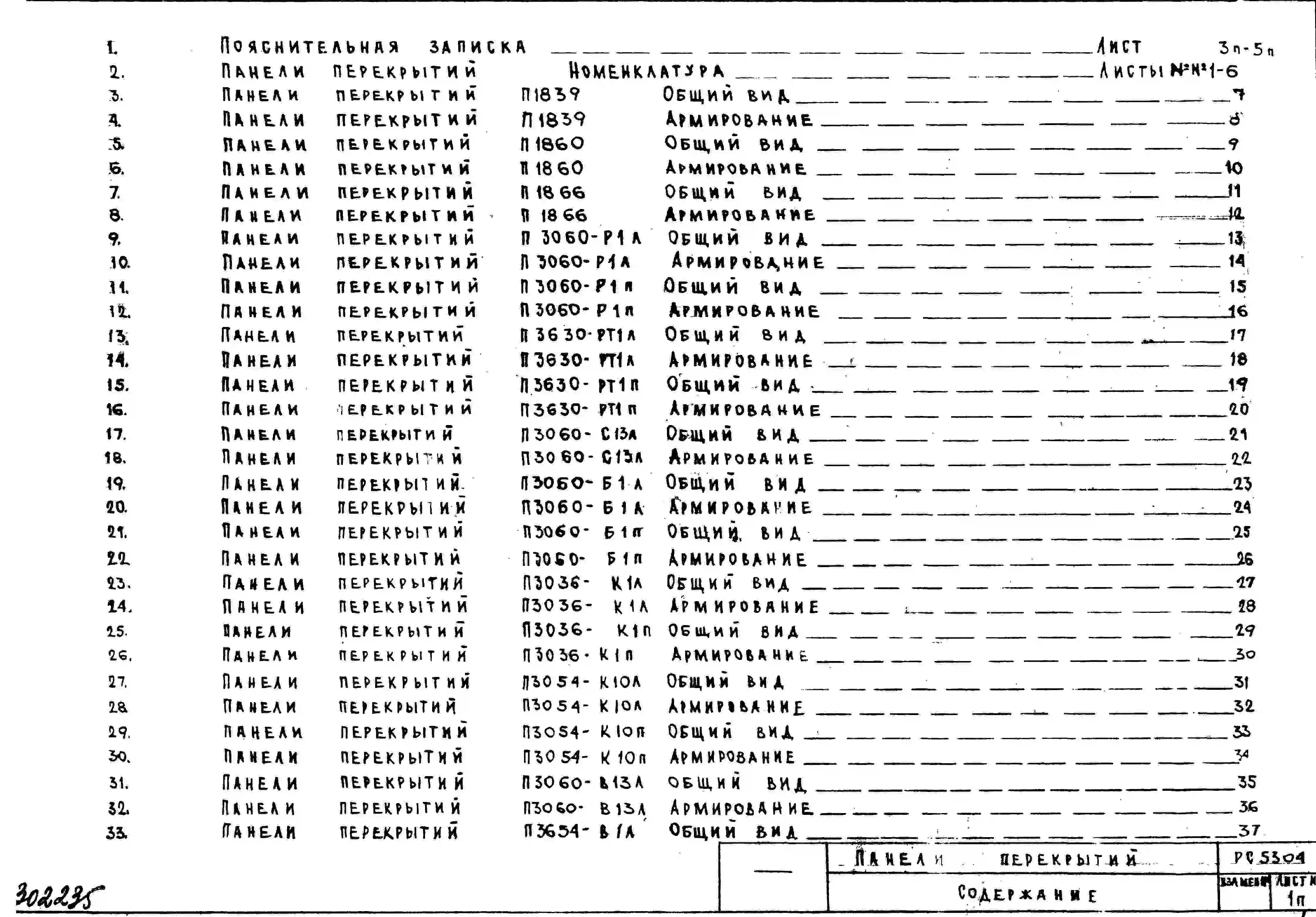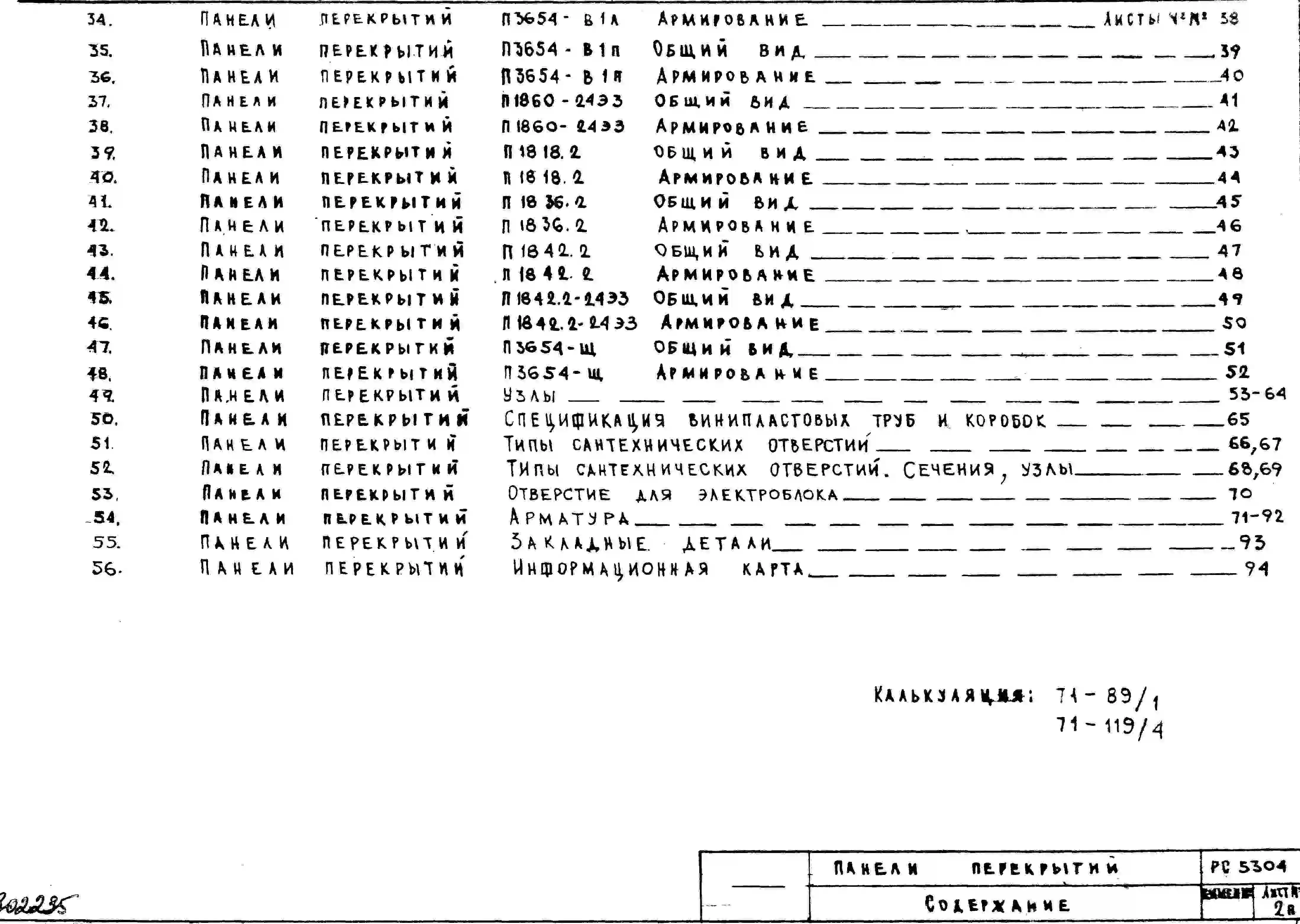 Шифр РС 5304 Панели перекрытий сплошные толщиной 14 см (бетон М200) (1972 г.)