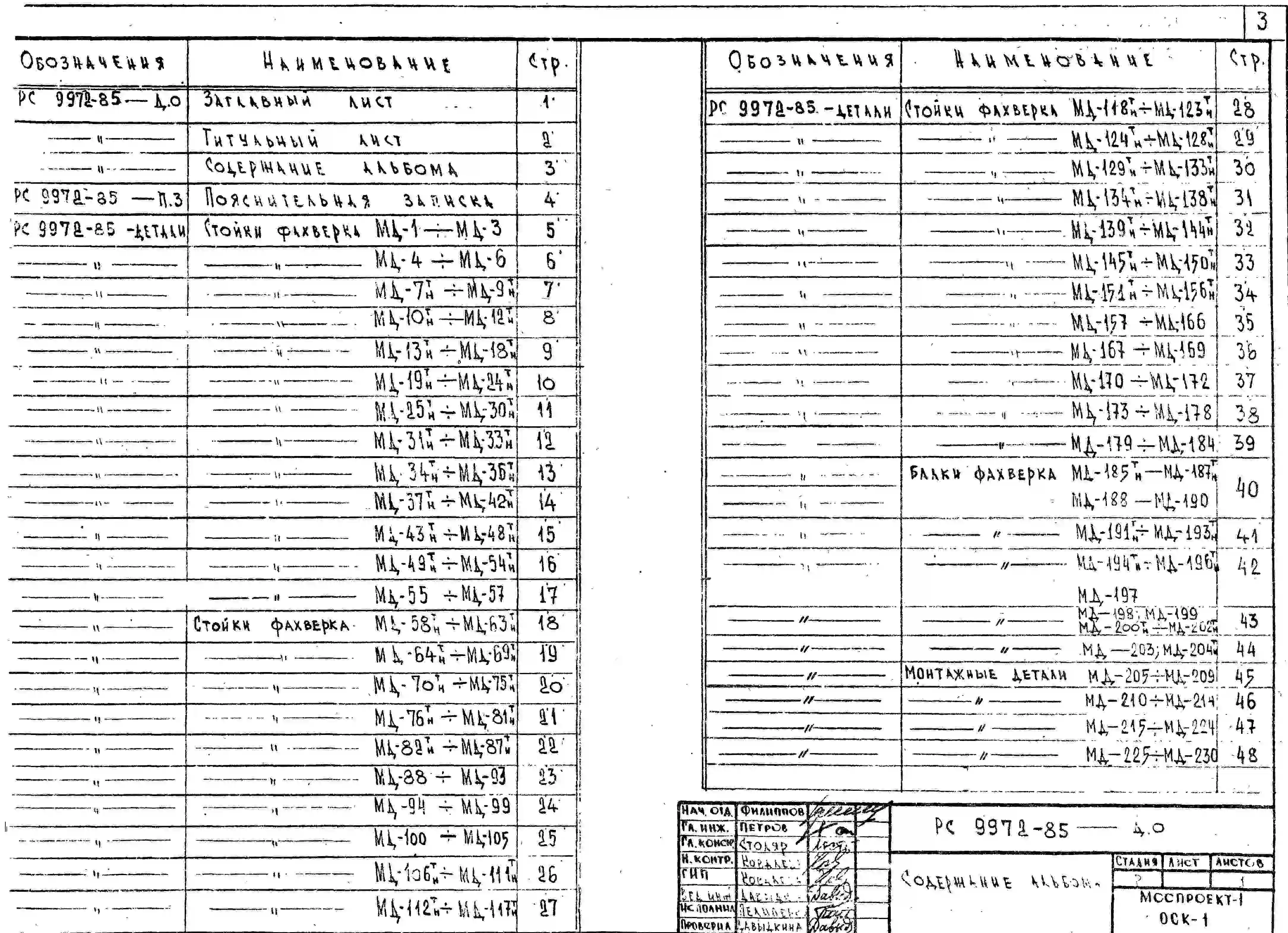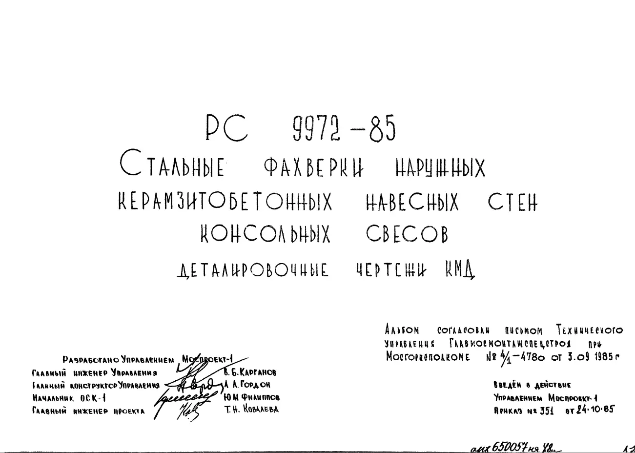Шифр РС 9972-85 Стальные фахверки наружных керамзитобетонных навесных стен консольных свесов (1985 г.)