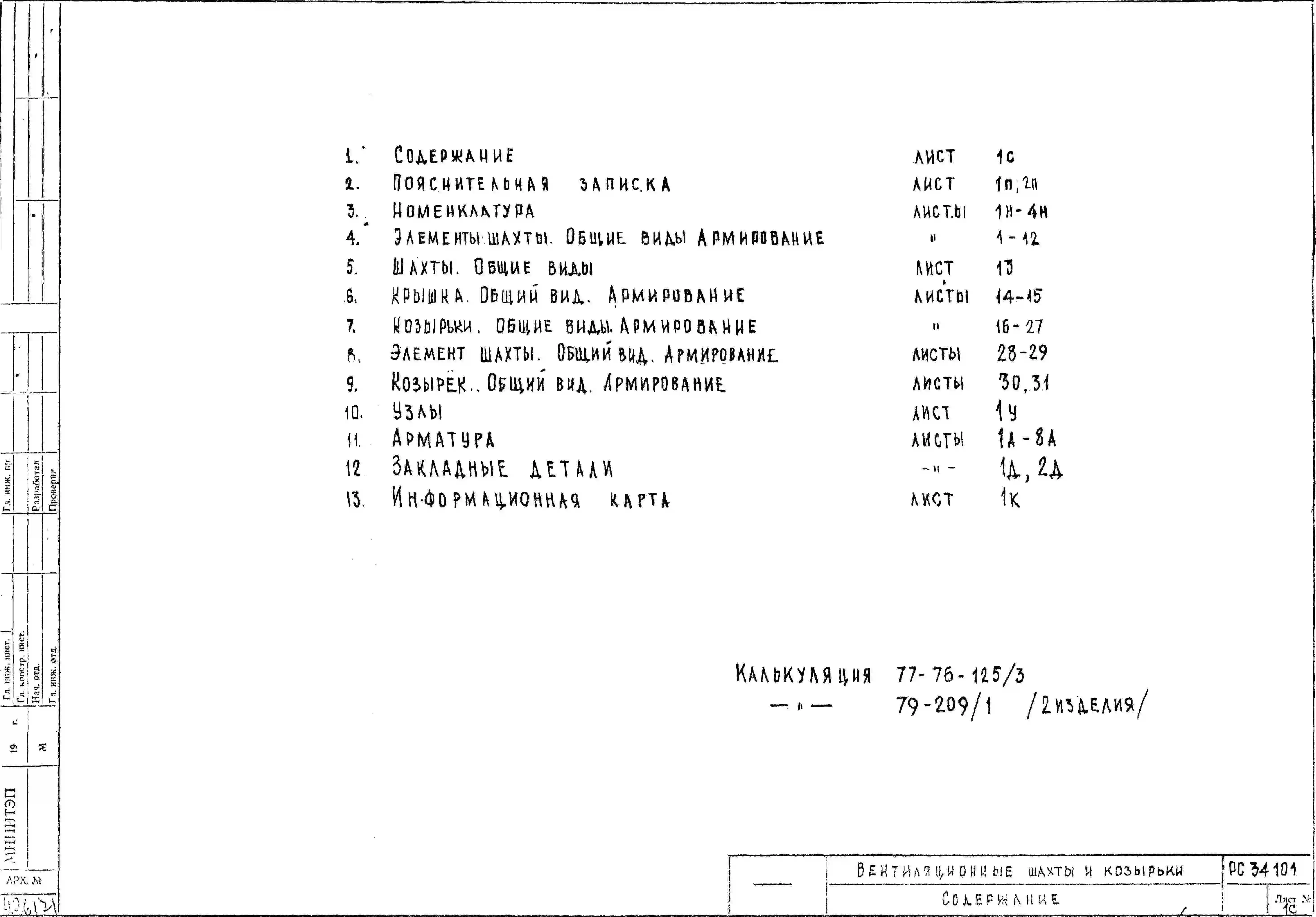 Шифр РС 34101 Вентиляционные шахты и козырьки (1977 г.)
