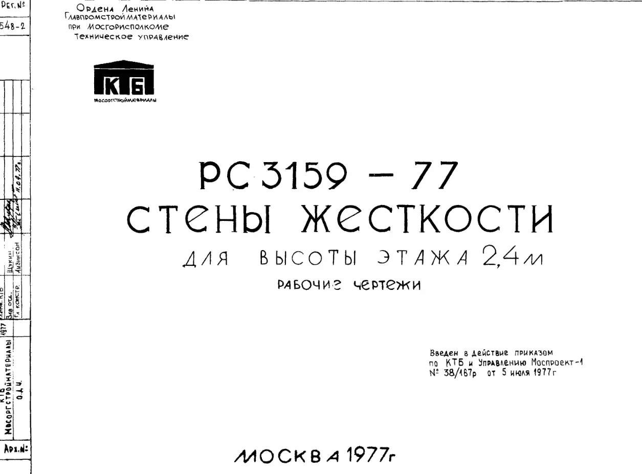 Шифр РС 3159-77 Стены жесткости для высоты этажа 2,4 м (1977 г.)