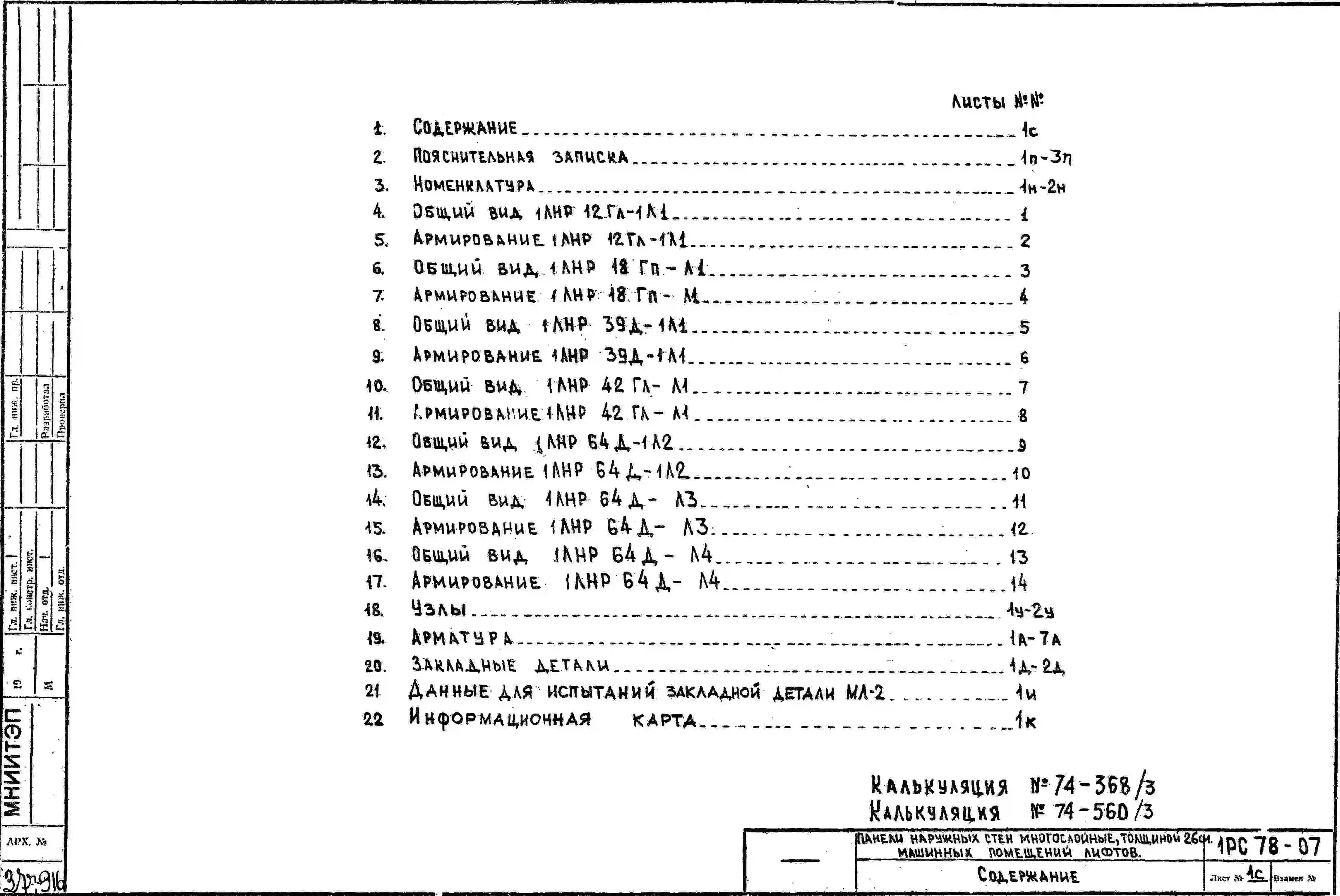 Шифр 1РС 78-07 Панели наружных стен многослойные, толщиной 26 см, машинных помещений лифтов (1975 г.)