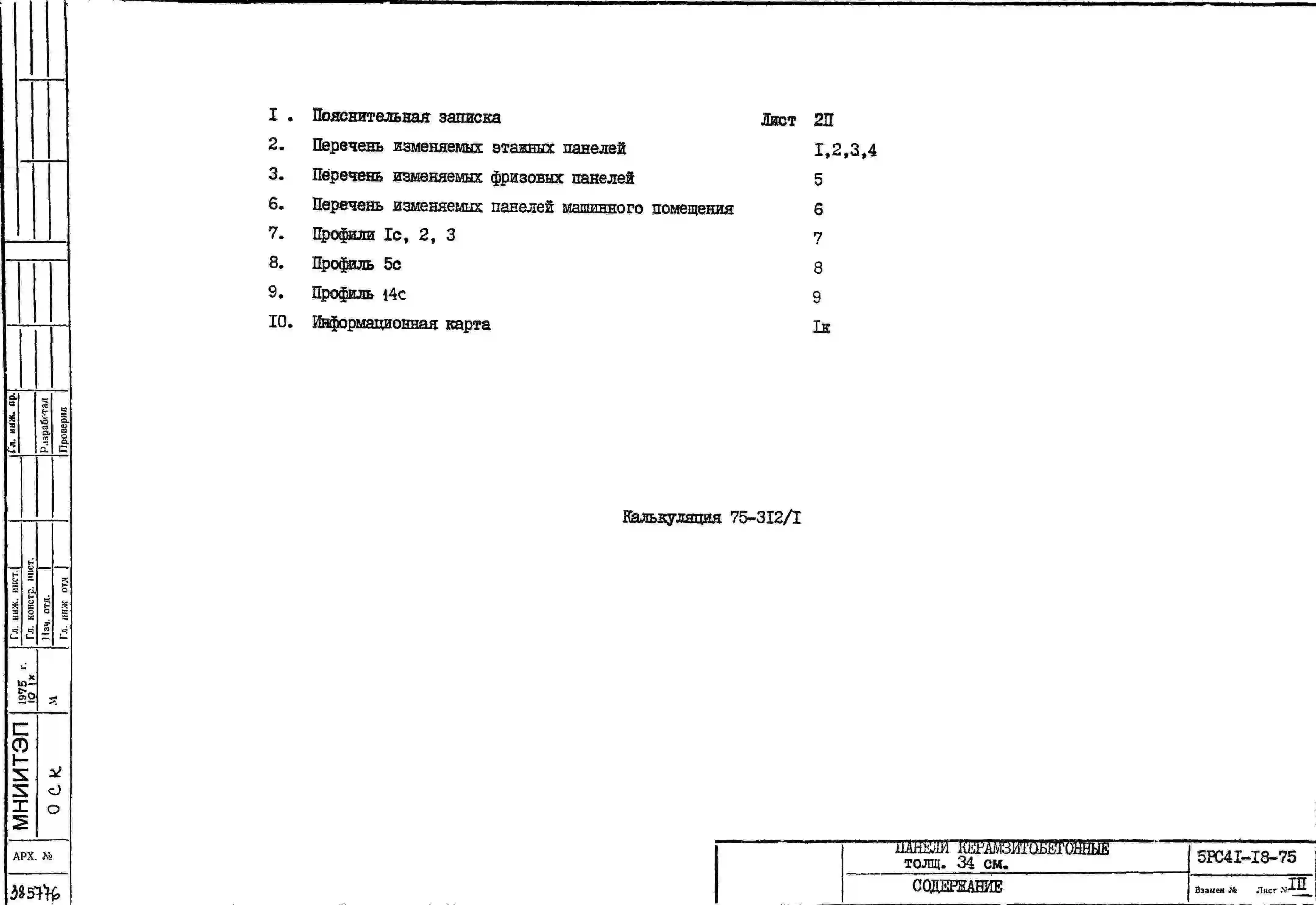 Шифр 5РС 41-18 Панели наружный стен керамзитобетонные, толщиной 34 см, панельных зданий (1975 г.)