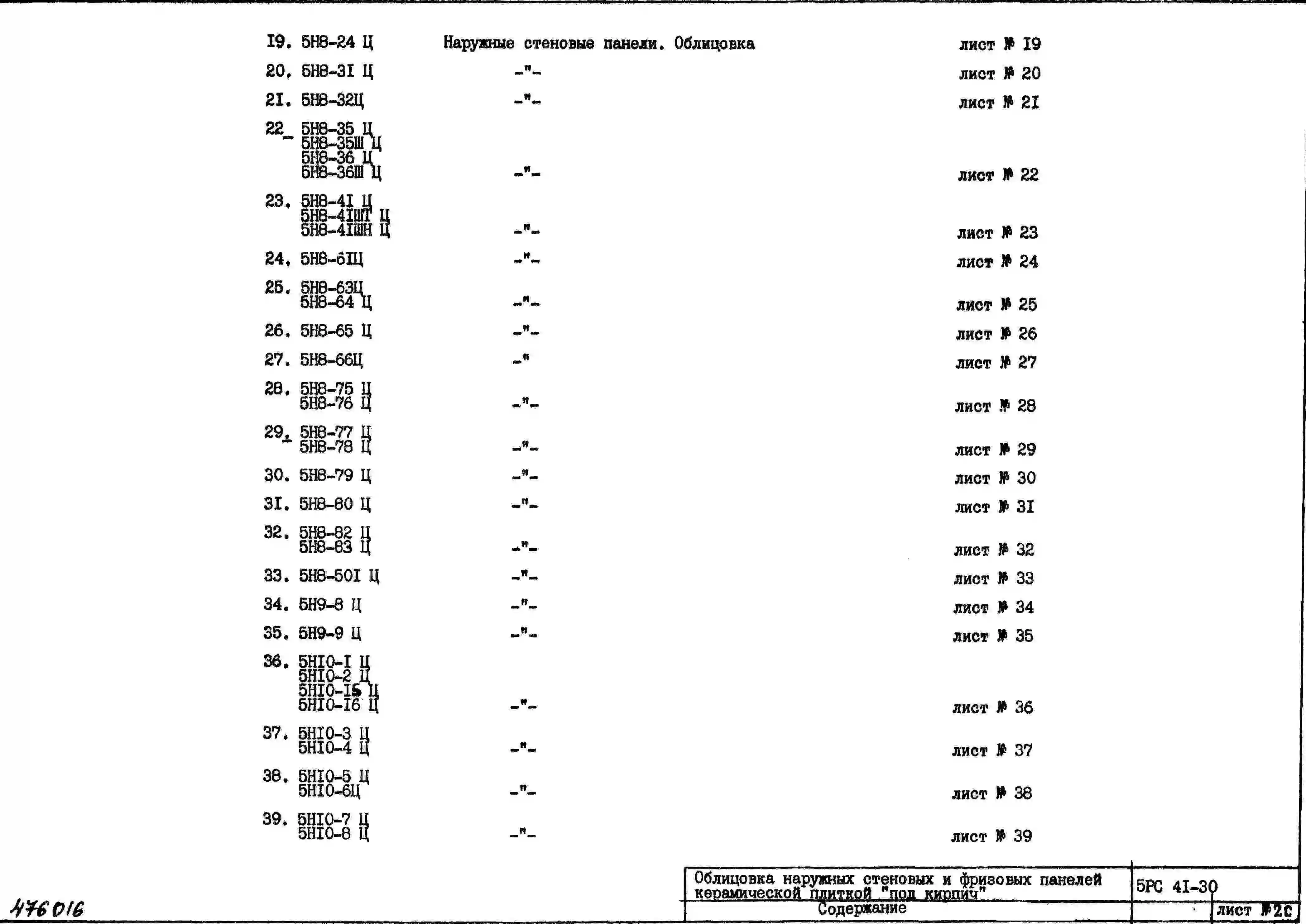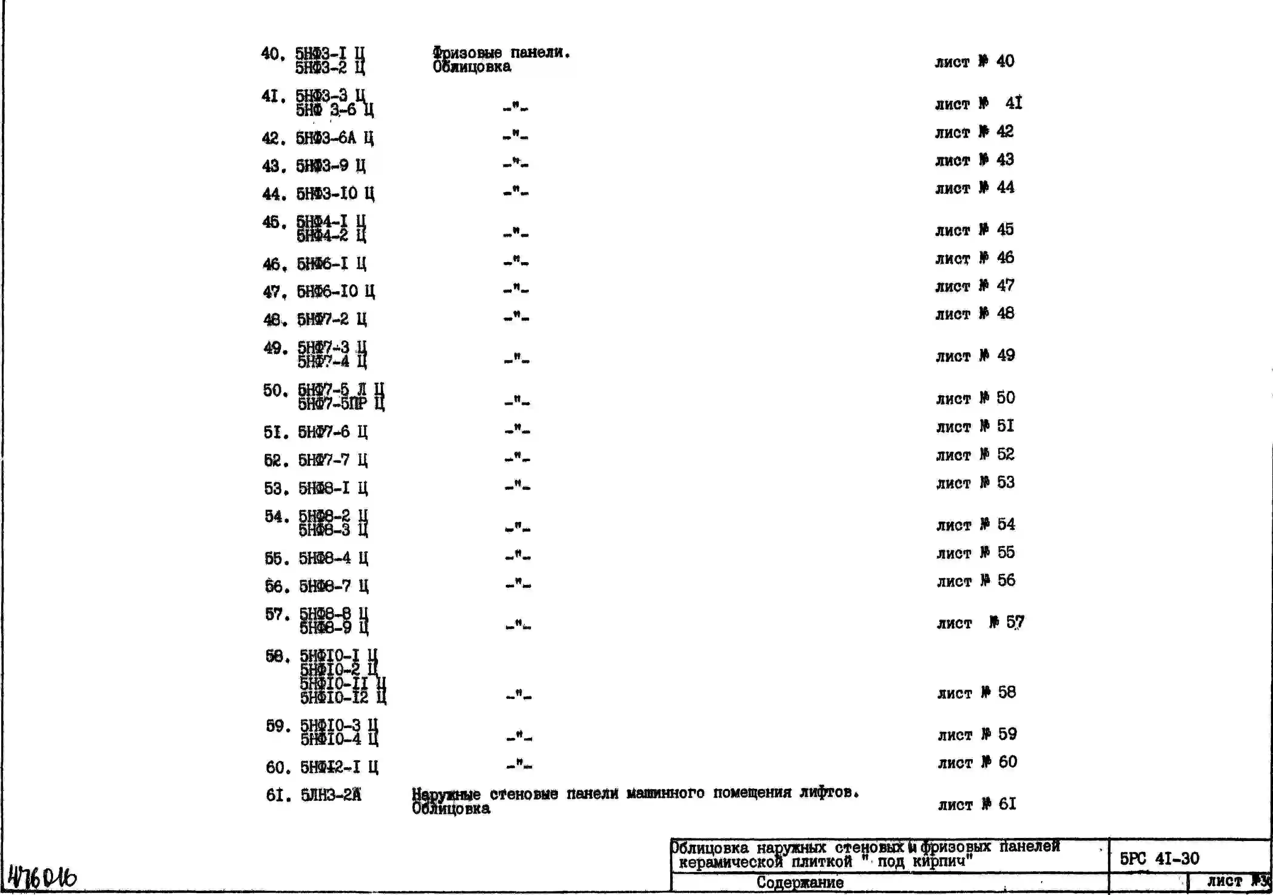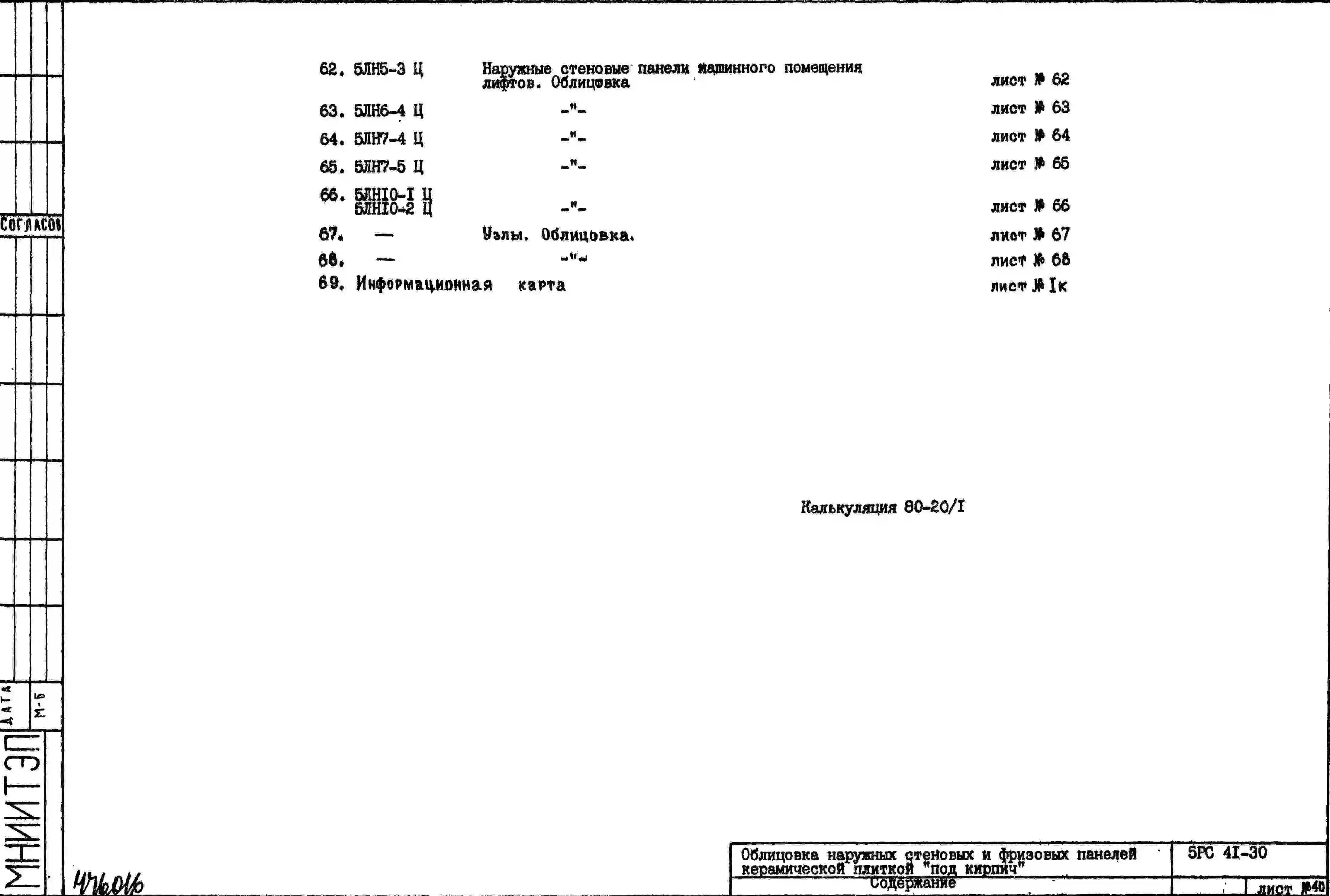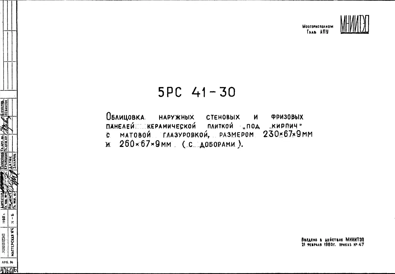 Шифр 5РС 41-30 Облицовка наружных стеновых и фризовых панелей керамической плиткой «под кирпич» с матовой глазуровкой, размером 230х67х9 мм и 260х67х9 мм (с доборами) (1980 г.)