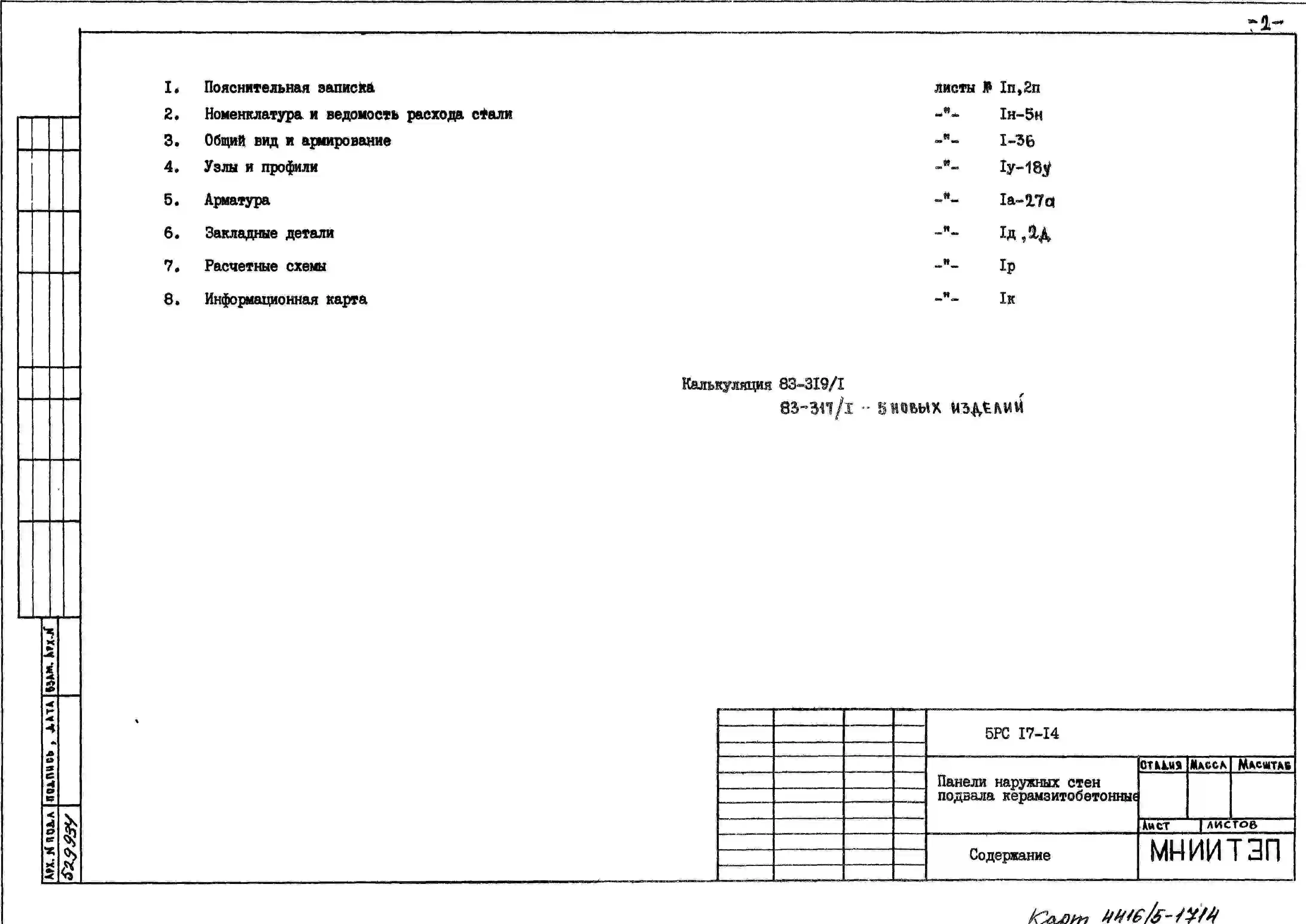 Шифр 5РС 17-14 Панели наружных стен подвала керамзитобетонные (1983 г.)