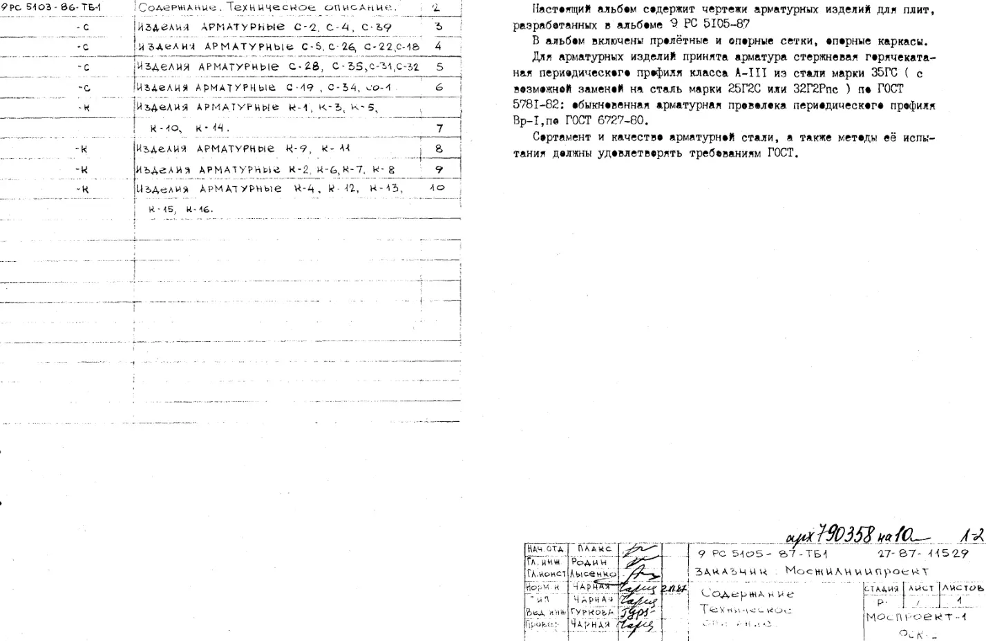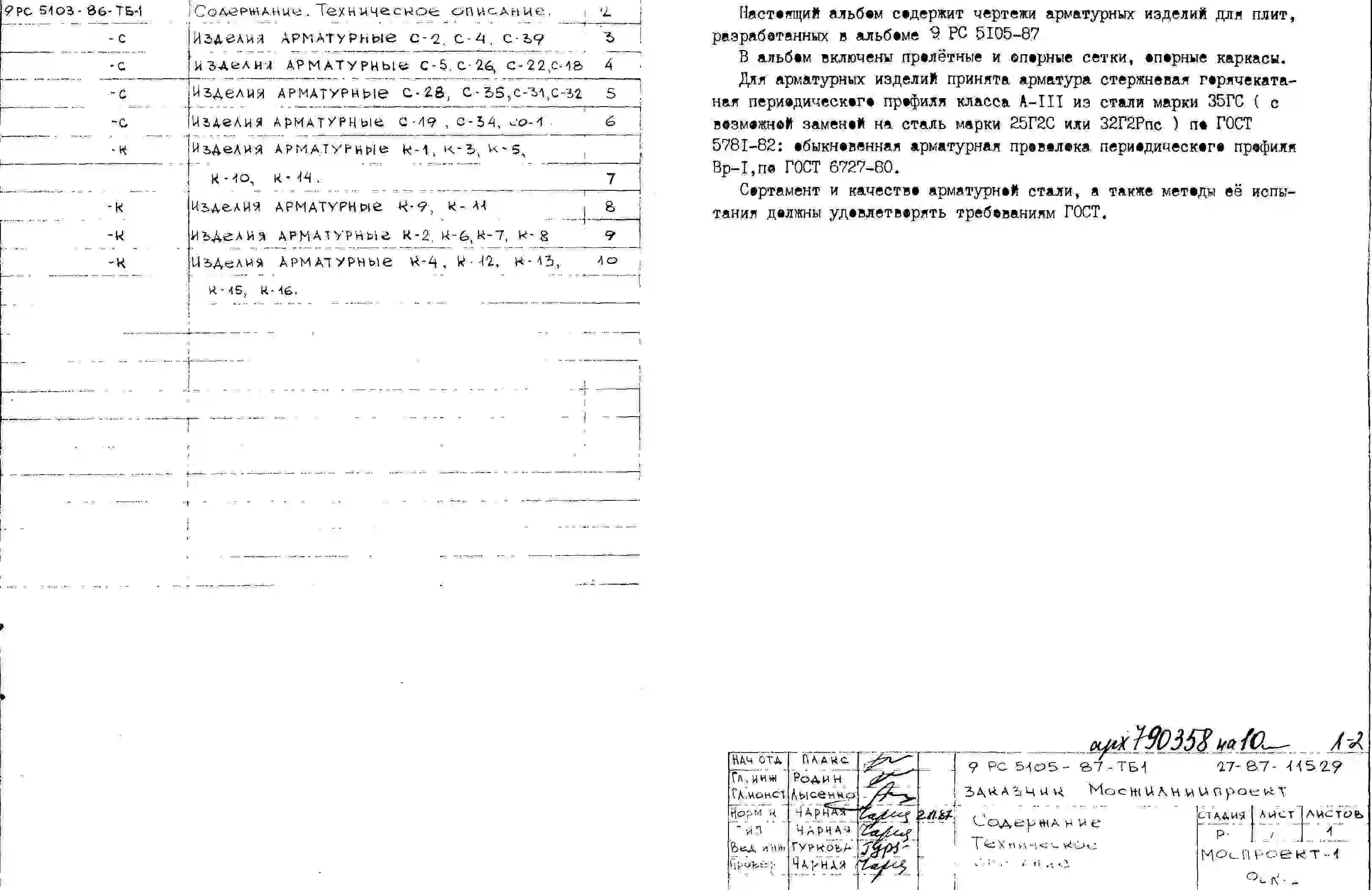 Шифр 9РС 5105-87 Арматурные изделия для плит