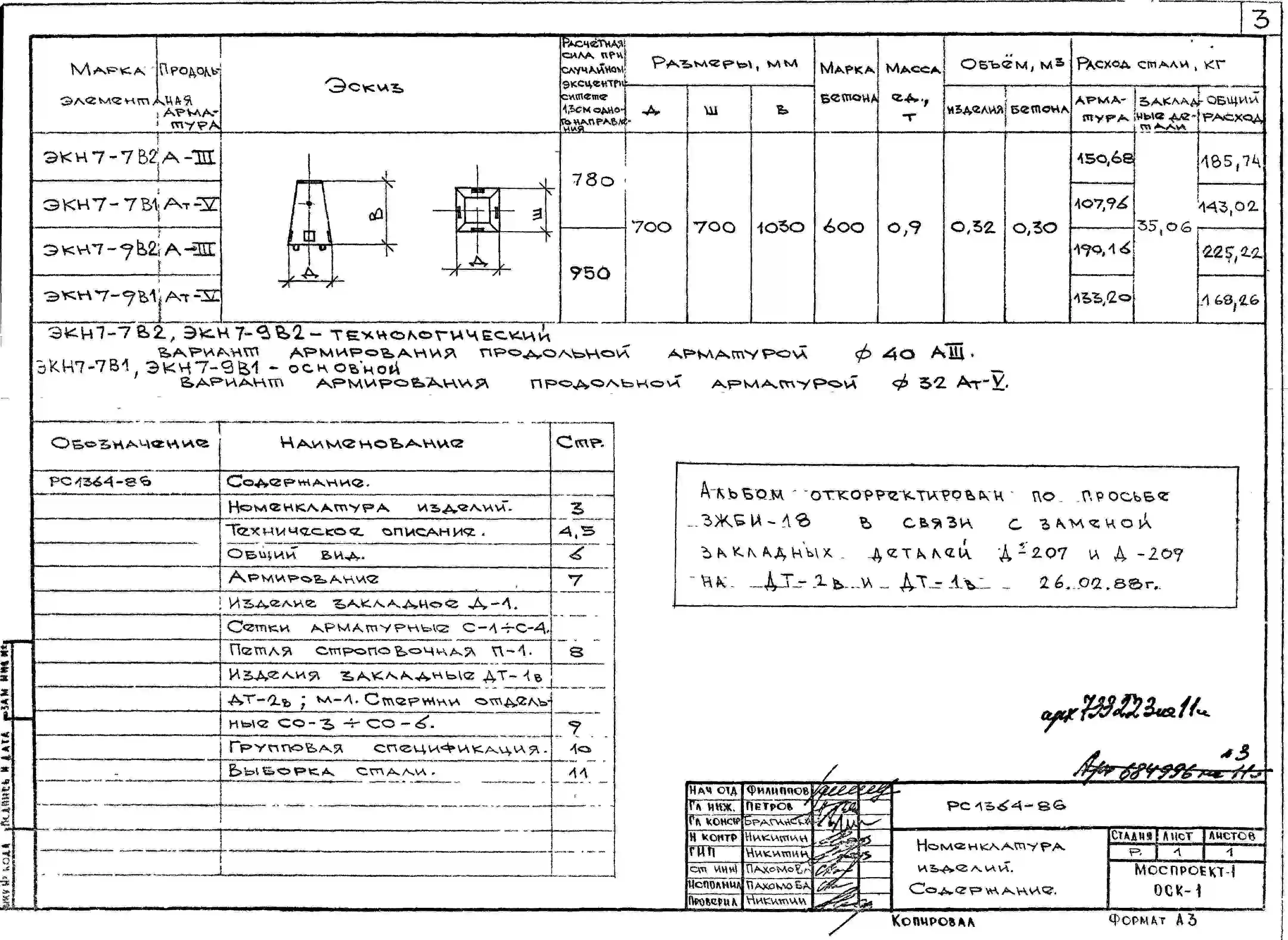 Шифр РС 1364-86 Подколонники с плоским стальным торцом ЭКН7-7 и ЭКН7-9 (1985 г.)