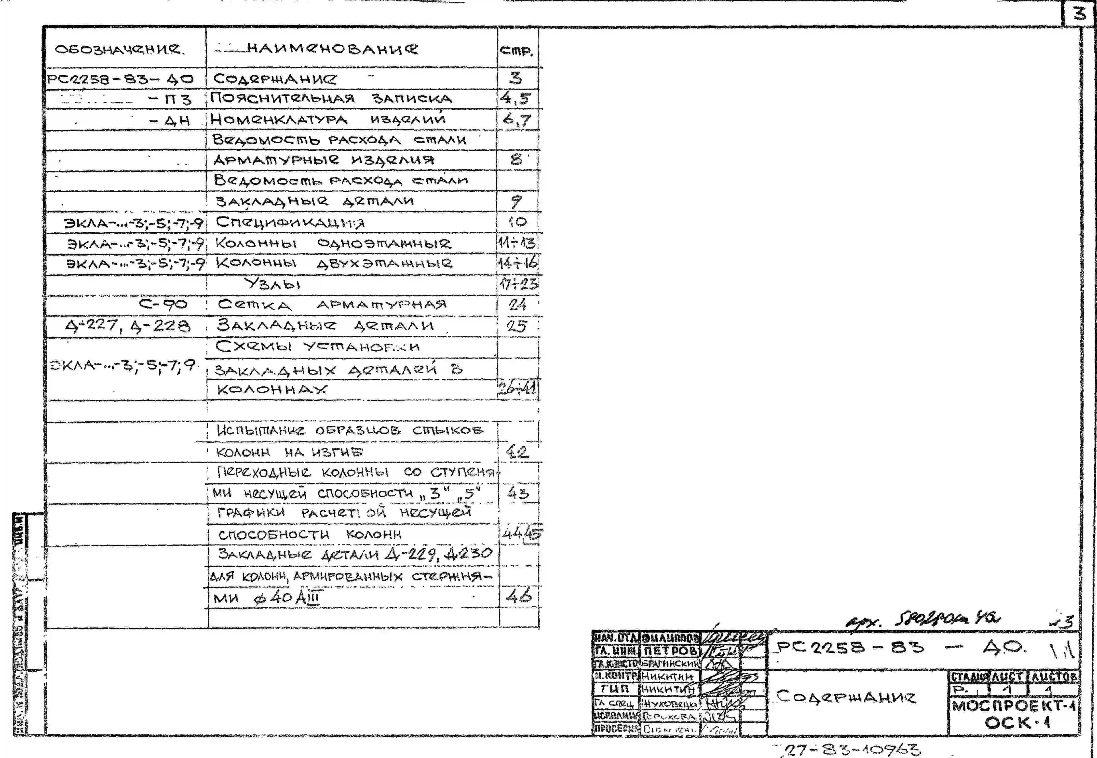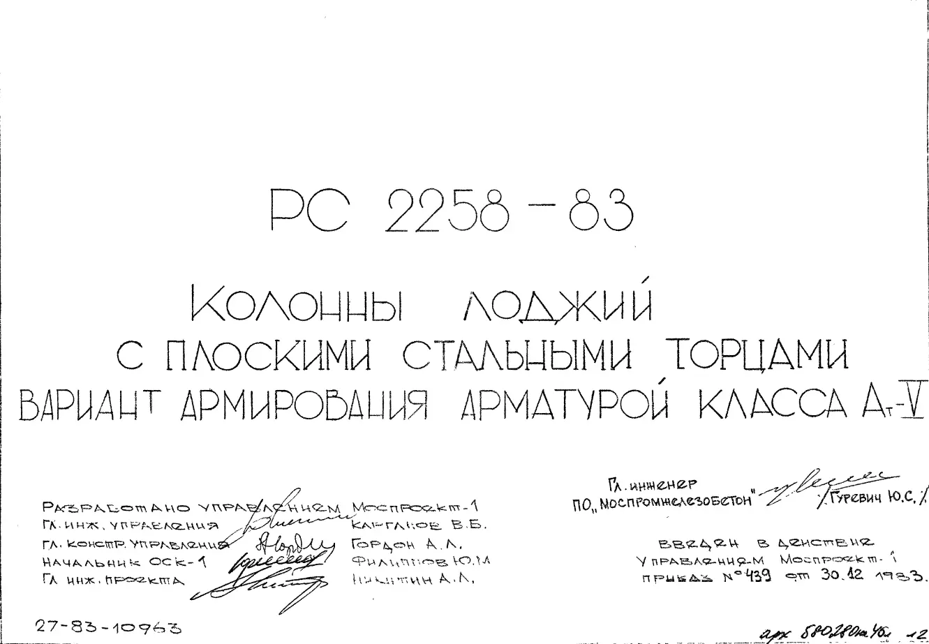 Шифр РС 2258-83 Колонны лоджий с плоскими стальными торцами вариант армирования арматурой класса Ат-V