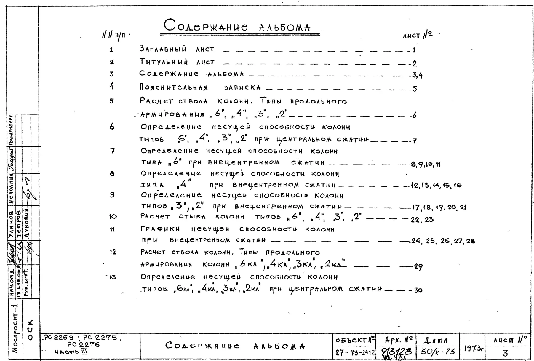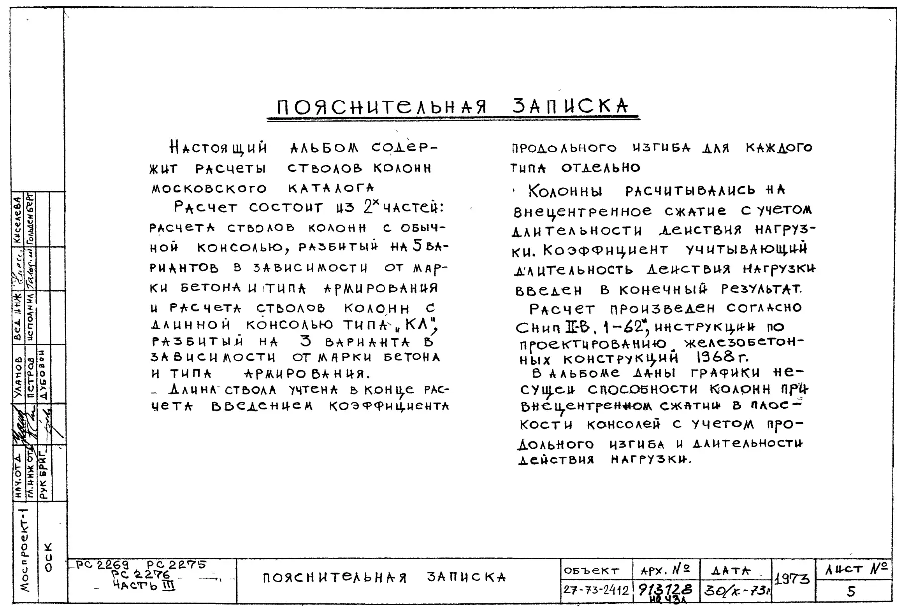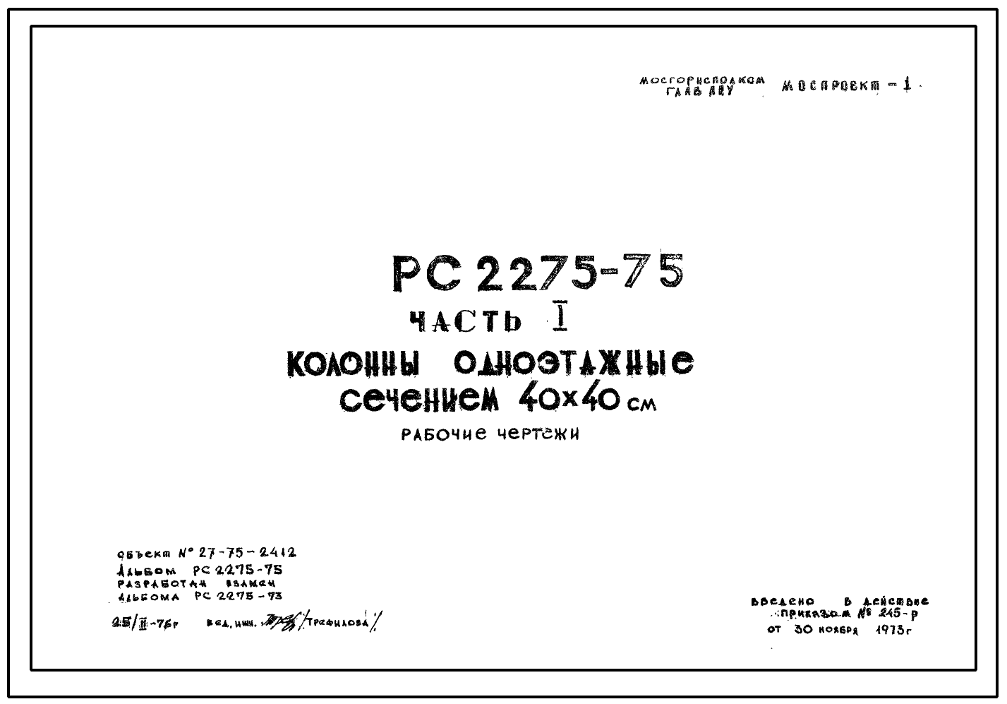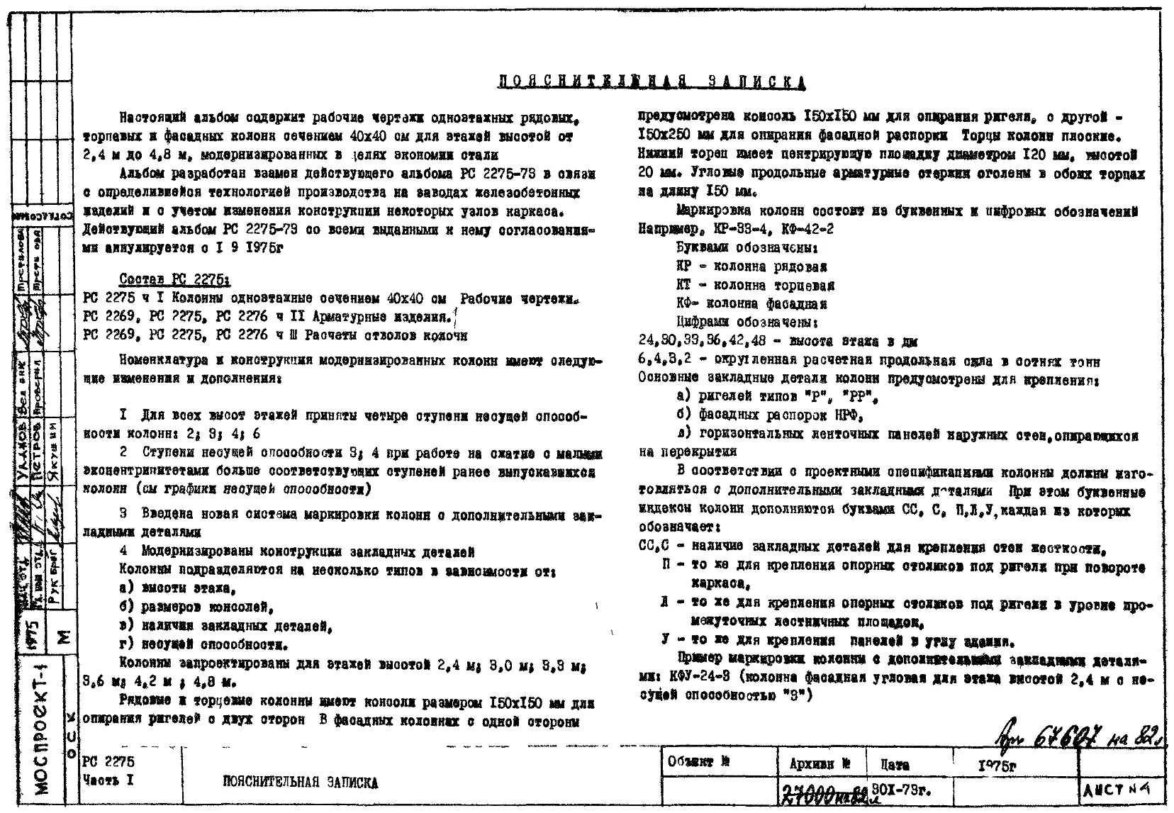 Шифр РС 2275-75 Колонны одноэтажные сечением 40х40 см (1973 г.)