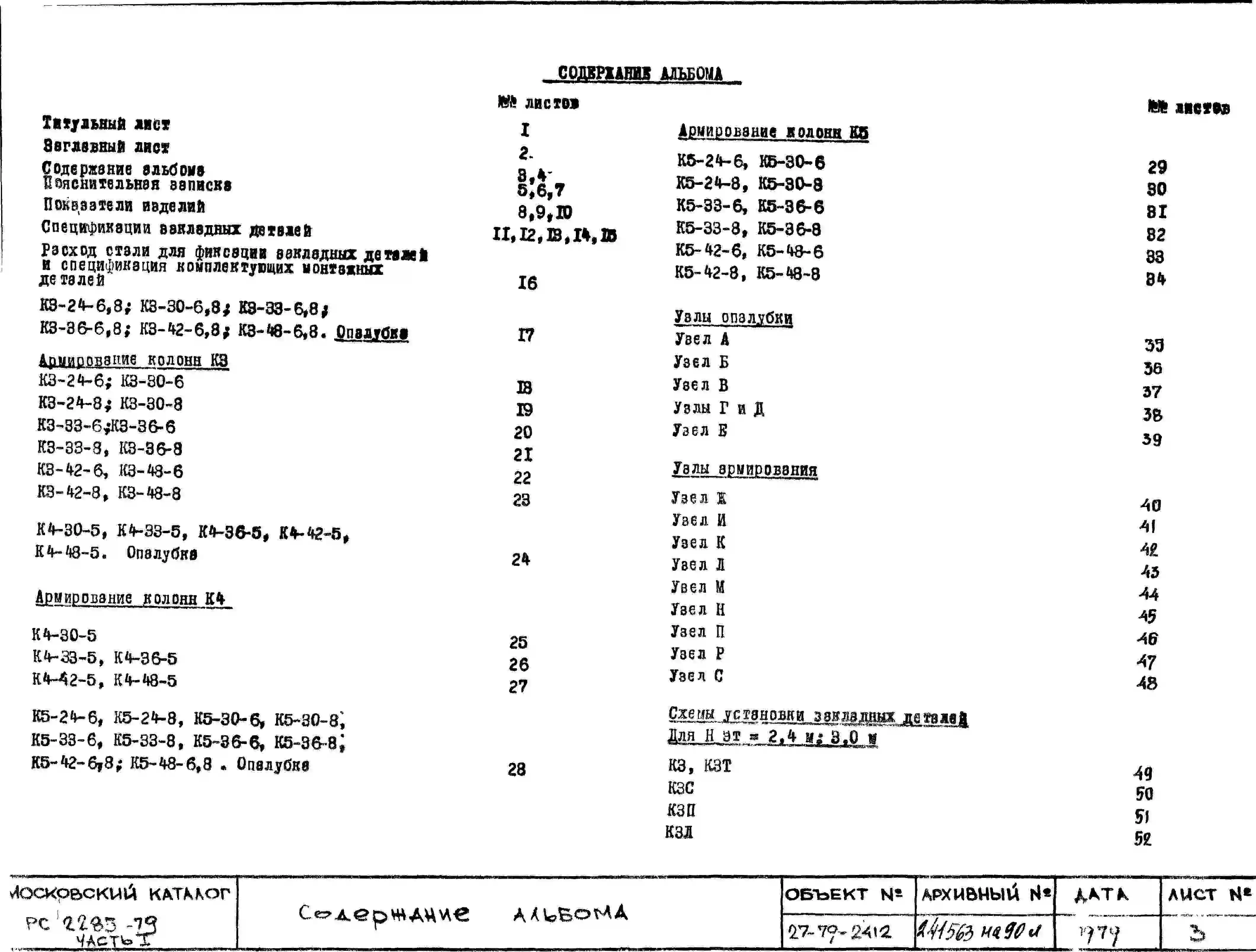Шифр РС 2285-79 Колонны сечением 400х550 мм одноэтажные (1979 г.)