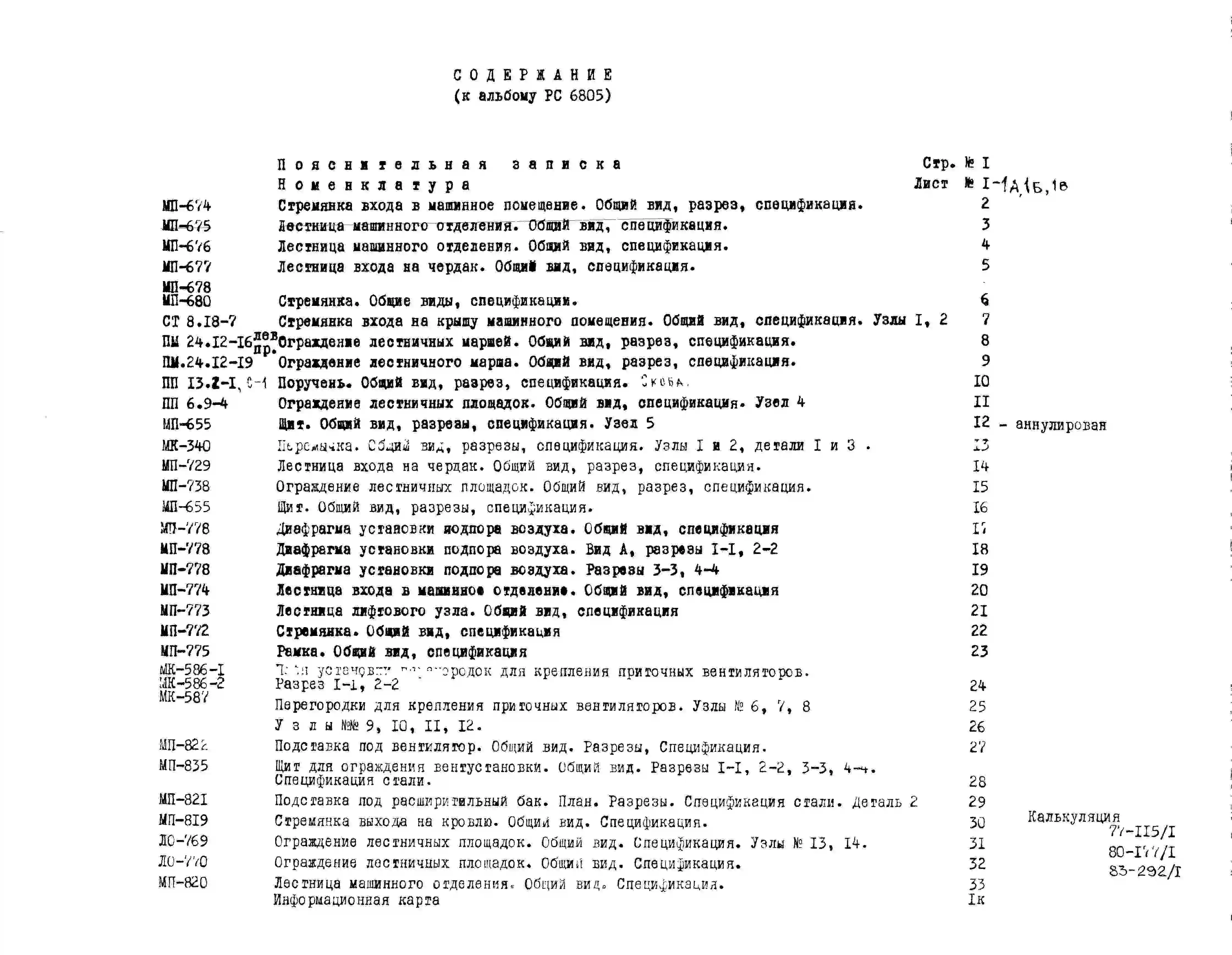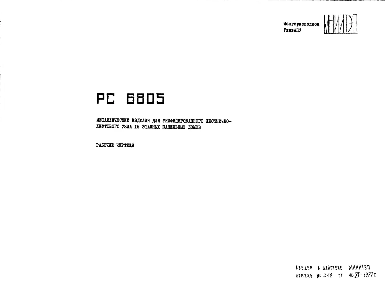 Шифр РС 6805 Металлические изделия для унифицированного лестнично-лифтового узла 16 эт. панельных домов (1977 г.)