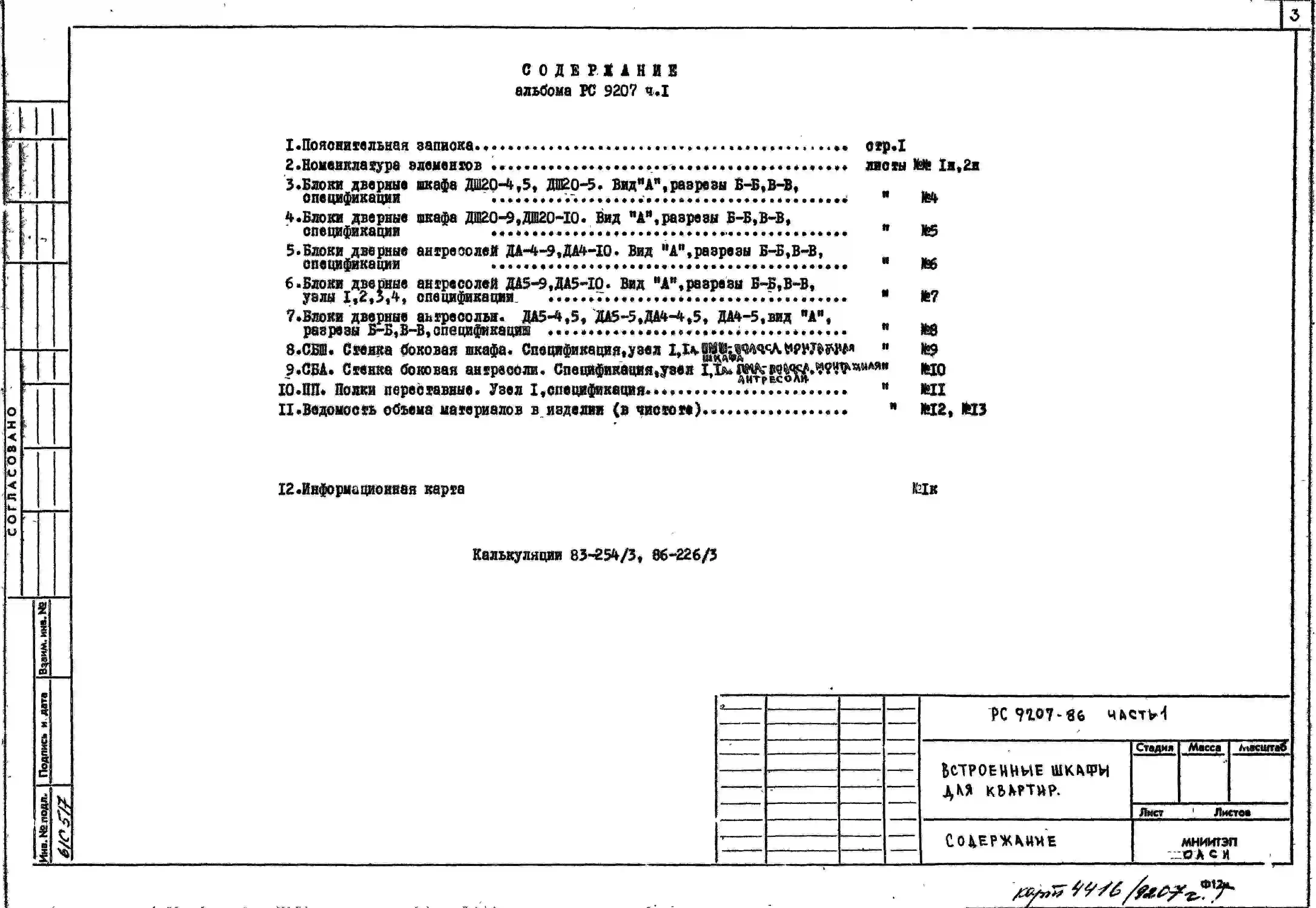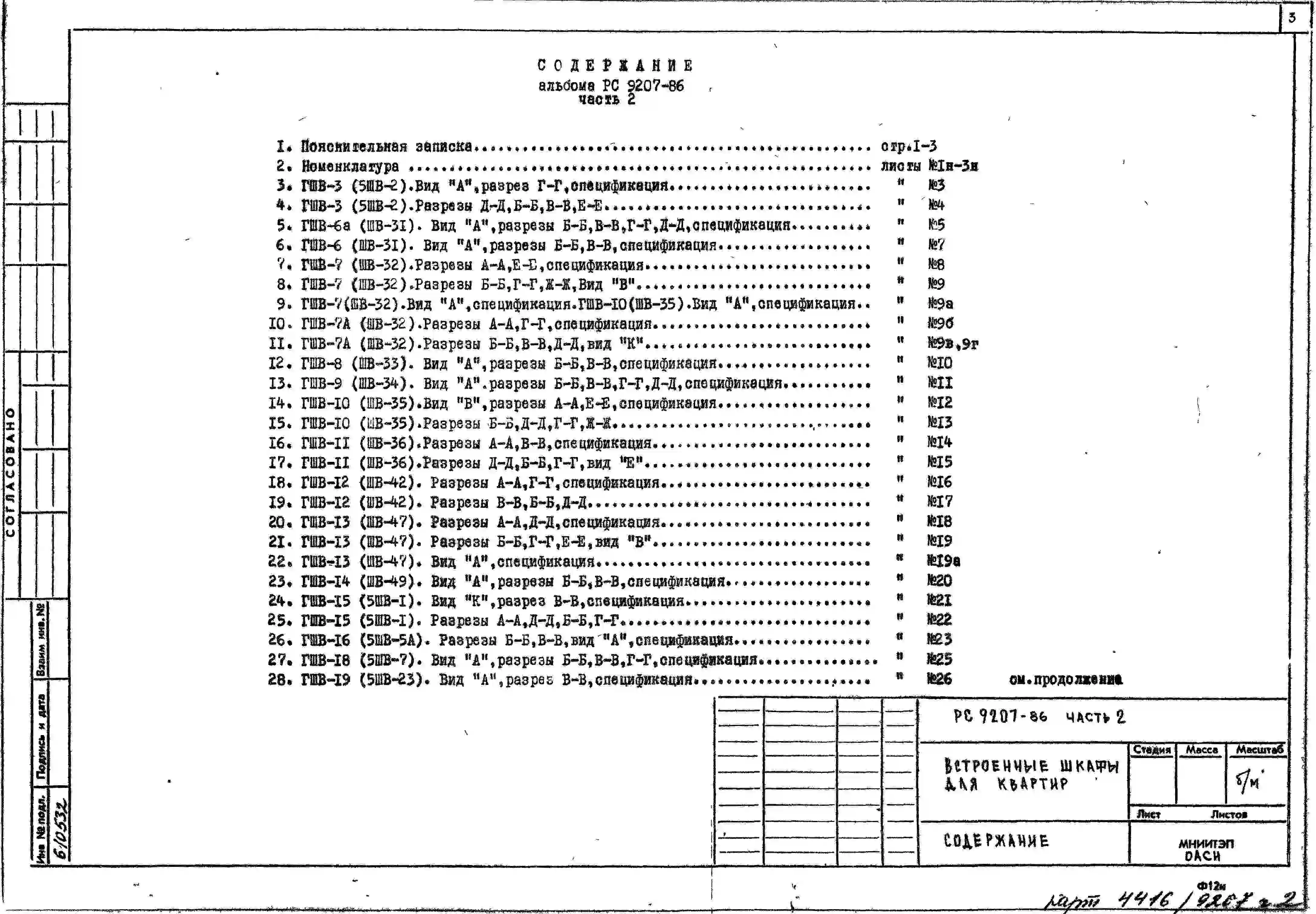 Шифр РС 9207 Встроенные шкафы для квартир. Элементы и детали (1985 г.)
