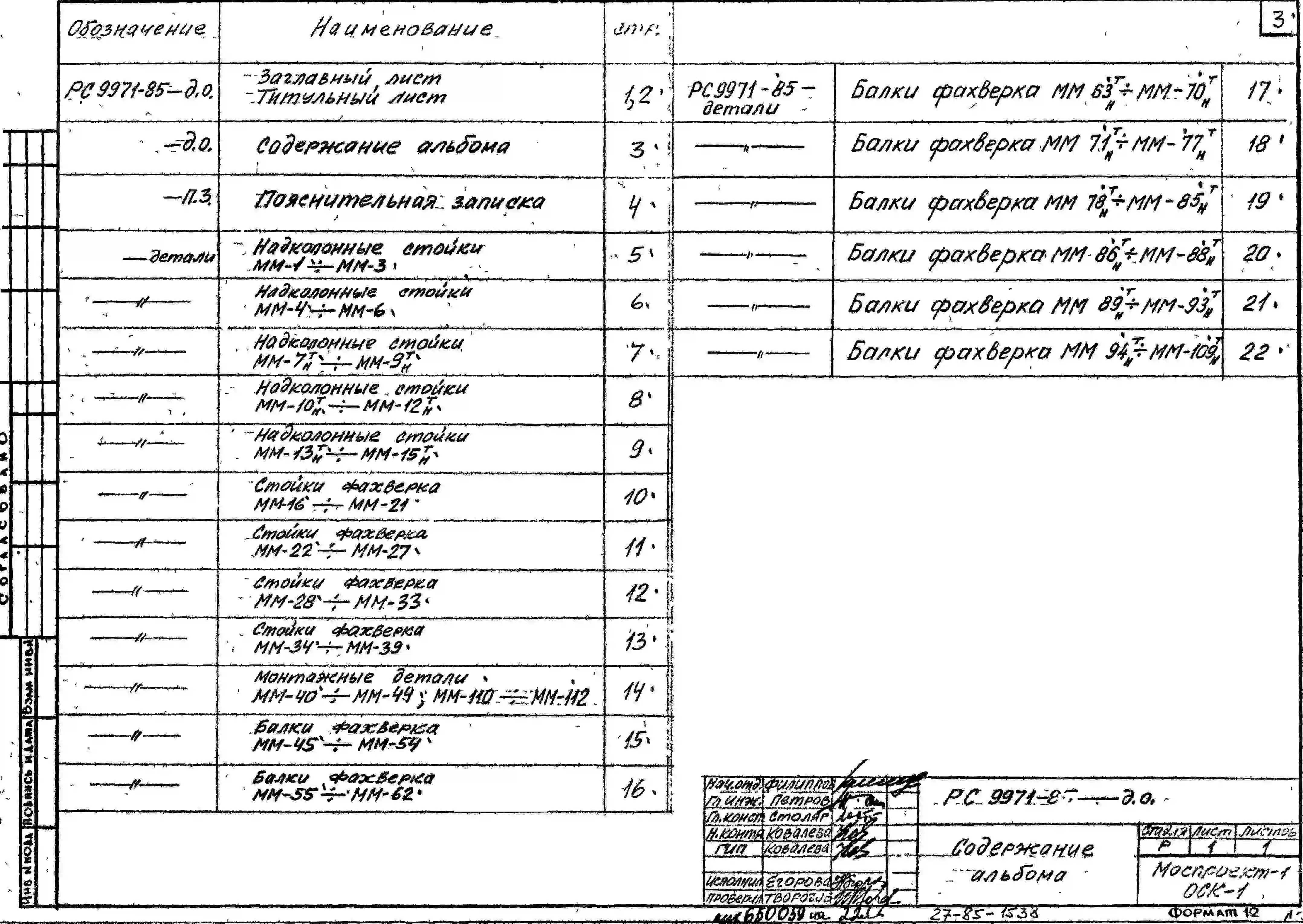 Шифр РС 9971-85 Стальные фахверки наружных керамзитобетонных навесных стен каркасных зданий (1985 г.)