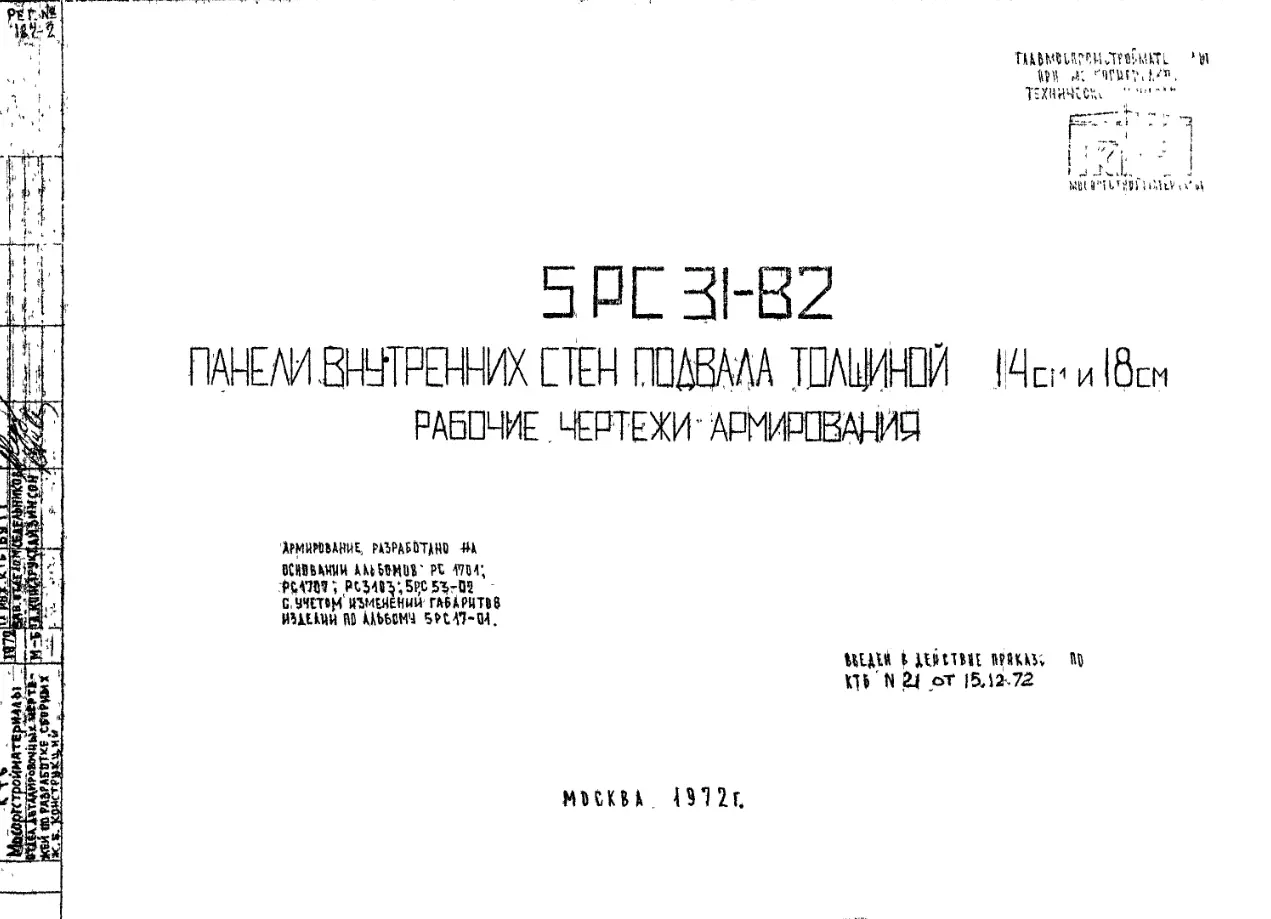 Шифр 5РС 31-82 Панели внутренних стен подвала толщиной 14 см и 18 см (1972 г.)