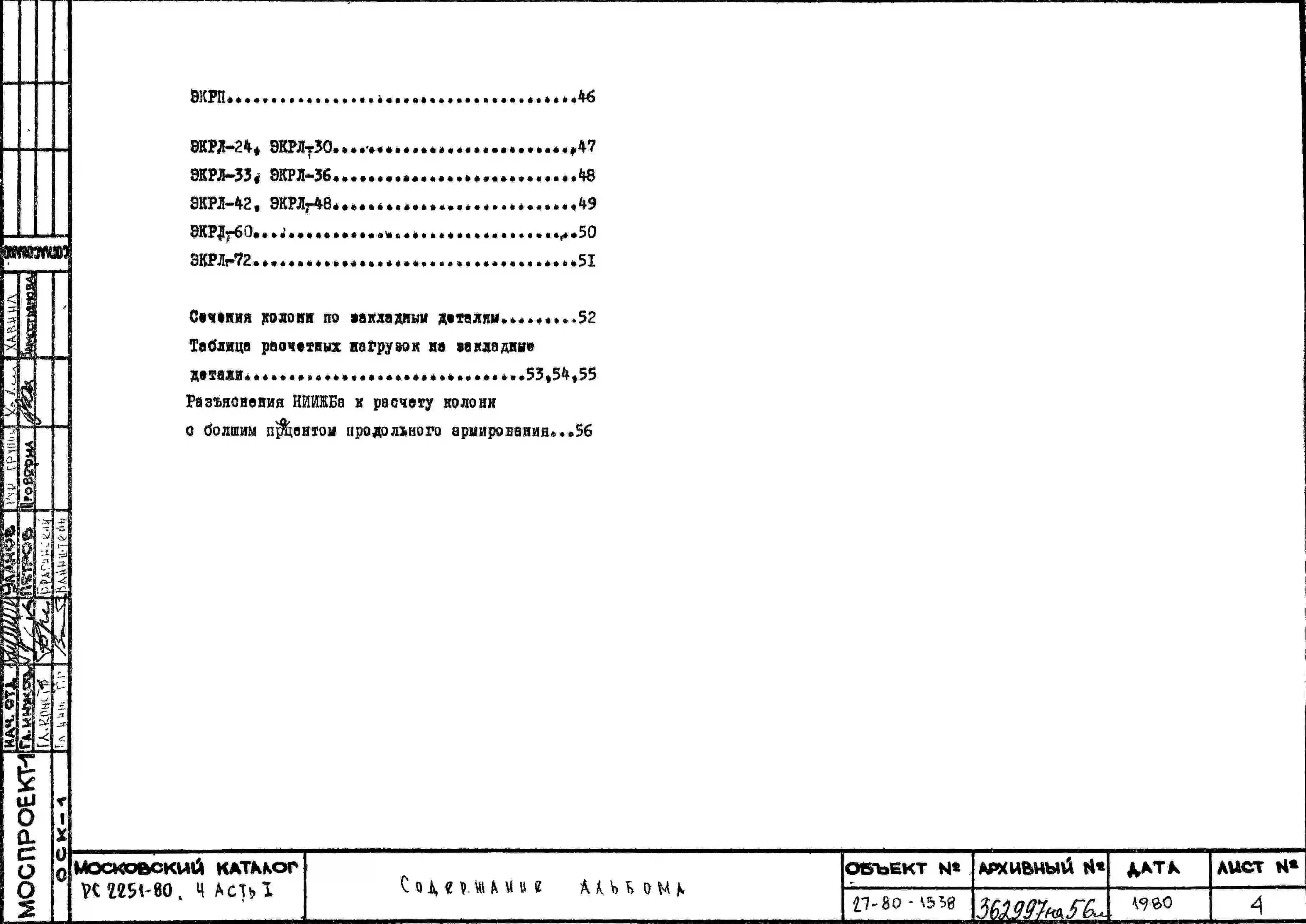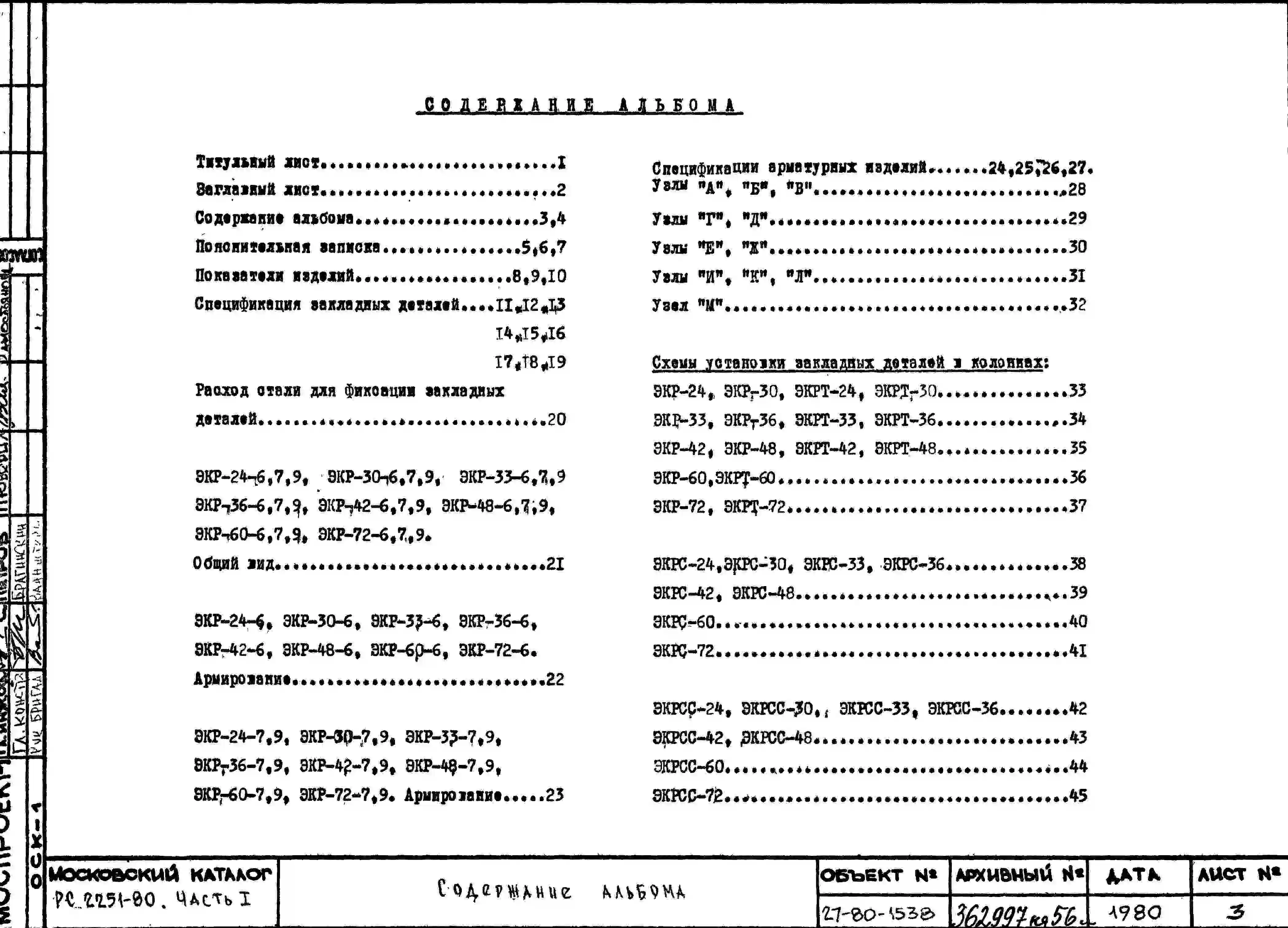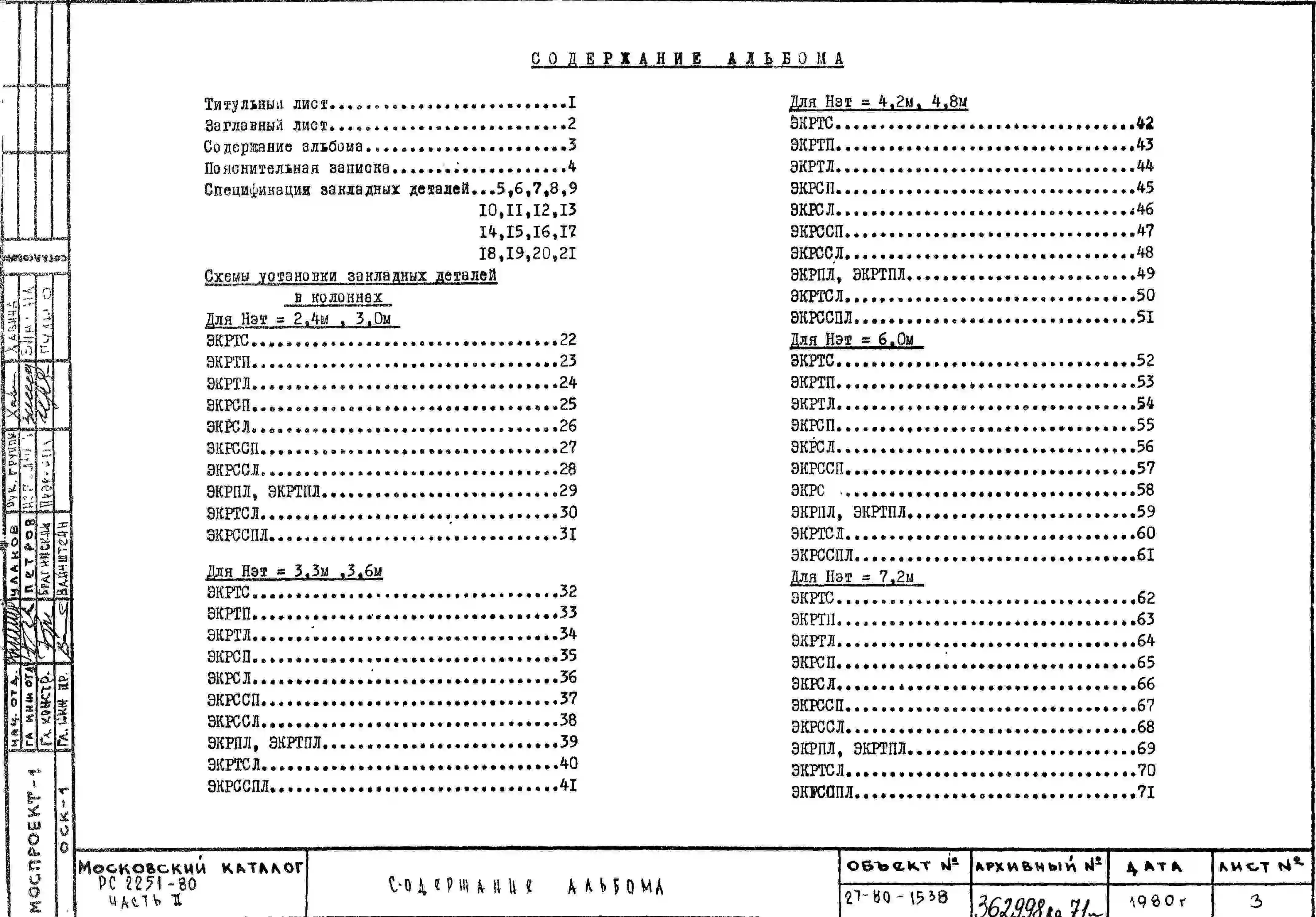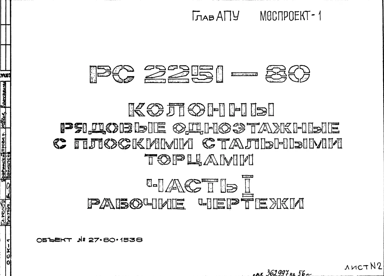 Шифр РС 2251-80 Колонны рядовые одноэтажные с плоскими стальными торцами (1980 г.)