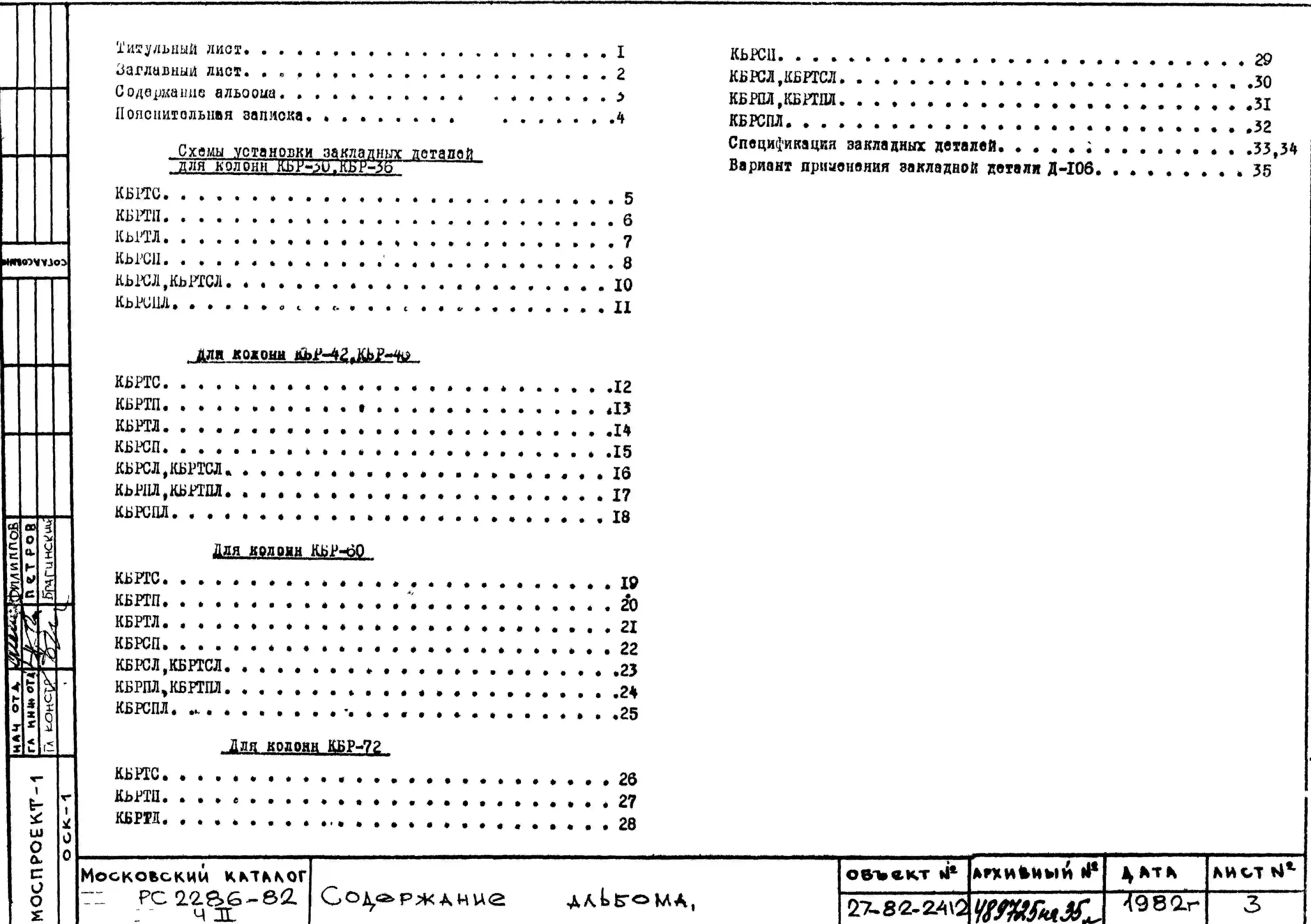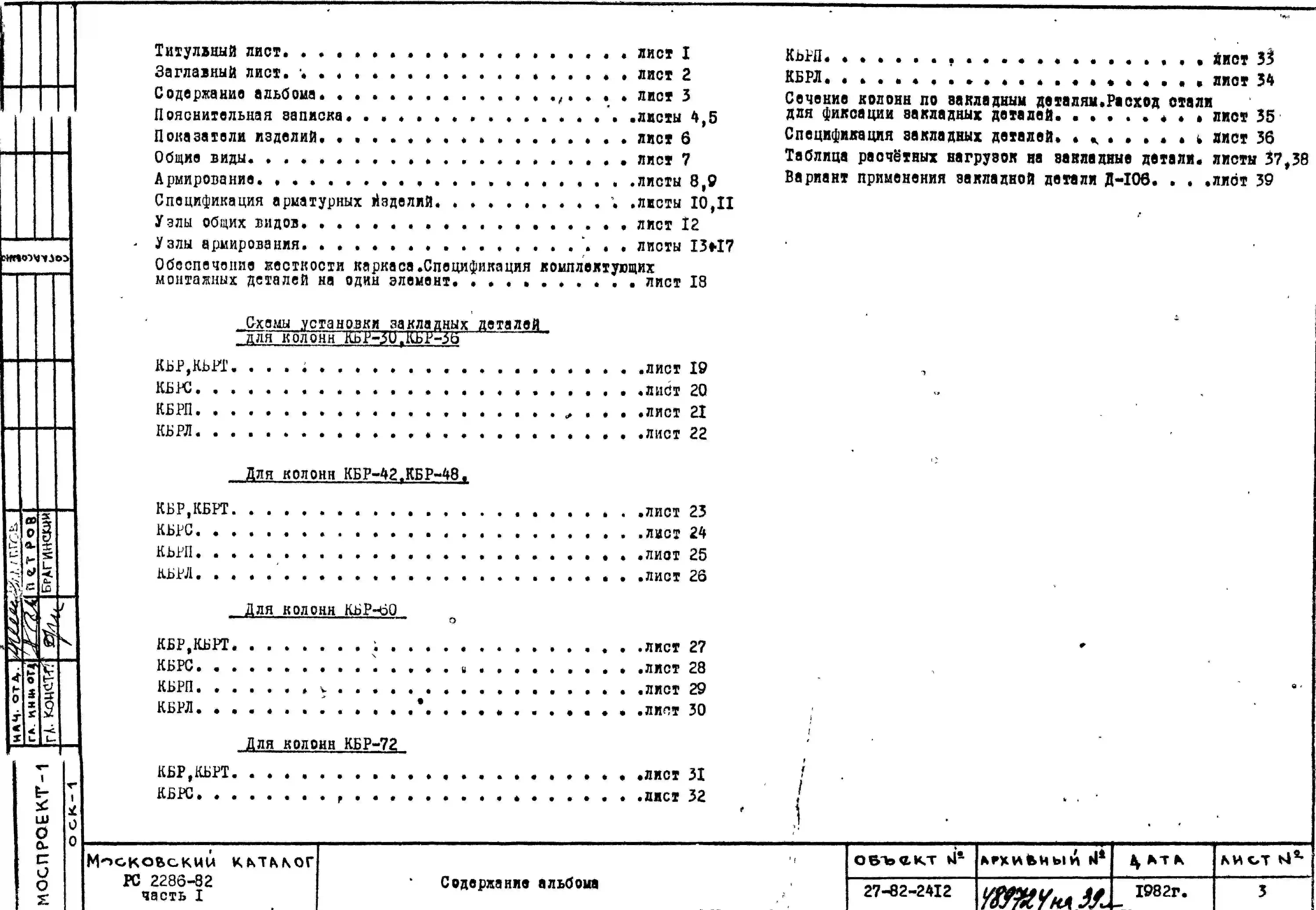 Шифр РС 2286-82 Колонны тяжелого каркаса рядовые одноэтажные (1979 г.)