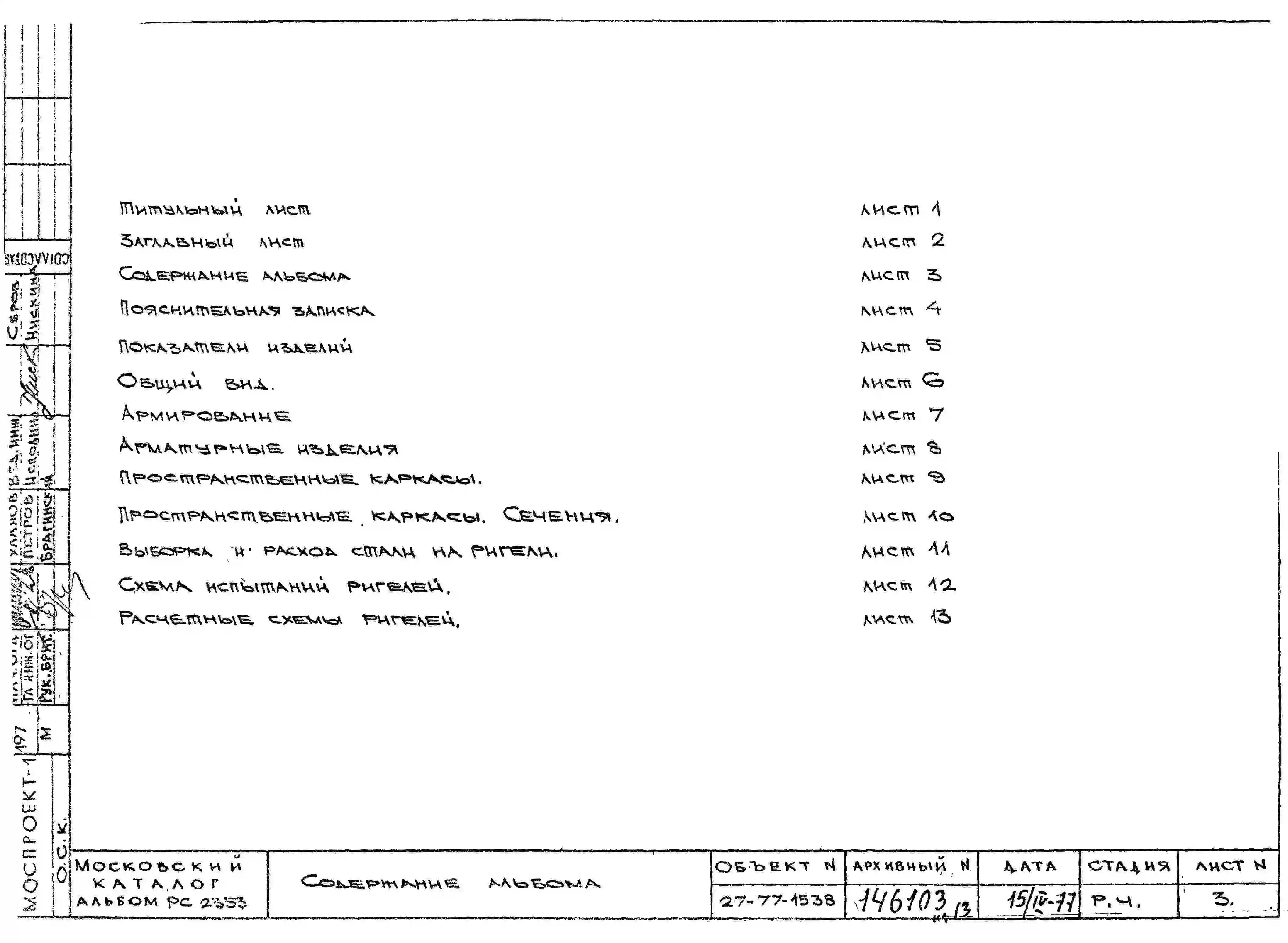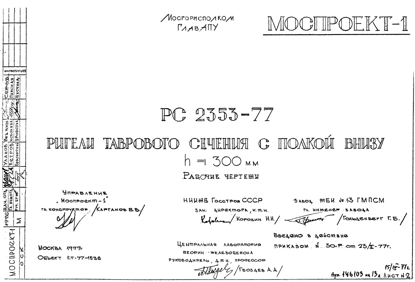 Шифр РС 2353-77 Ригели таврового сечения с полкой внизу h=300 мм (1977 г.)