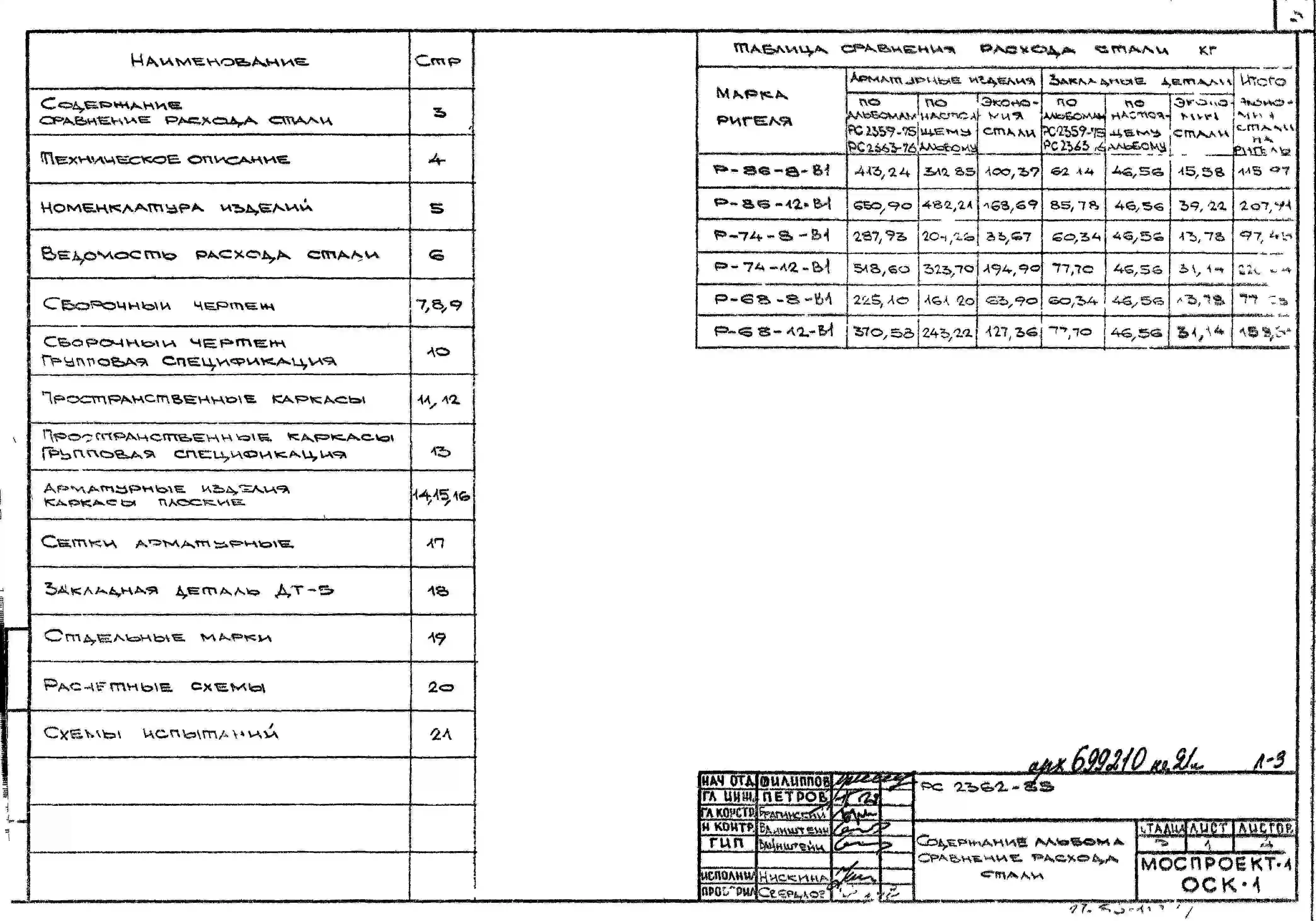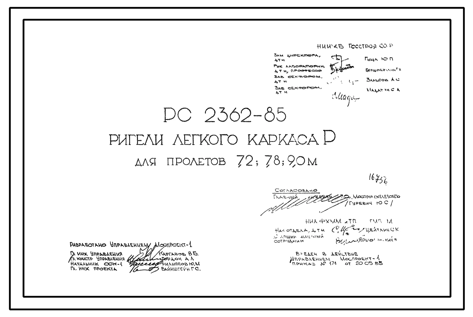 Шифр РС 2362-85 Ригели легкого каркаса Р для пролетов 7,2; 7,8; 9,0 м (1985 г.). Замена РС 2359-75, РС 2363-76