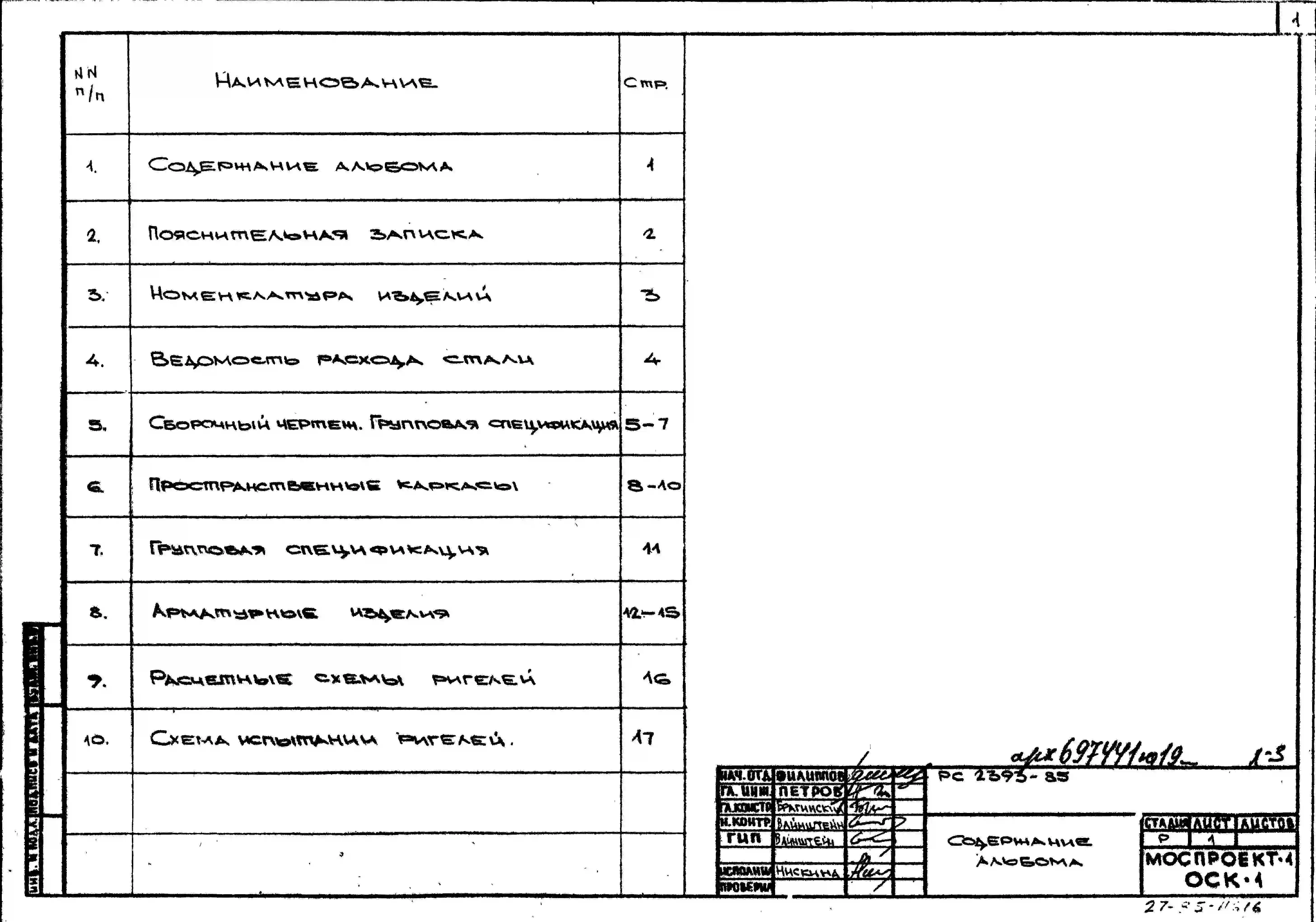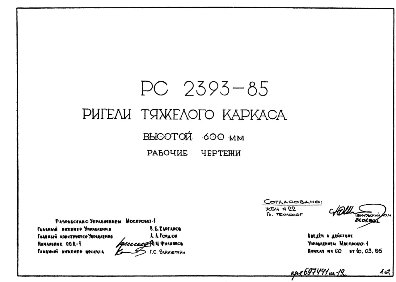 Шифр РС 2393-85 Ригели тяжелого каркаса высотой 600 мм (1986 г.)