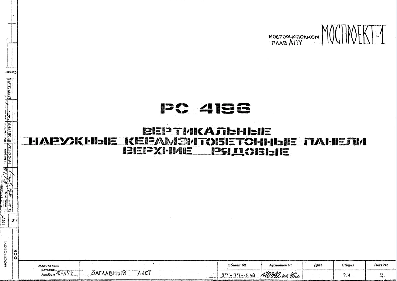 Шифр РС 4196 Вертикальные наружные керамзитобетонные панели верхние рядовые