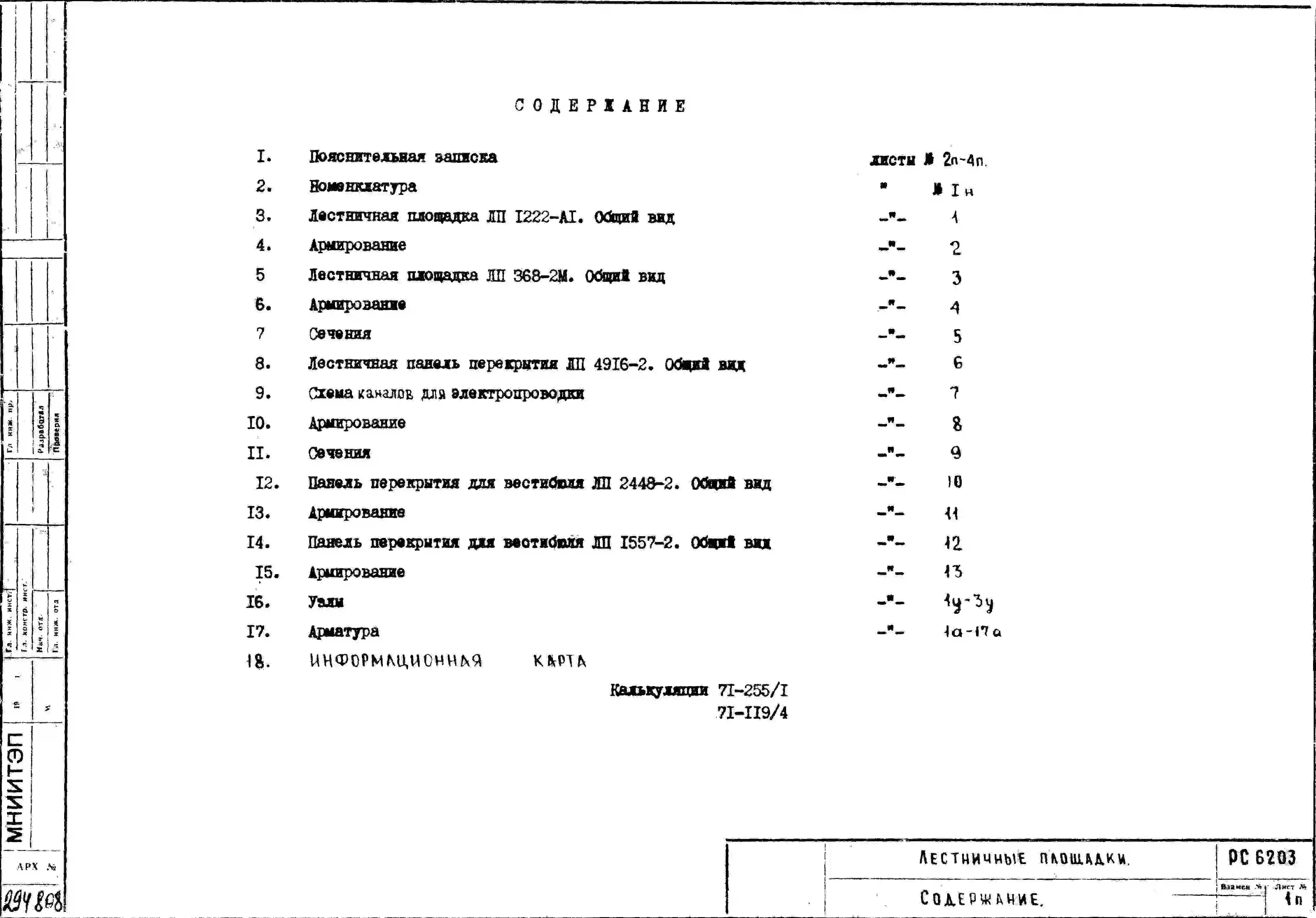 Шифр РС 6203 Лестничные площадки (1971 г.)