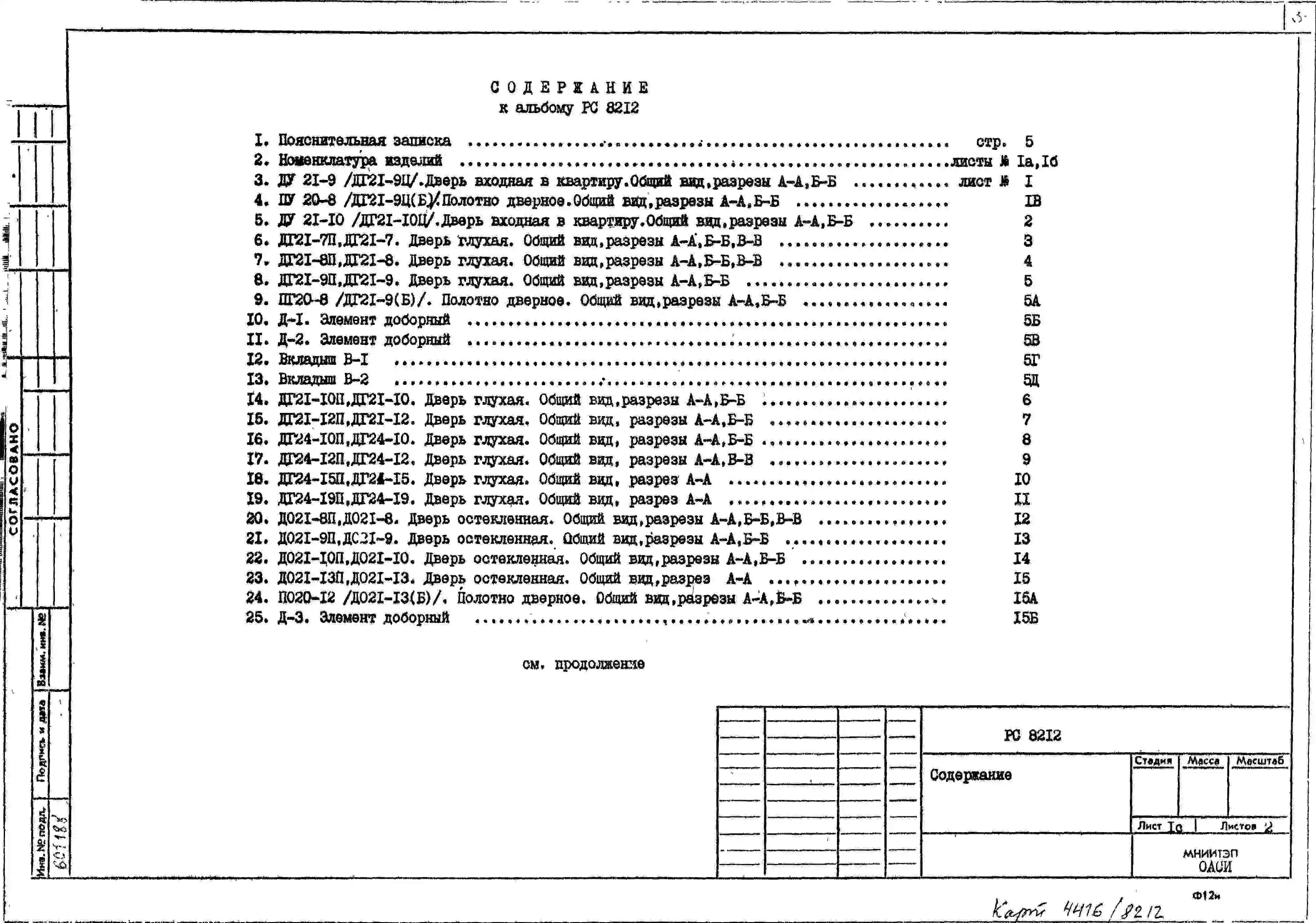 Шифр РС 8212 Двери внутренние деревянные для жилых и общественных зданий (1984 г.)