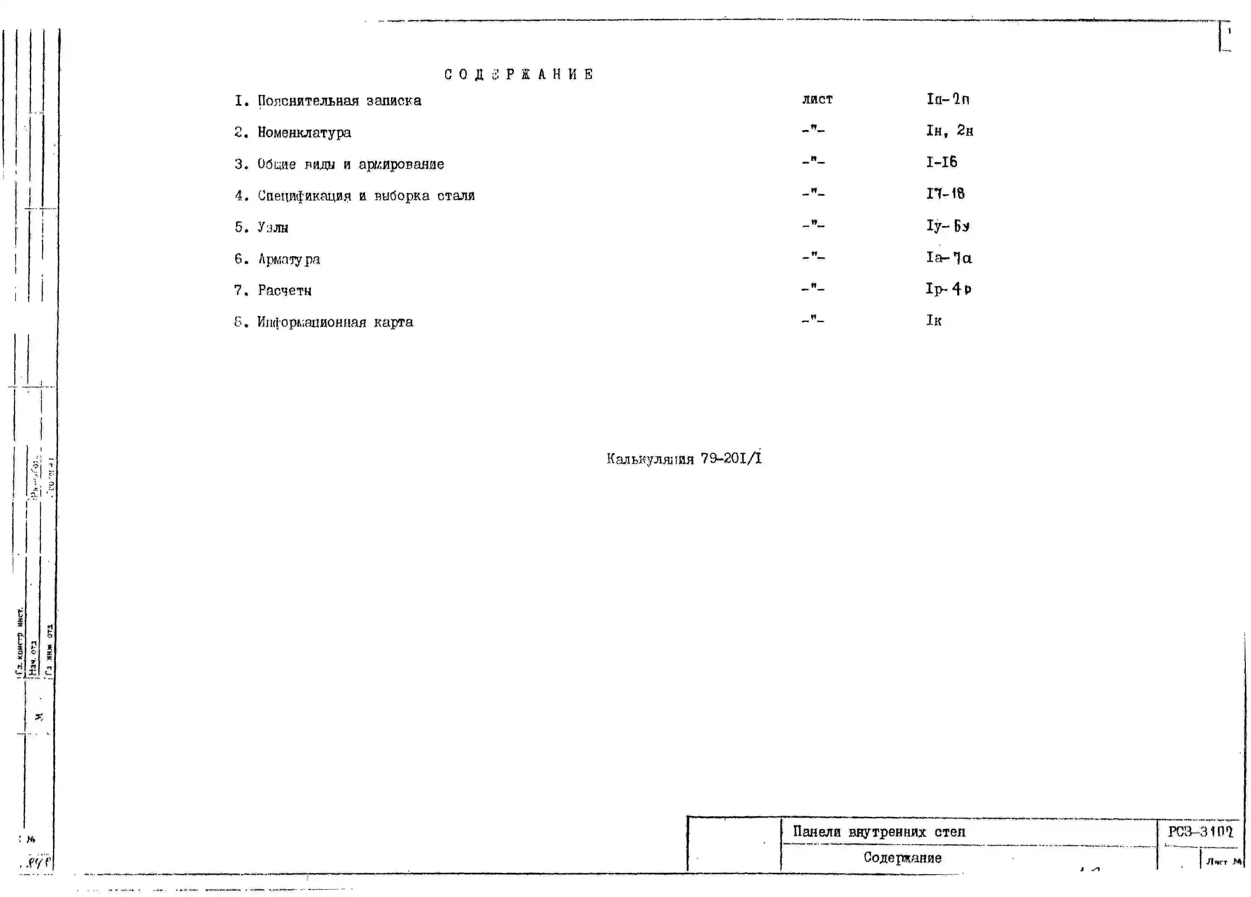 Шифр РС3 3102 Панели внутренних стен (1979 г.)
