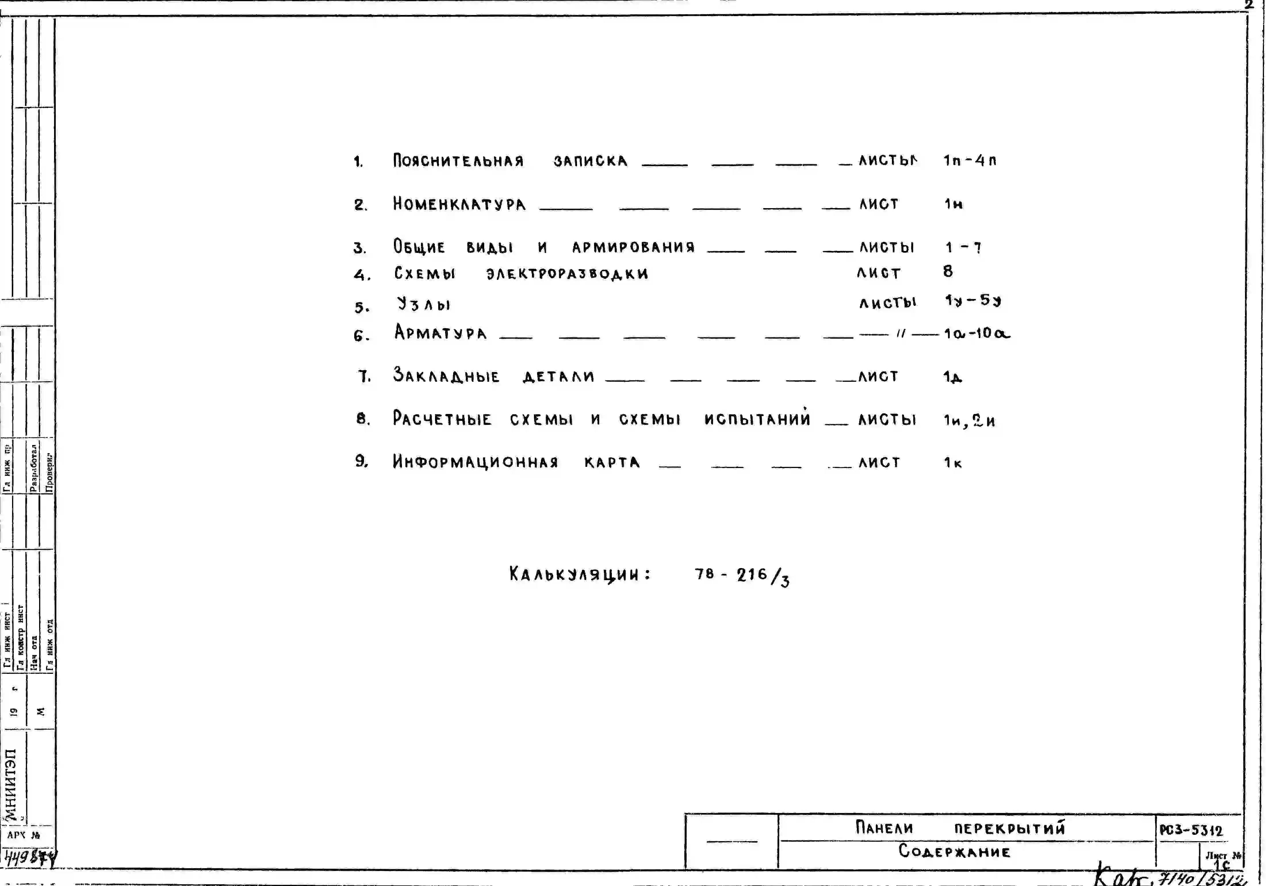 Шифр РС3 5312 Панели перекрытий сплошные толщиной 14 см (1978 г.)