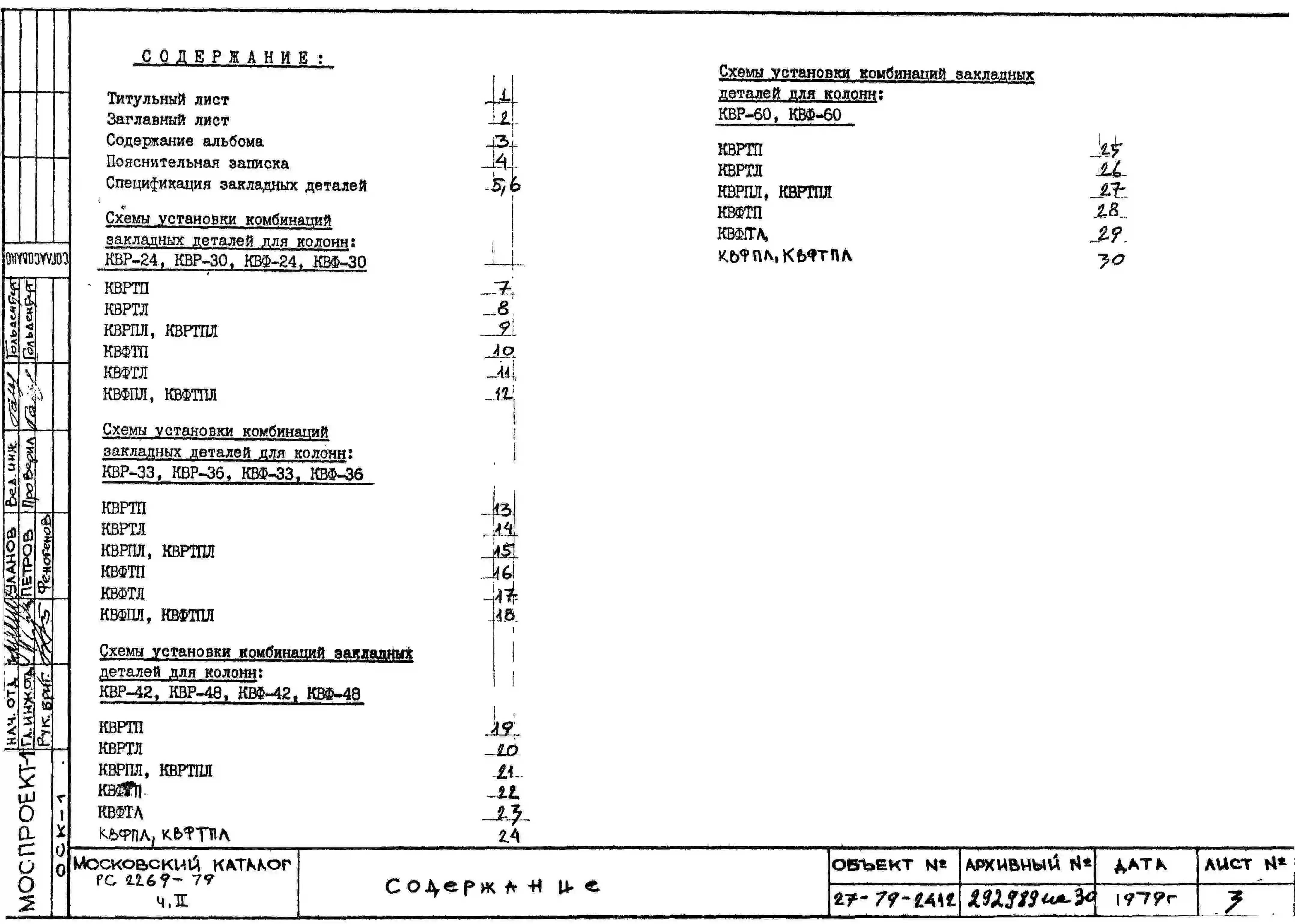 Шифр РС 2269-79 Колонны верхние легкого каркаса (1979 г.)