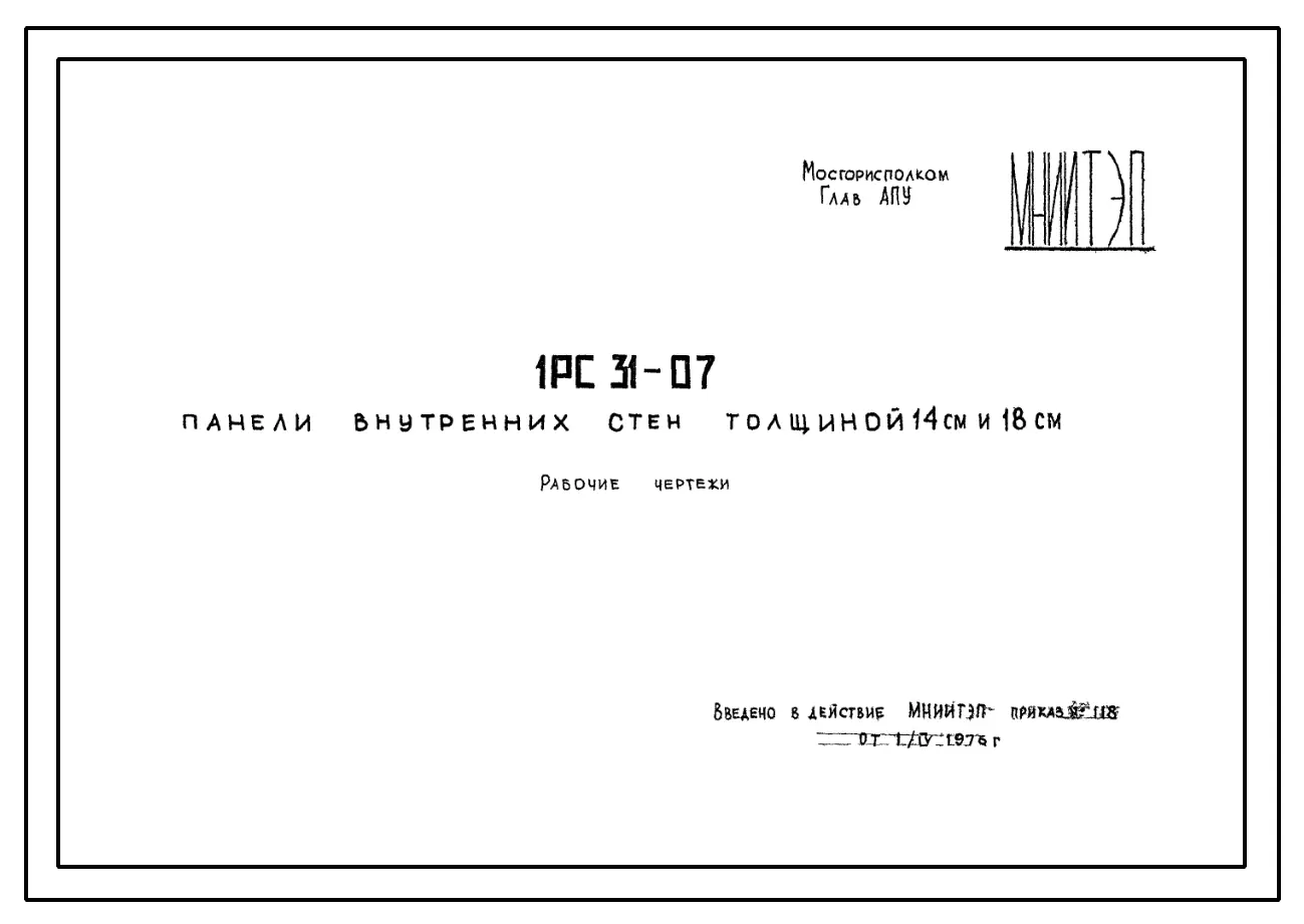 Шифр 1РС 31-07 Панели внутренних стен толщиной 14 см и 18 см . Рабочие чертежи. Разработка 1976 года
