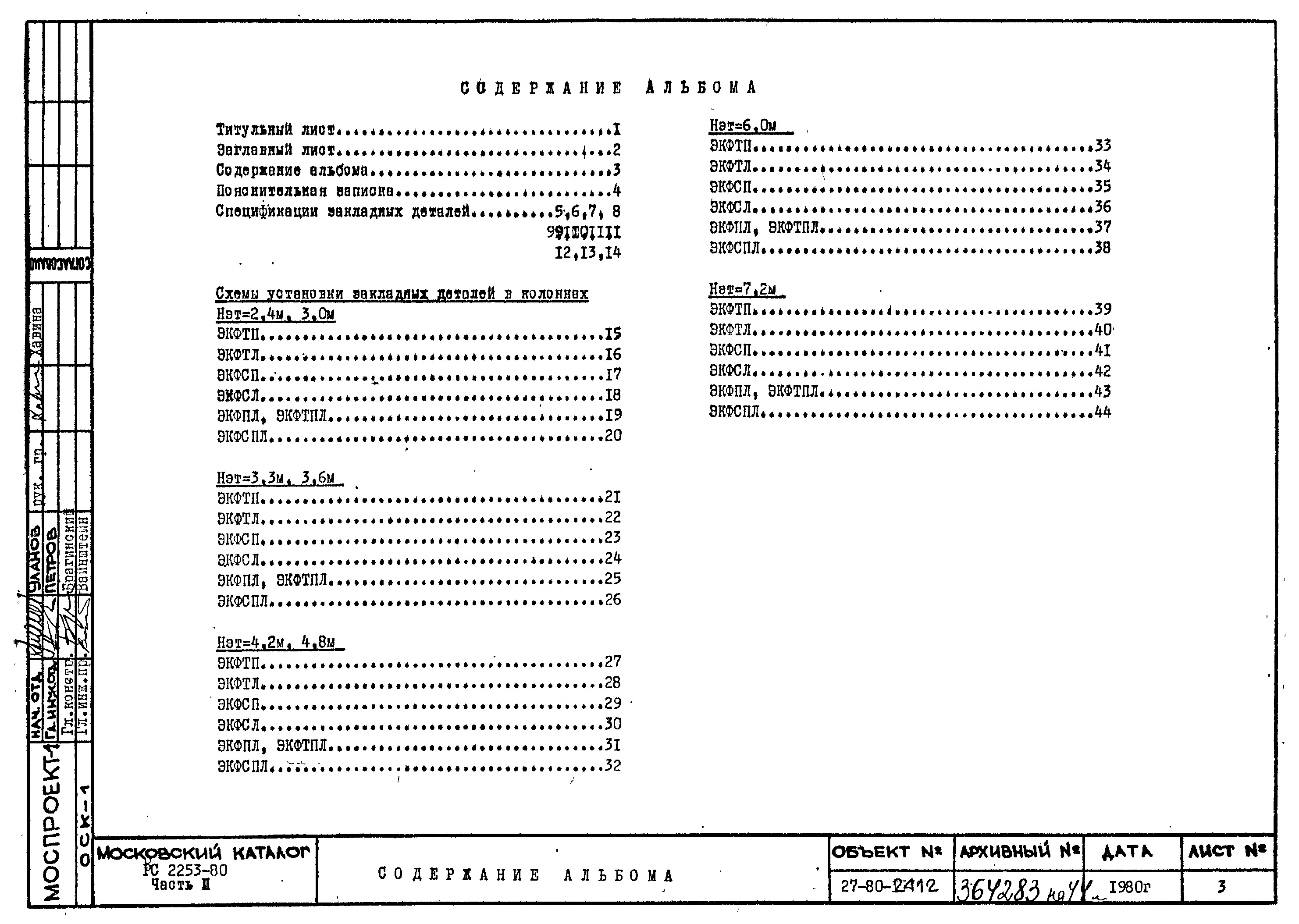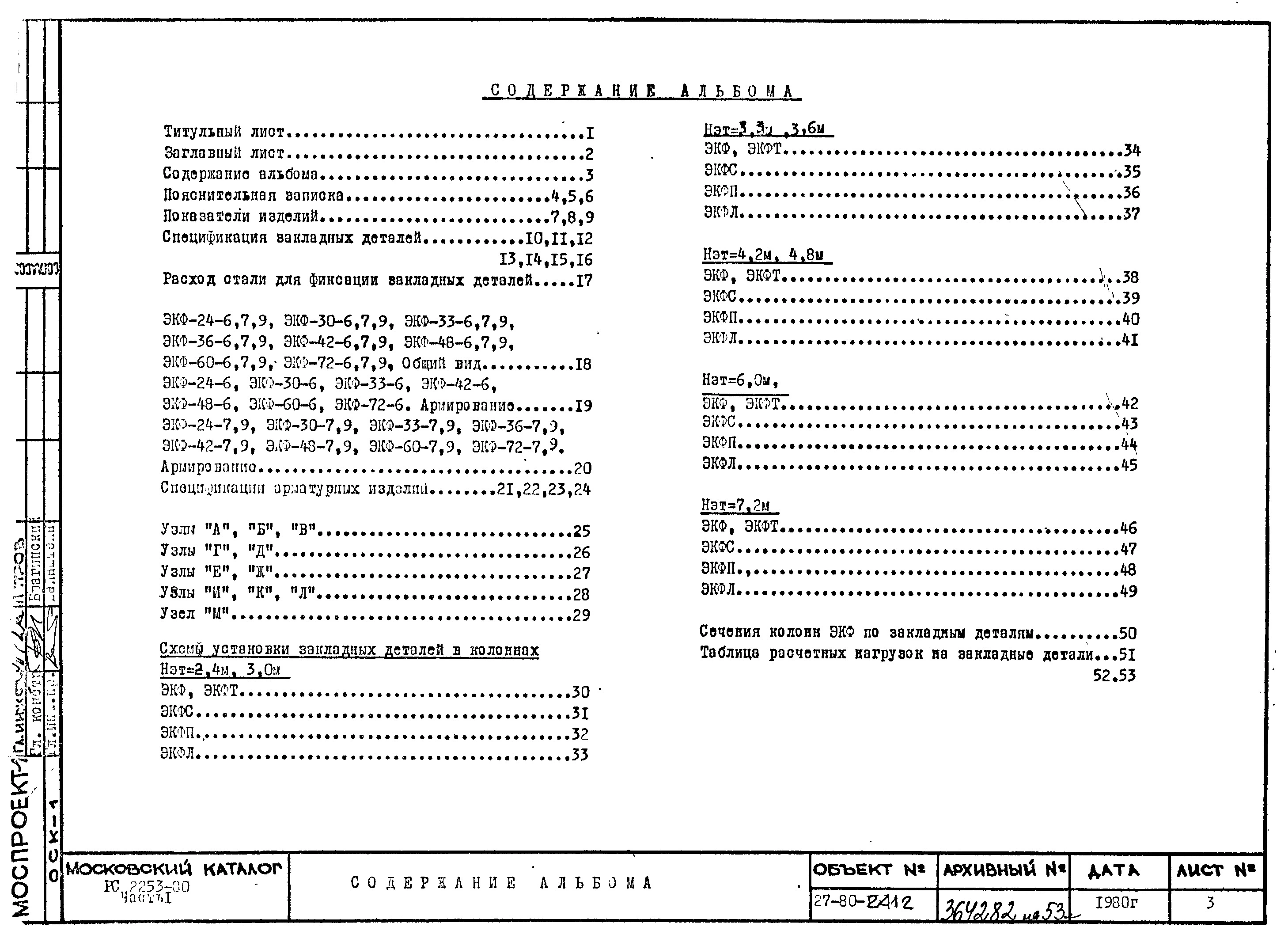 Шифр РС 2253-80 Колонны фасадные одноэтажные с плоскими стальными торцами. Рабочие чертежи. Разработка 1980 года
