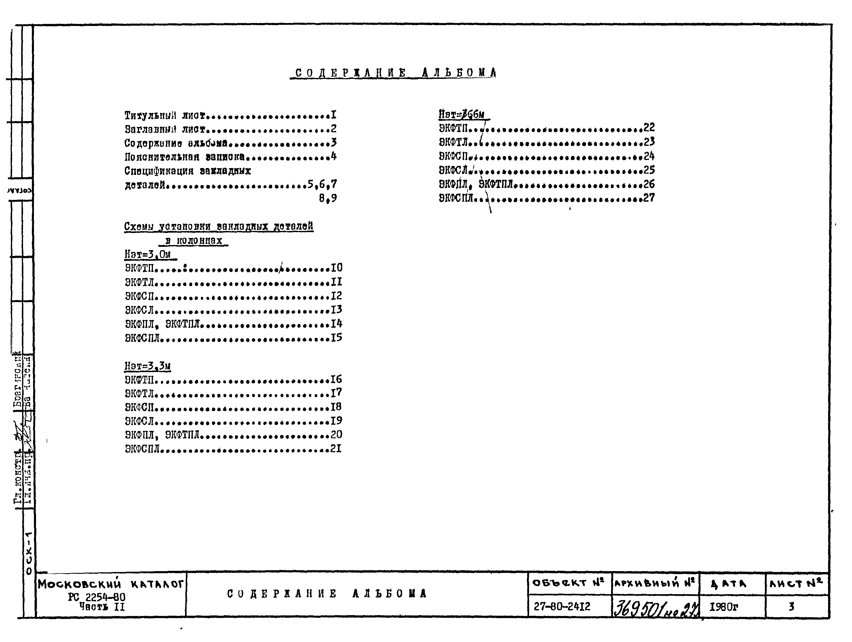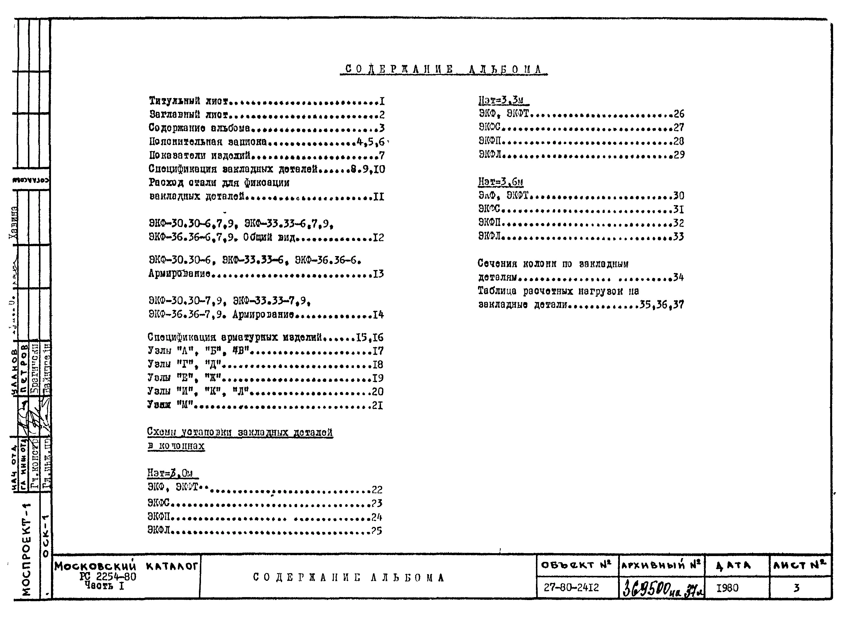 Шифр РС 2254-80 Колонны фасадные двухэтажные с плоскими стальными торцами. Рабочие чертежи. Разработка 1980 года
