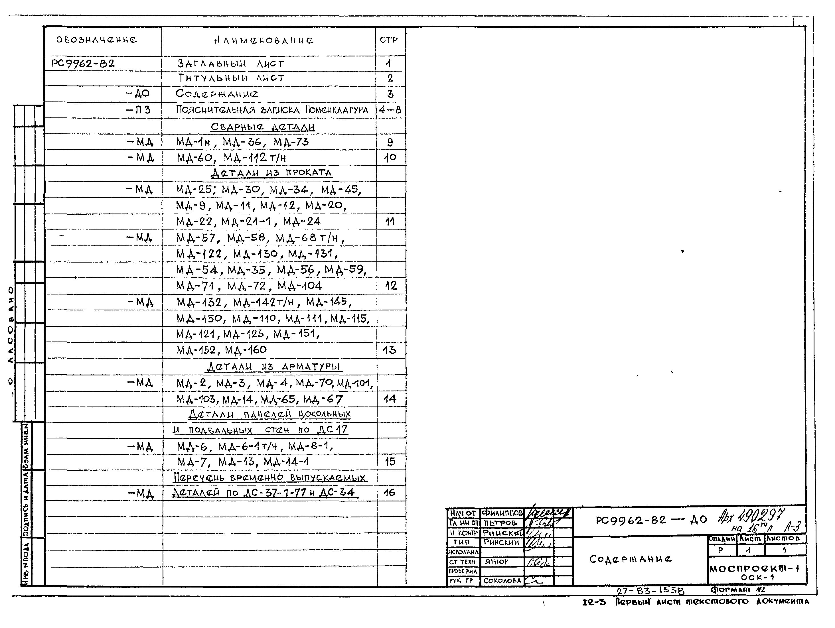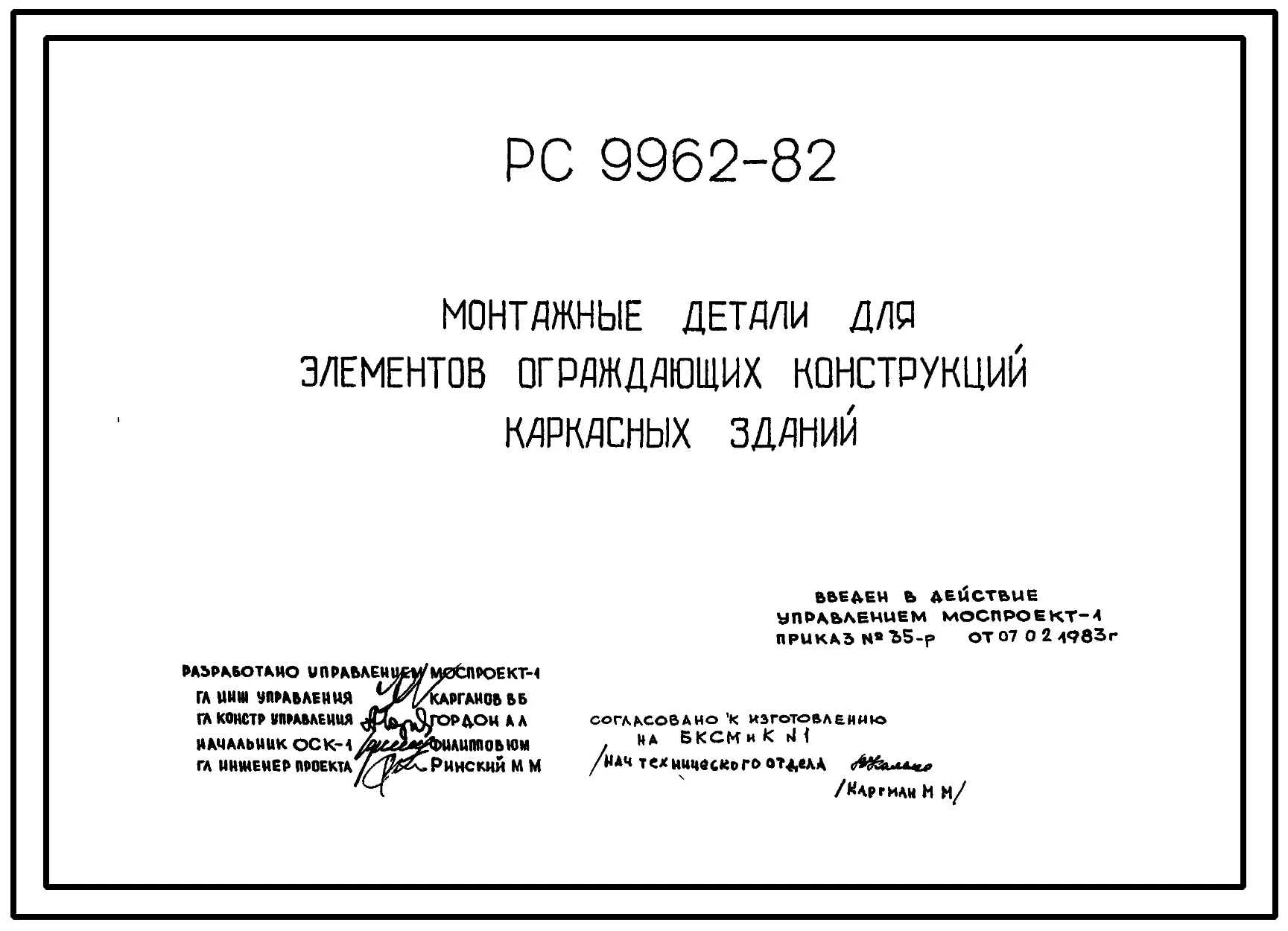Шифр РС 9962-82 Монтажные детали для элементов ограждающих конструкций каркасных зданий. Рабочие чертежи. Разработка 1983 года