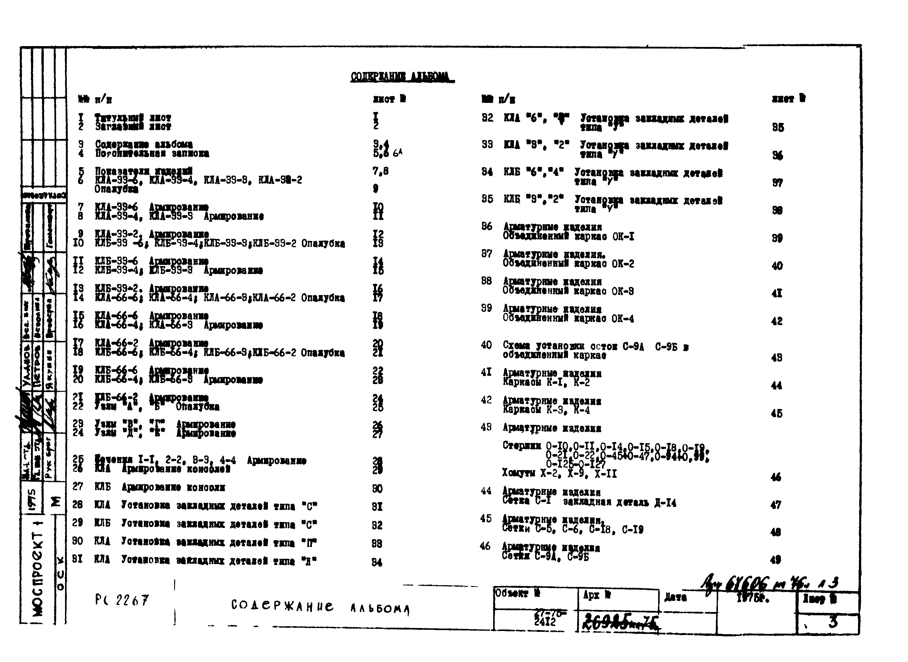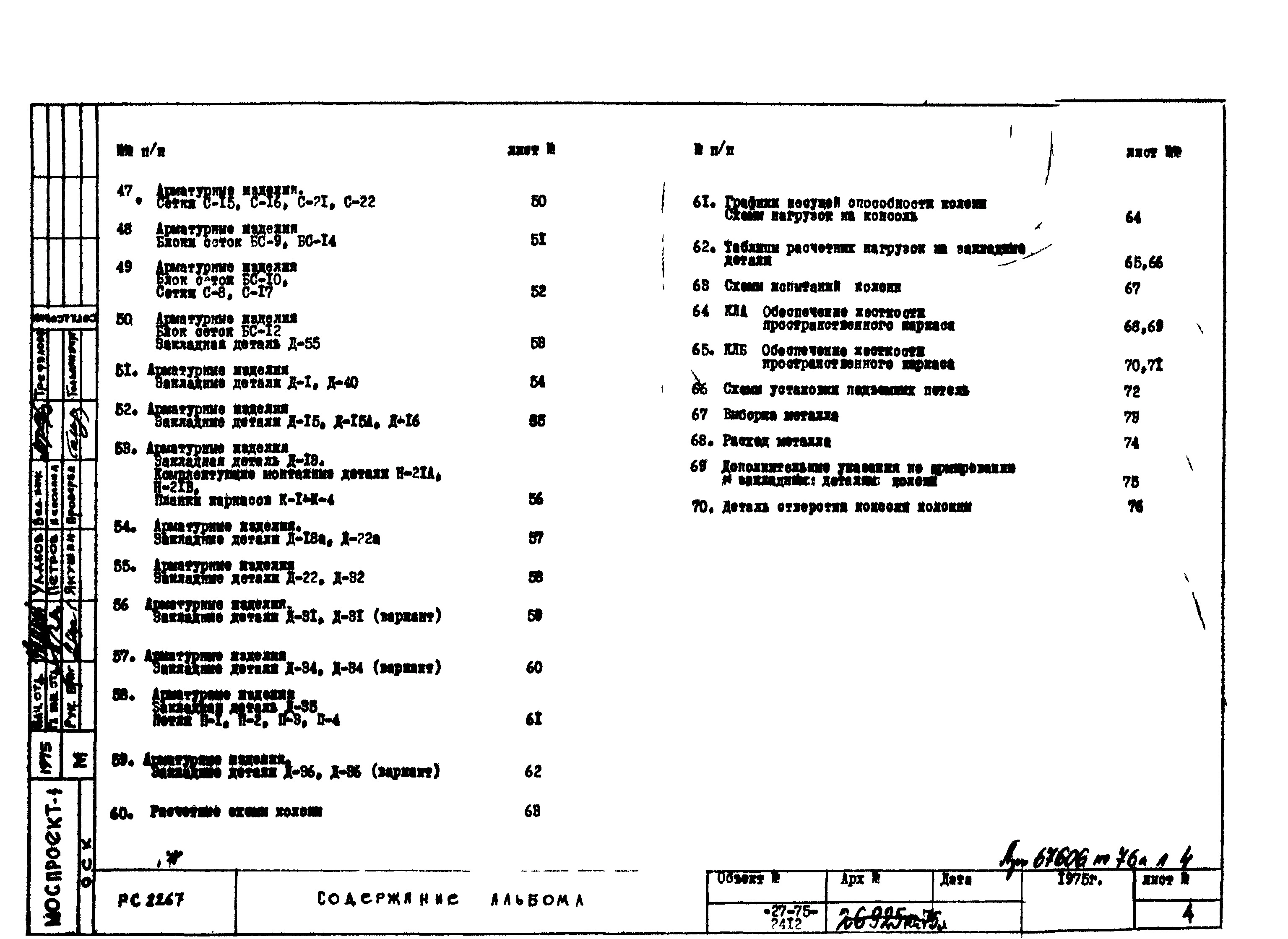 Шифр РС 2267-75 Колонны лоджий с консолями переменного сечения для этажей высотой 3,3м.