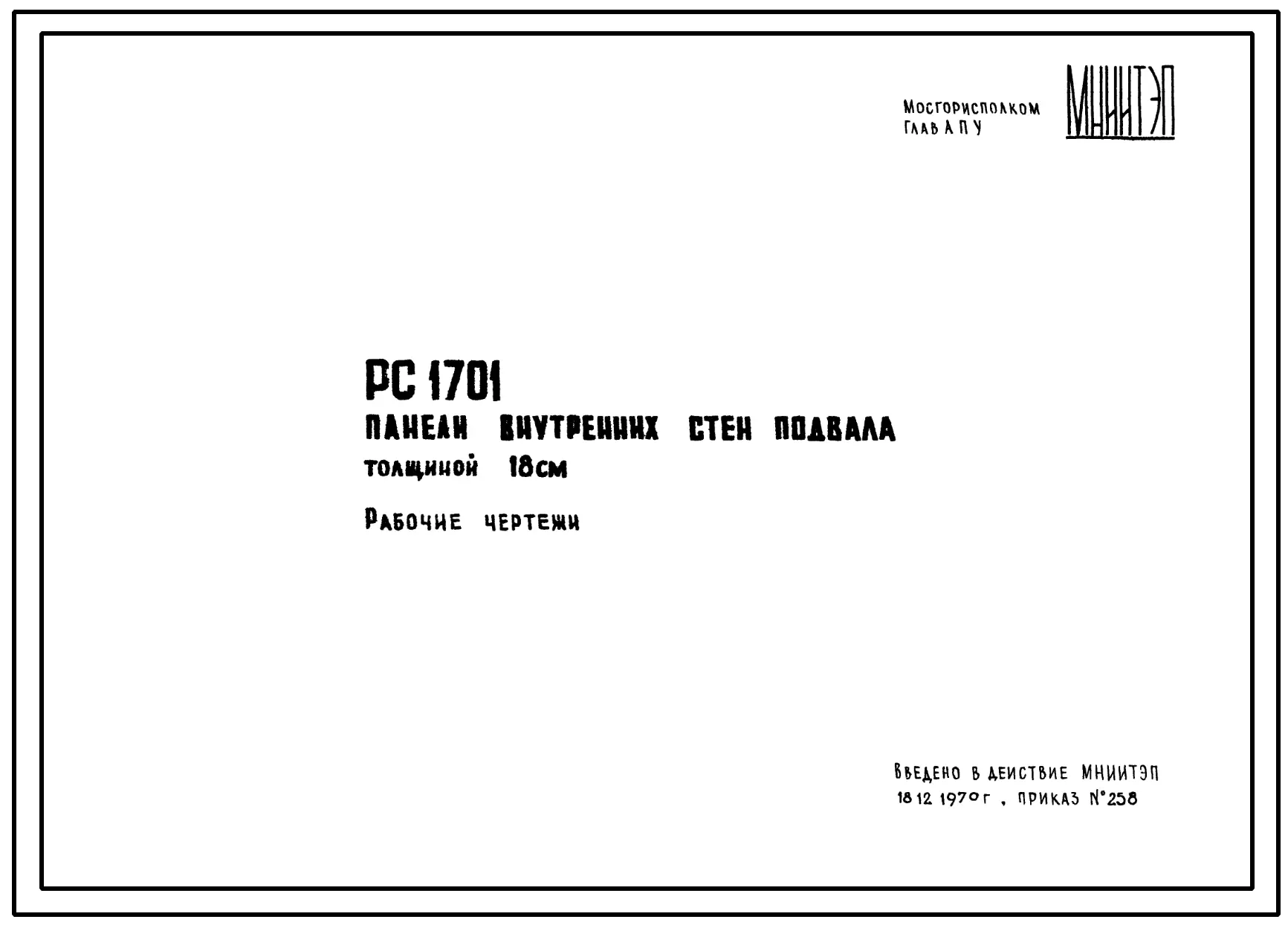 Шифр РС 1701 Панели внутренних стен подвала толщиной 18 см. Рабочие чертежи.