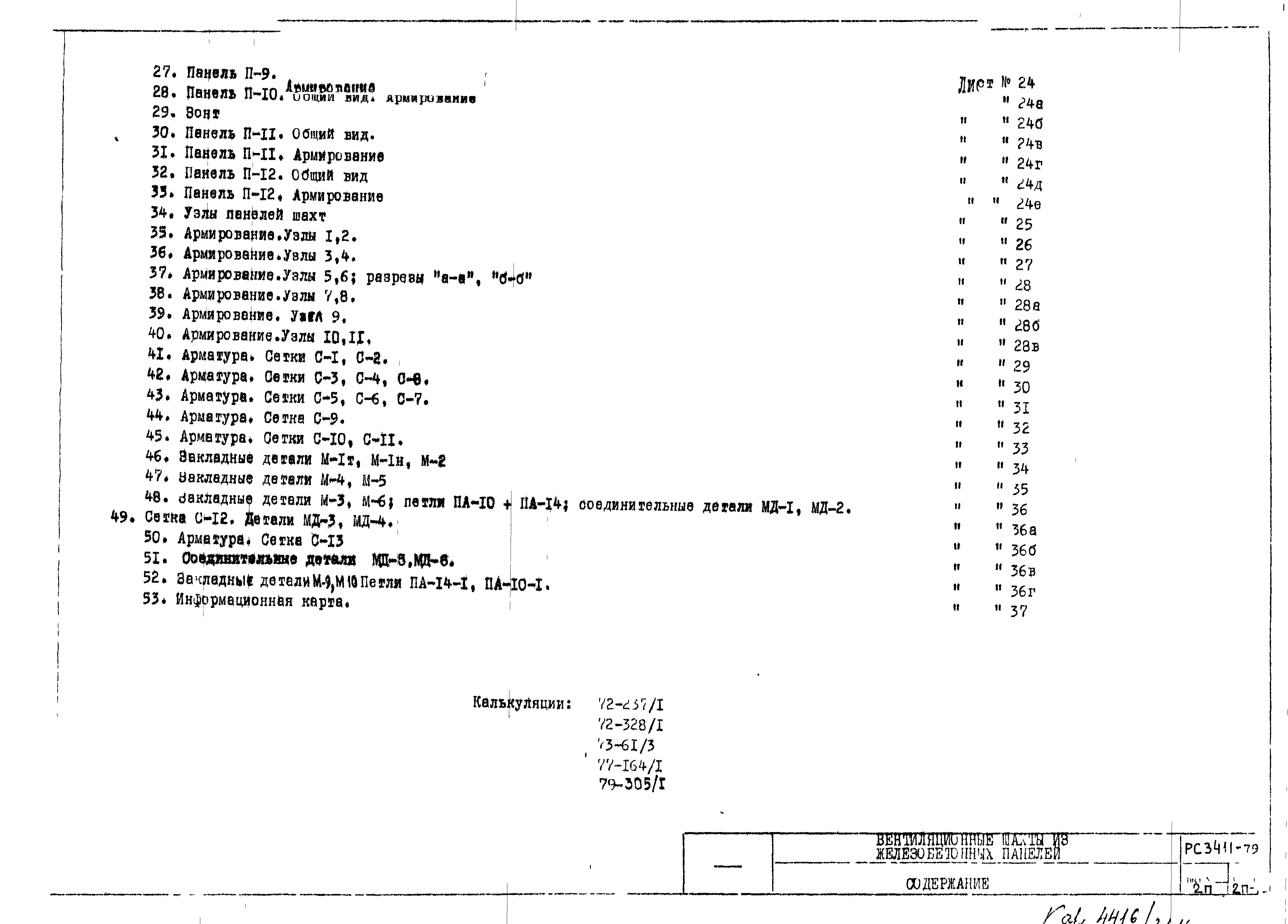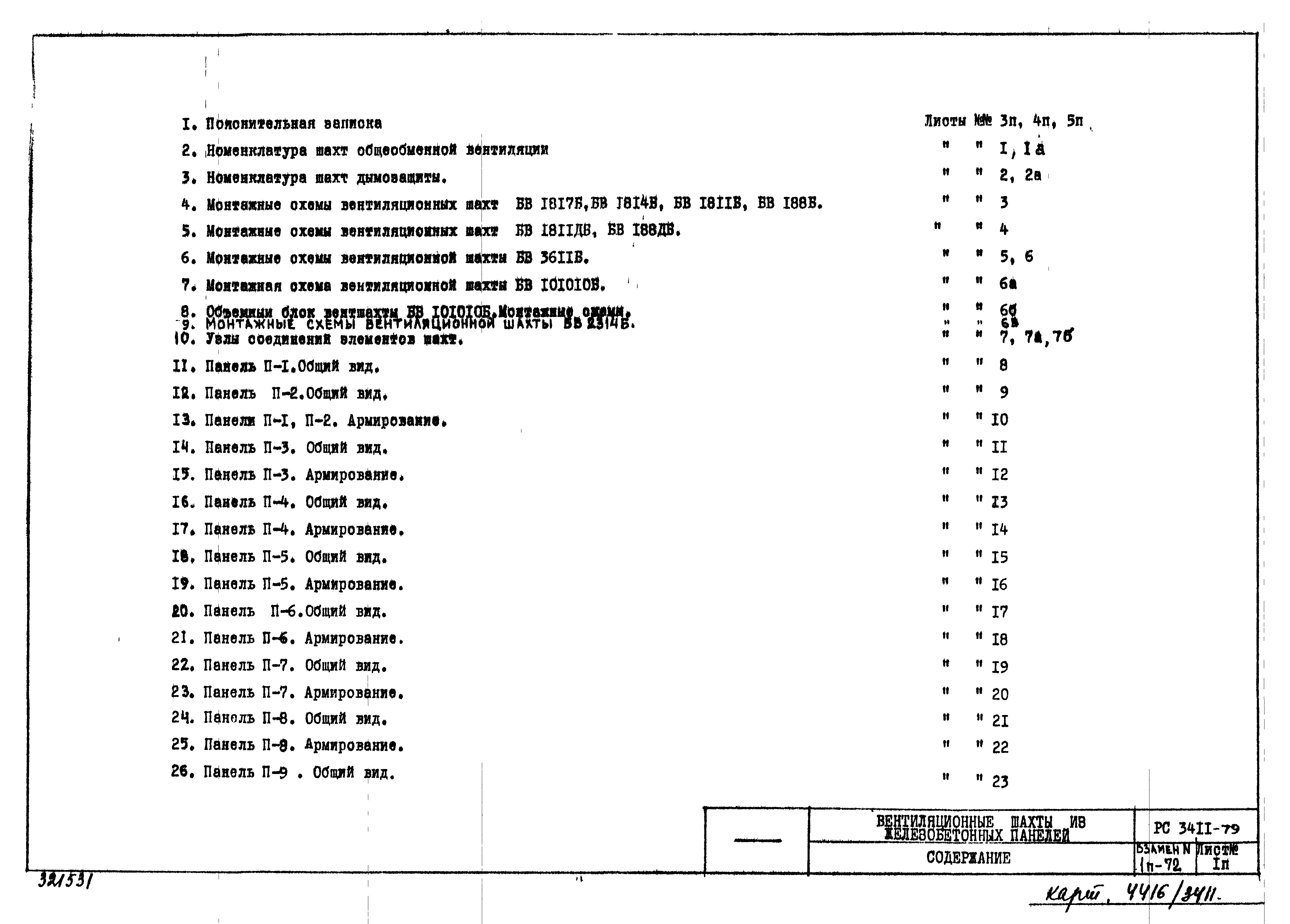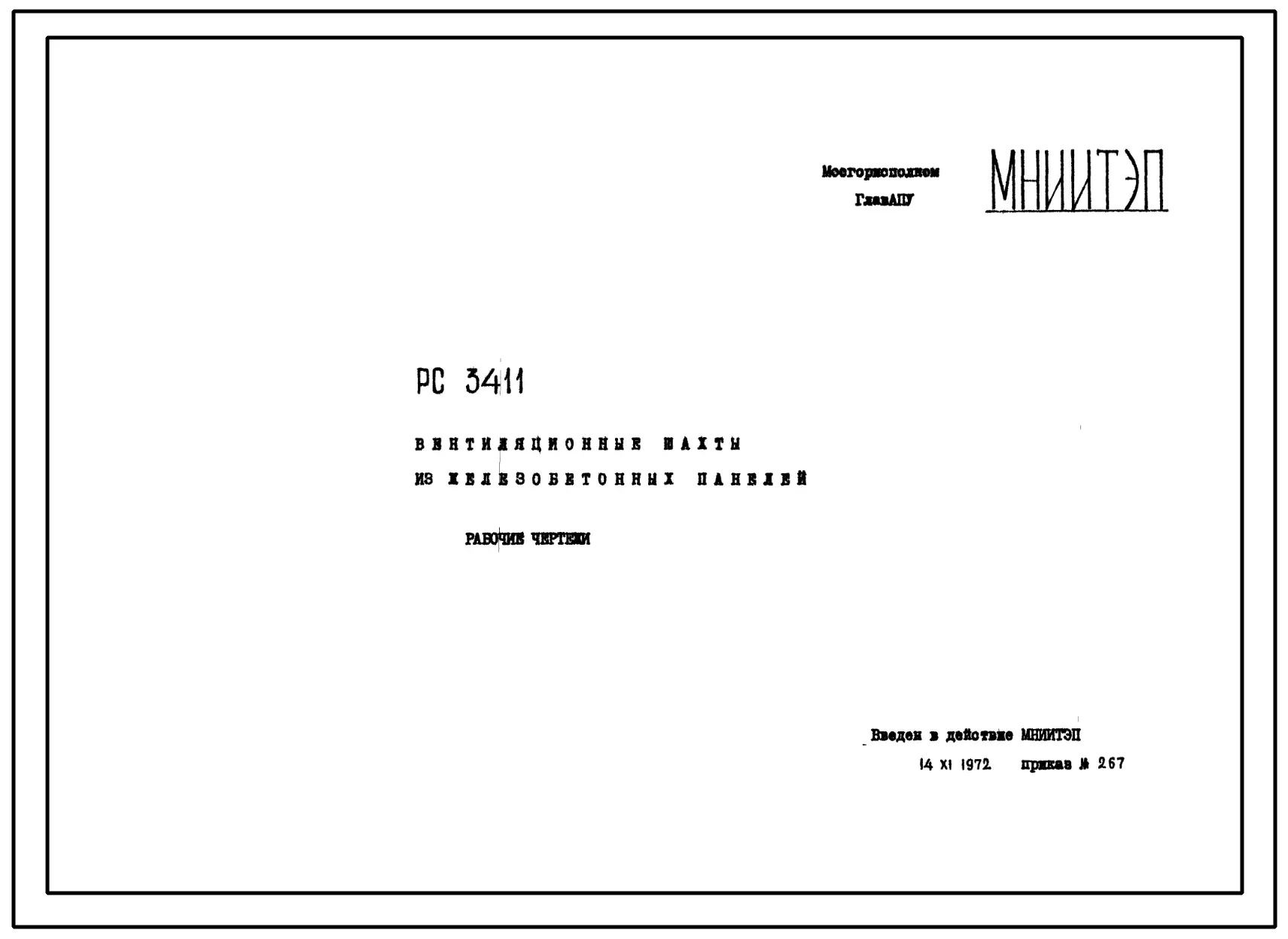 Шифр РС 3411 Вентиляционные шахты из железобетонных панелей. Рабочие чертежи.