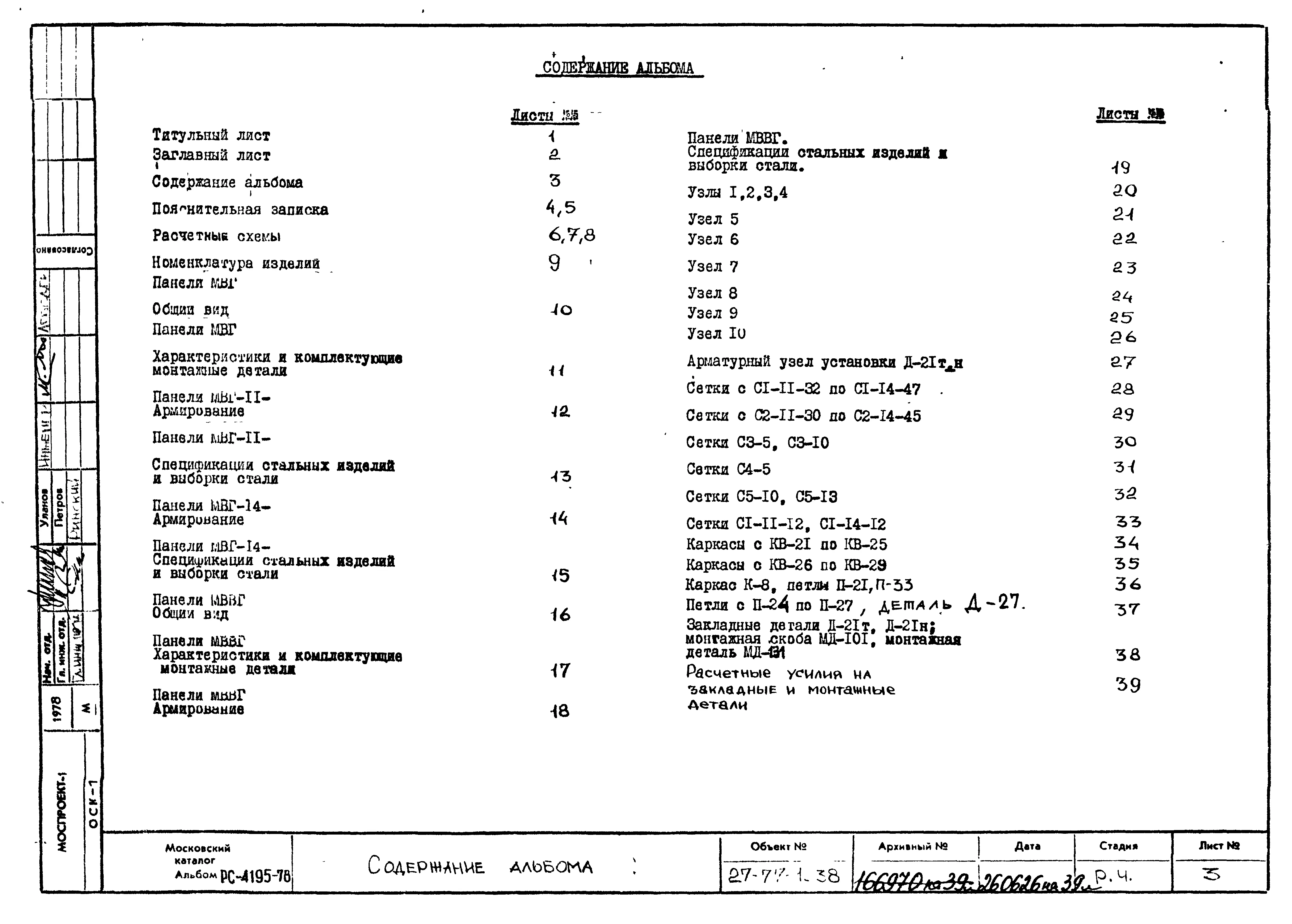 Шифр РС 4195-78 Вертикальные наружные керамзитобетонные панели для уступов фасадов (1978 г.)