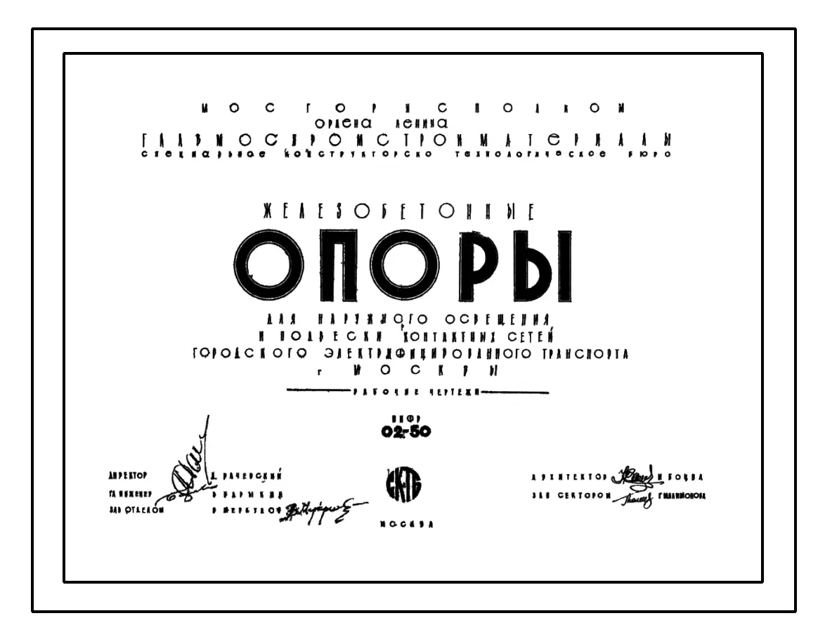 Шифр 02-50 Железобетонные опоры для наружного освещения и подвески контактных сетей городского электрифицированного транспорта г.Москвы. СКТБ. 1973 год