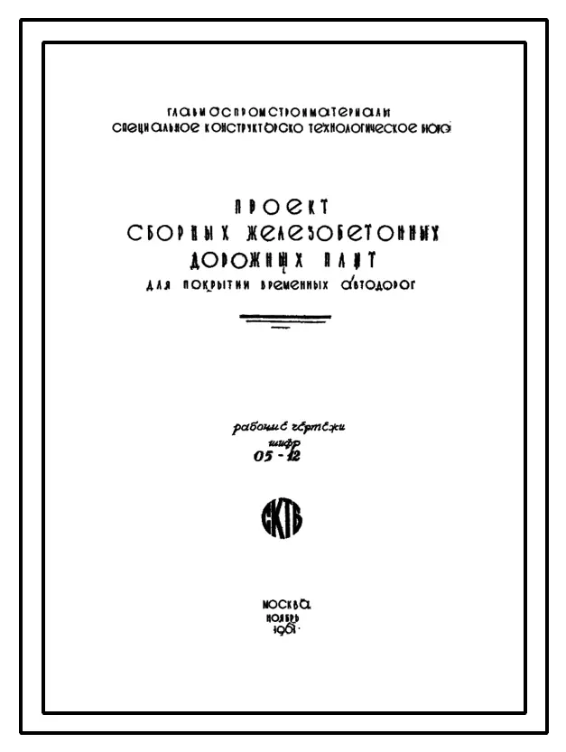 Шифр 05-12 Сборные железобетонные дорожные плиты для покрытия временных автодорог. СКТБ. 1961 год.
