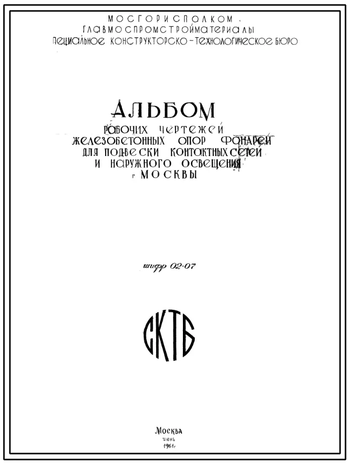 Шифр 02-07 Железобетонные опоры фонарей для подвески контактных сетей и наружного освещения г.Москвы. СКТБ. 1961 год.