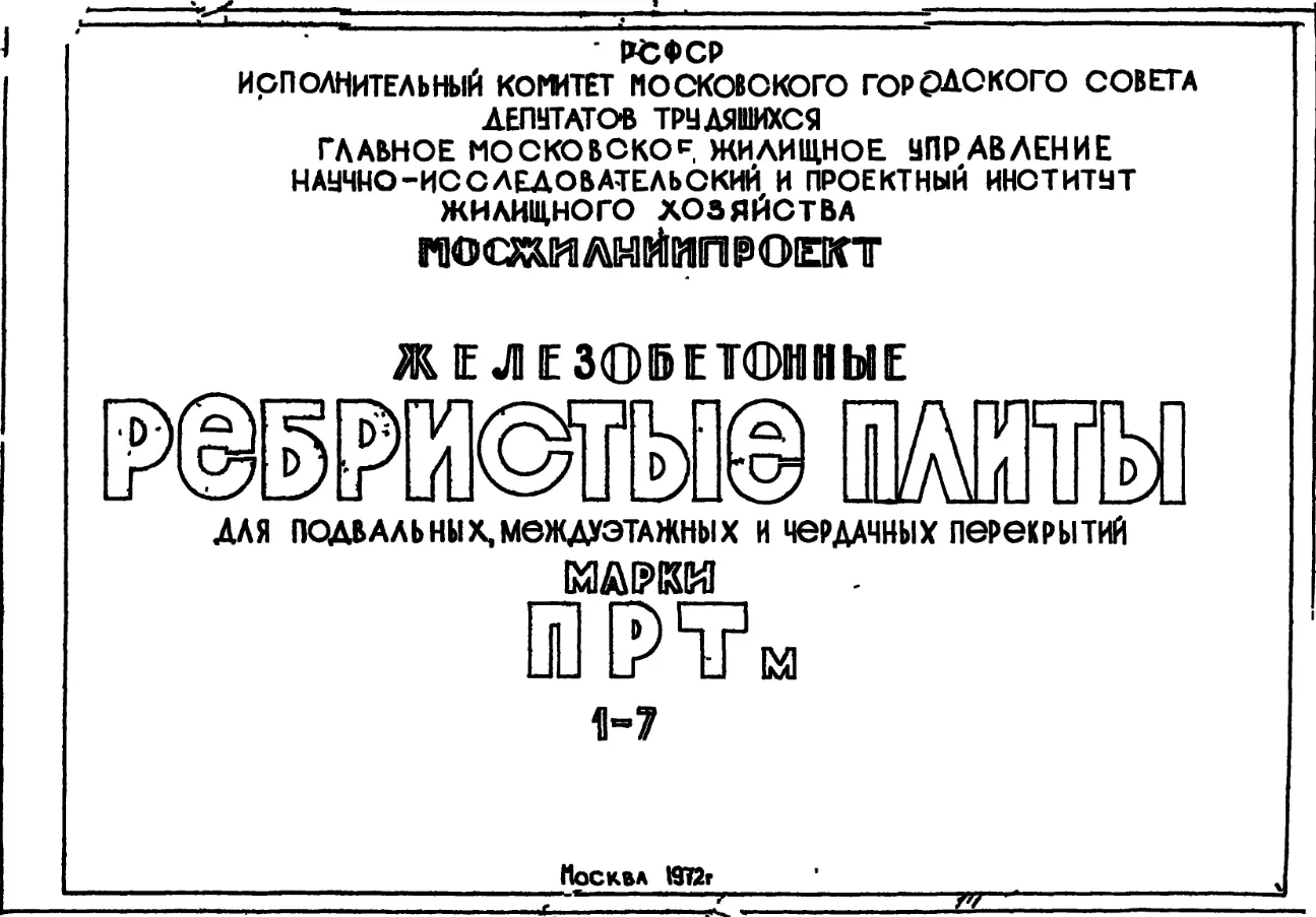 Шифр 05-33 Дополнение Железобетонные ребристые плиты для подвальных и междуэтажных и чердачных перекрытий марки ПРТм. Мосжилниипроект