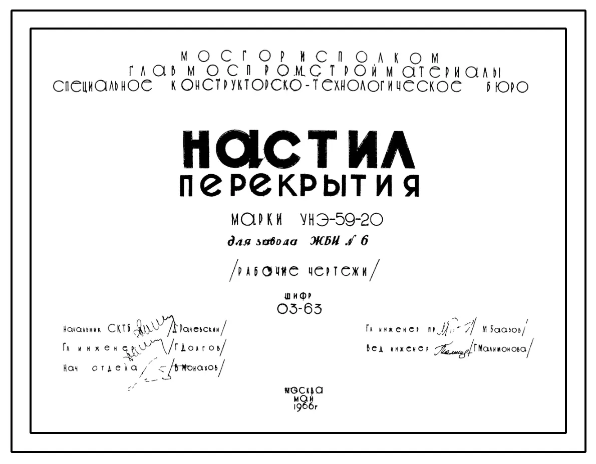 Шифр 03-63 Настил перекрытия Марки УНЭ-59-20. Рабочие чертежи. Разработка 1966 года