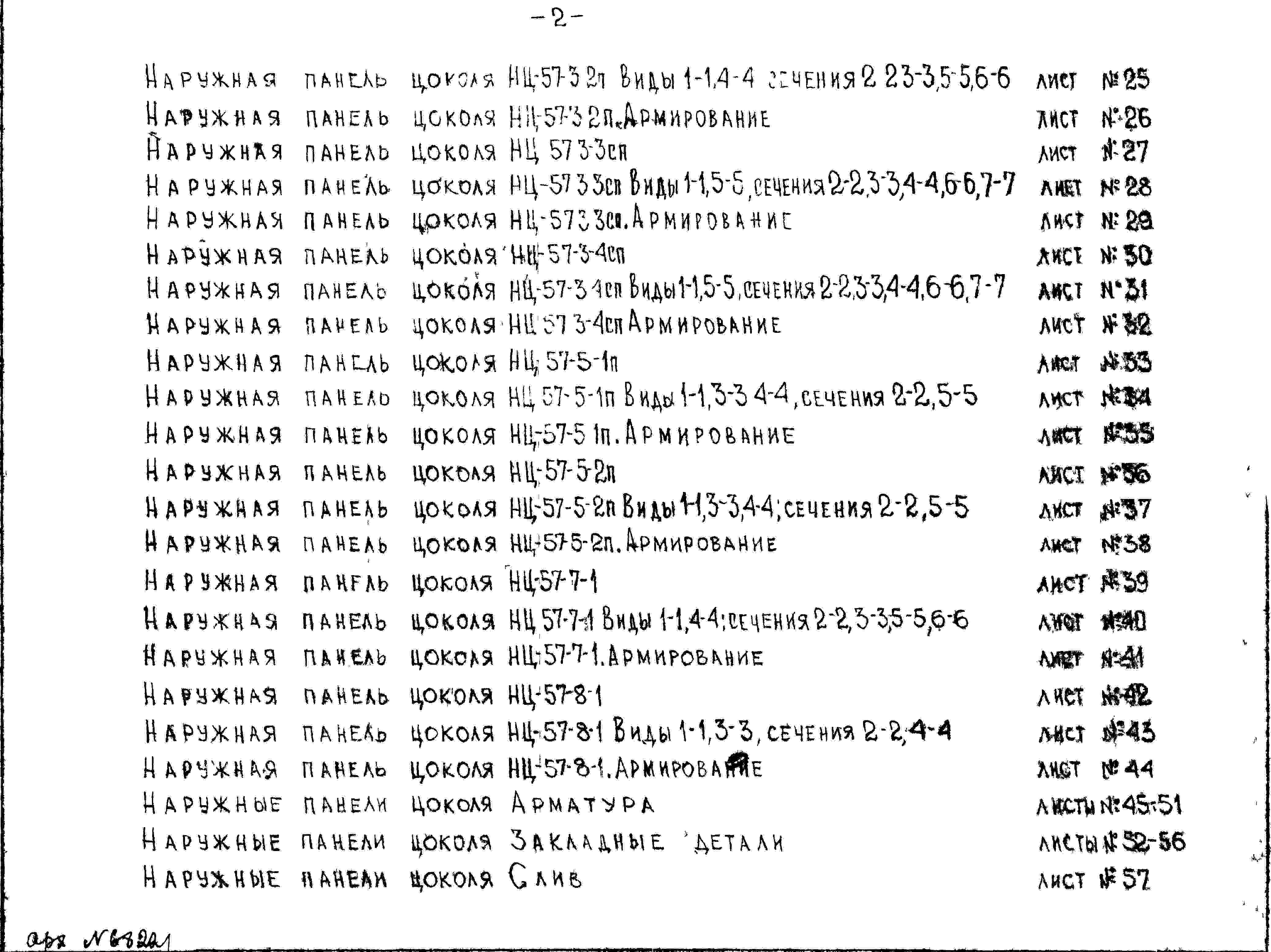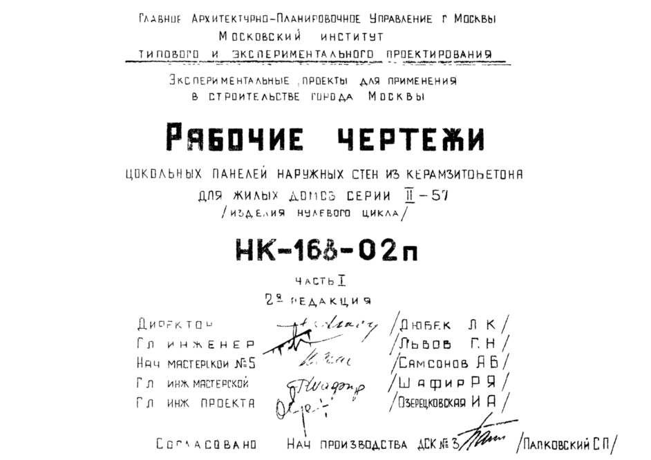 Шифр НК-168-02п Цокольные панели наружных стен из керамзитобетона для жилых домов серии II-57 (изделия нулевого цикла)