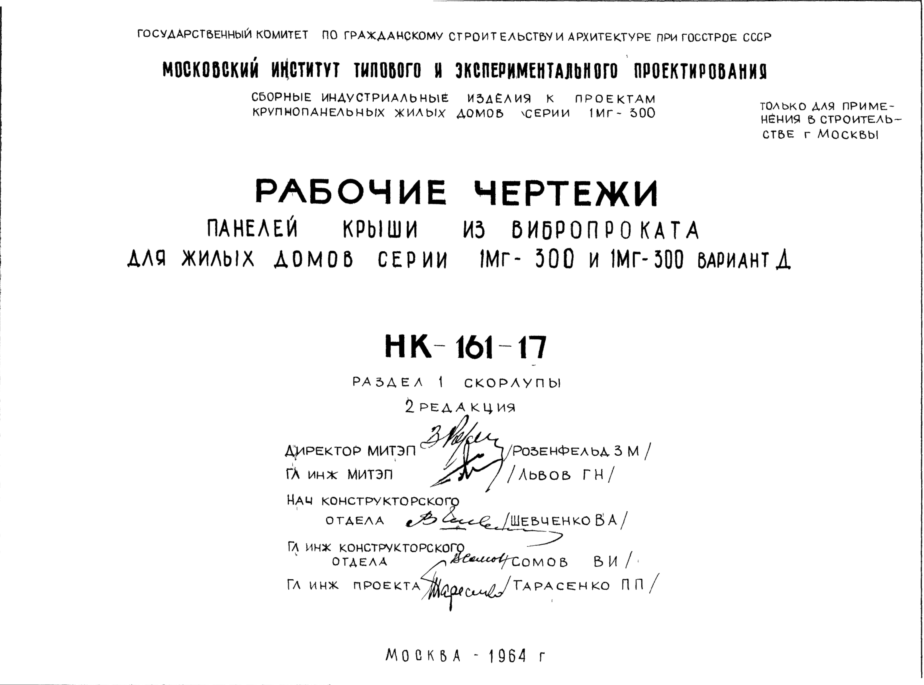 Шифр НК-161-17 Панели крыши из вибропроката для жилых домов серии 1МГ-300 и 1МГ-300 вариант Д (1964 г.)